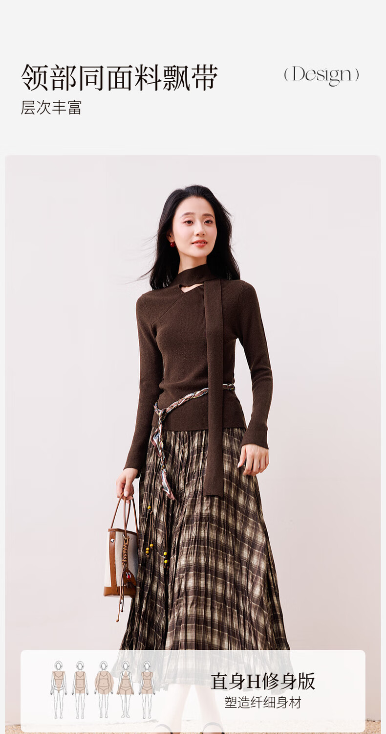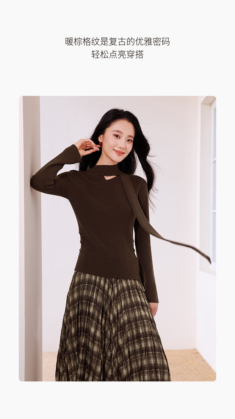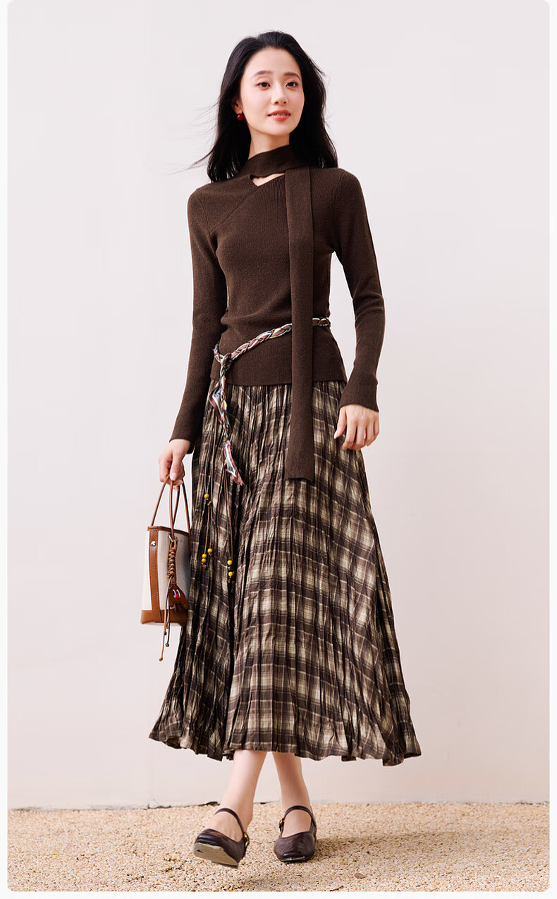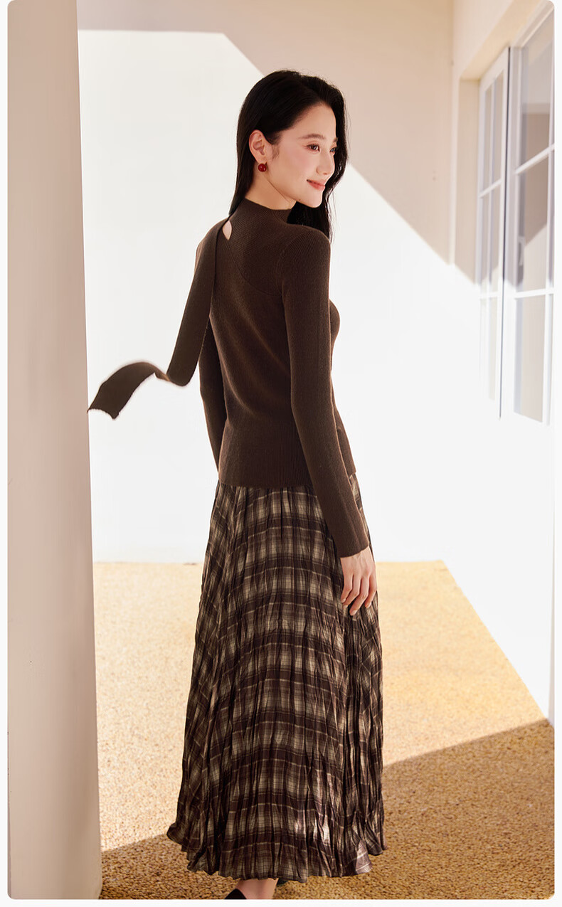 Xiangying Maillard pullover sweater for women with wool 2025 winter new style floating collar slim fit inner knitted top coffee color S 155/80A/85-95Jin Jin equals 0.5 kg