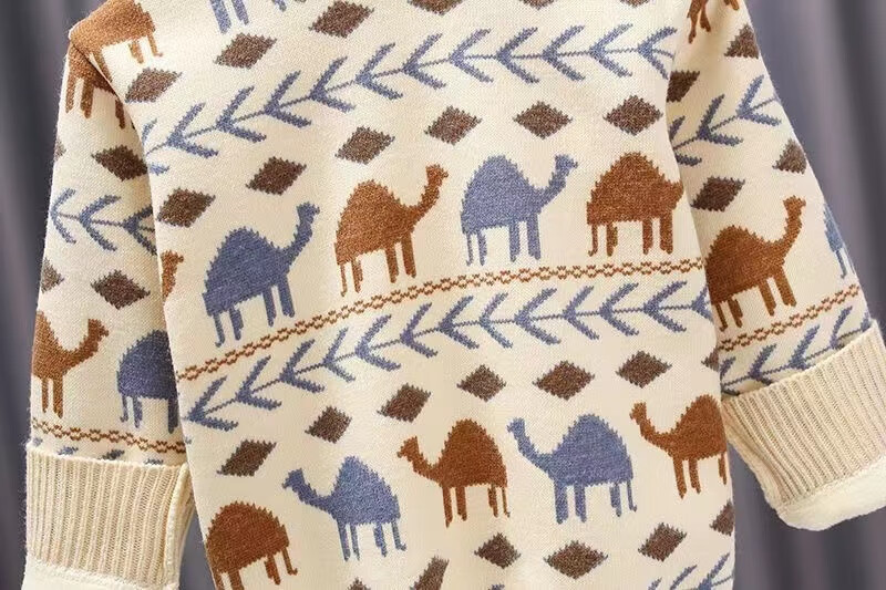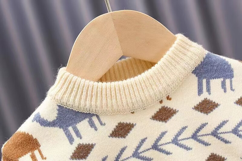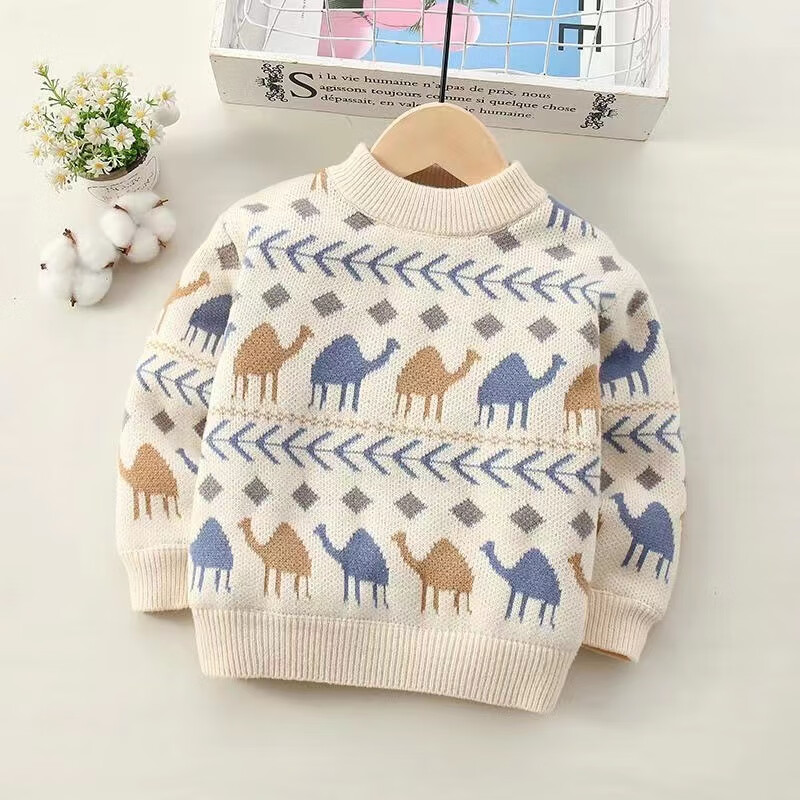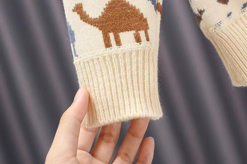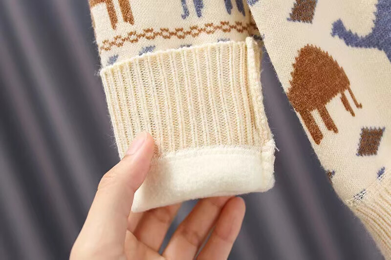 Boys' knitted sweater pullover with velvet all-in-one autumn and winter 2025 new baby and children's knitted sweater beige F139 camel pullover 90