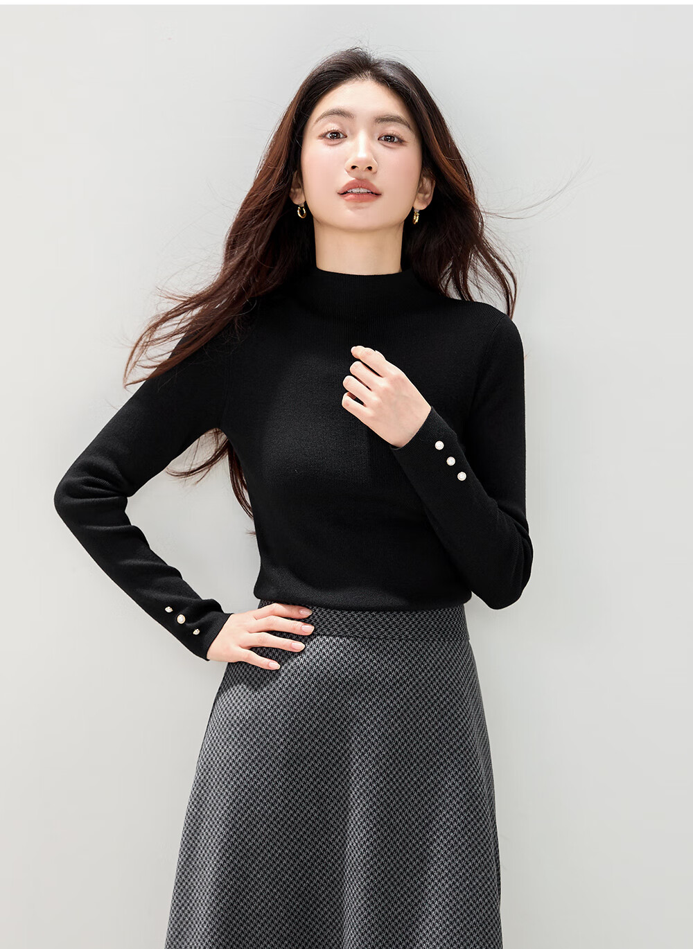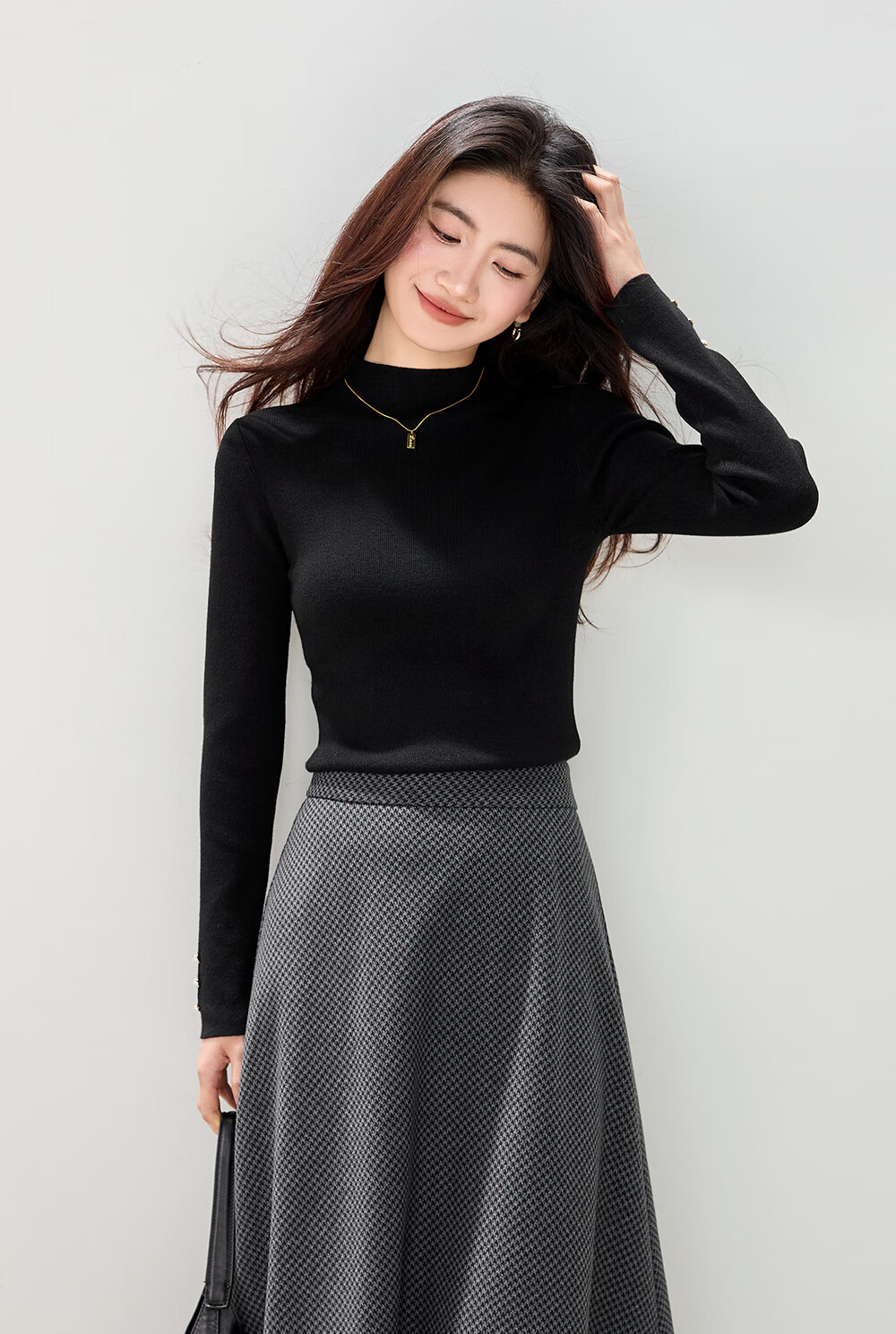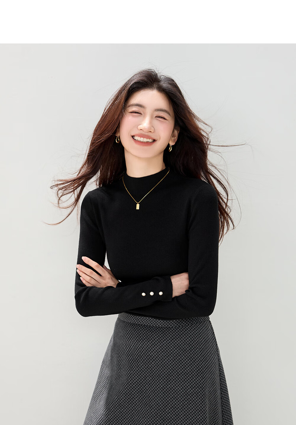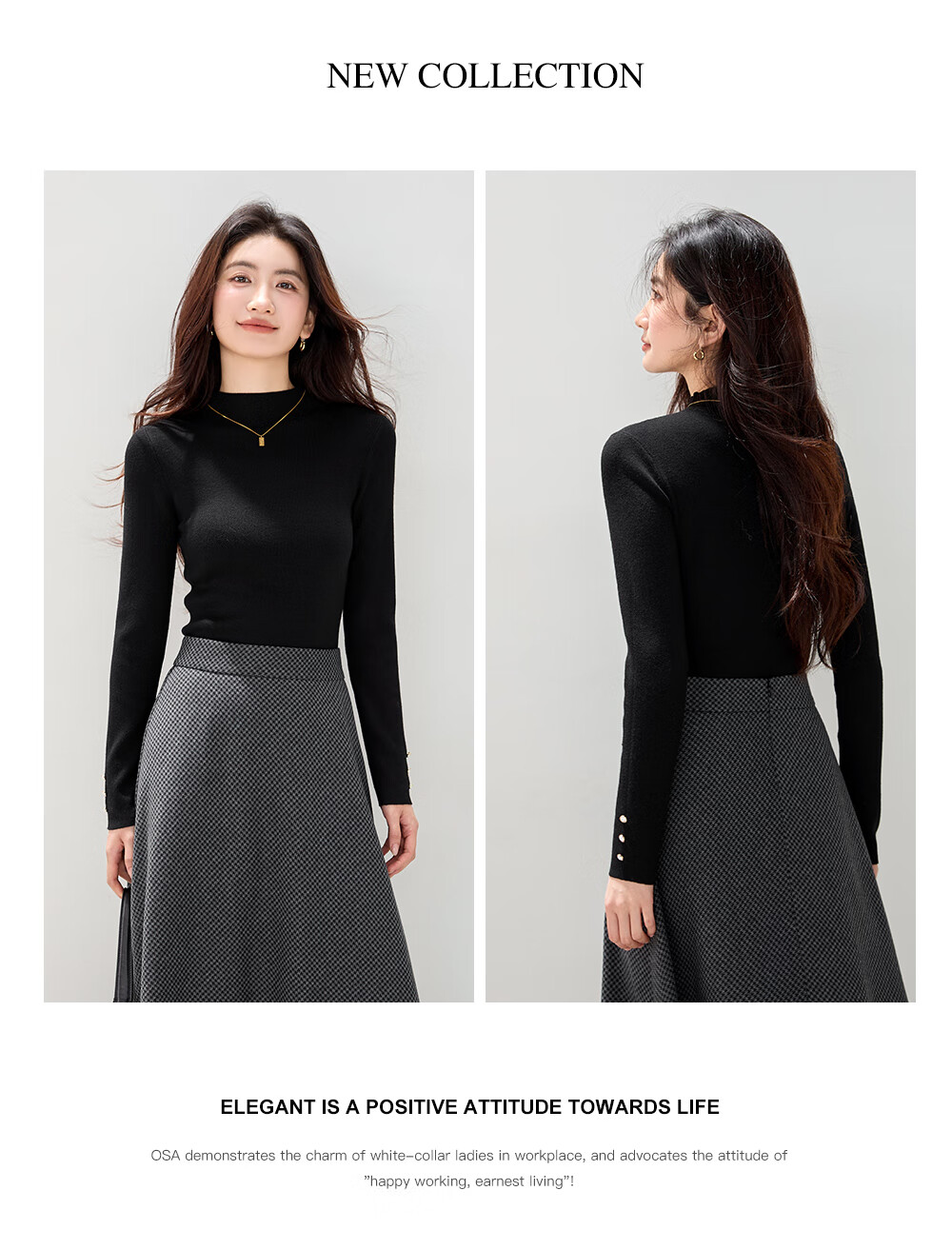 Osha black half turtleneck bottoming sweater for women 2025 winter new textured inner sweater top black M