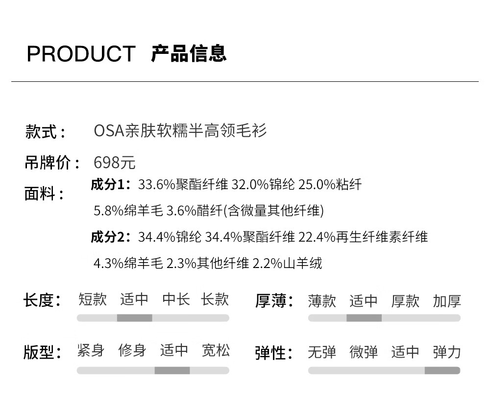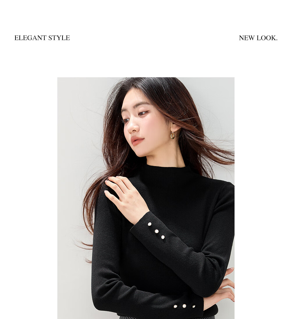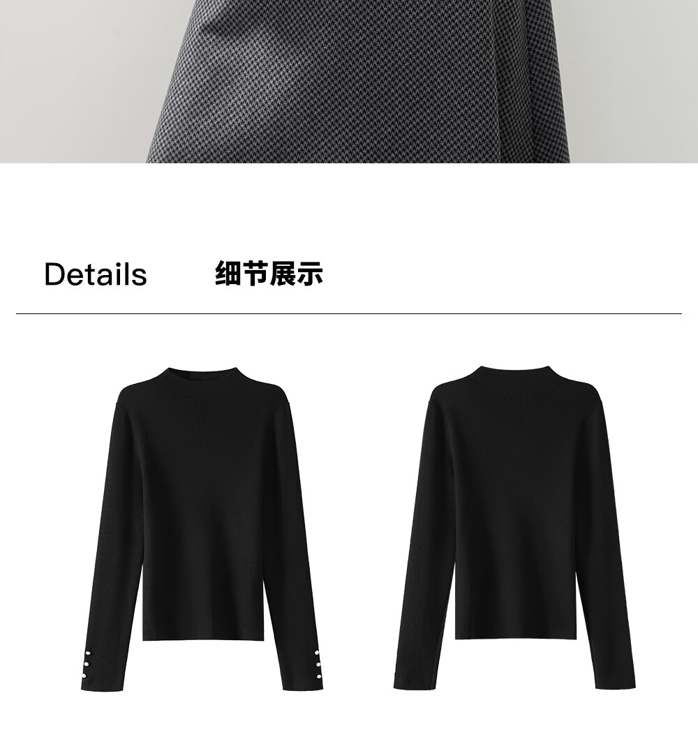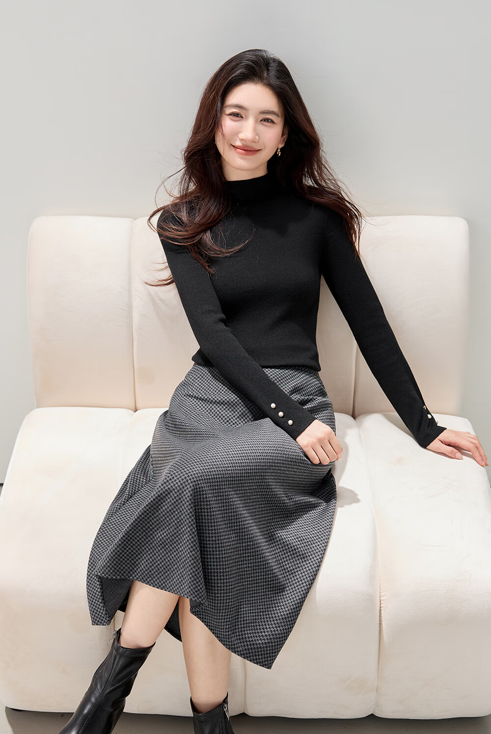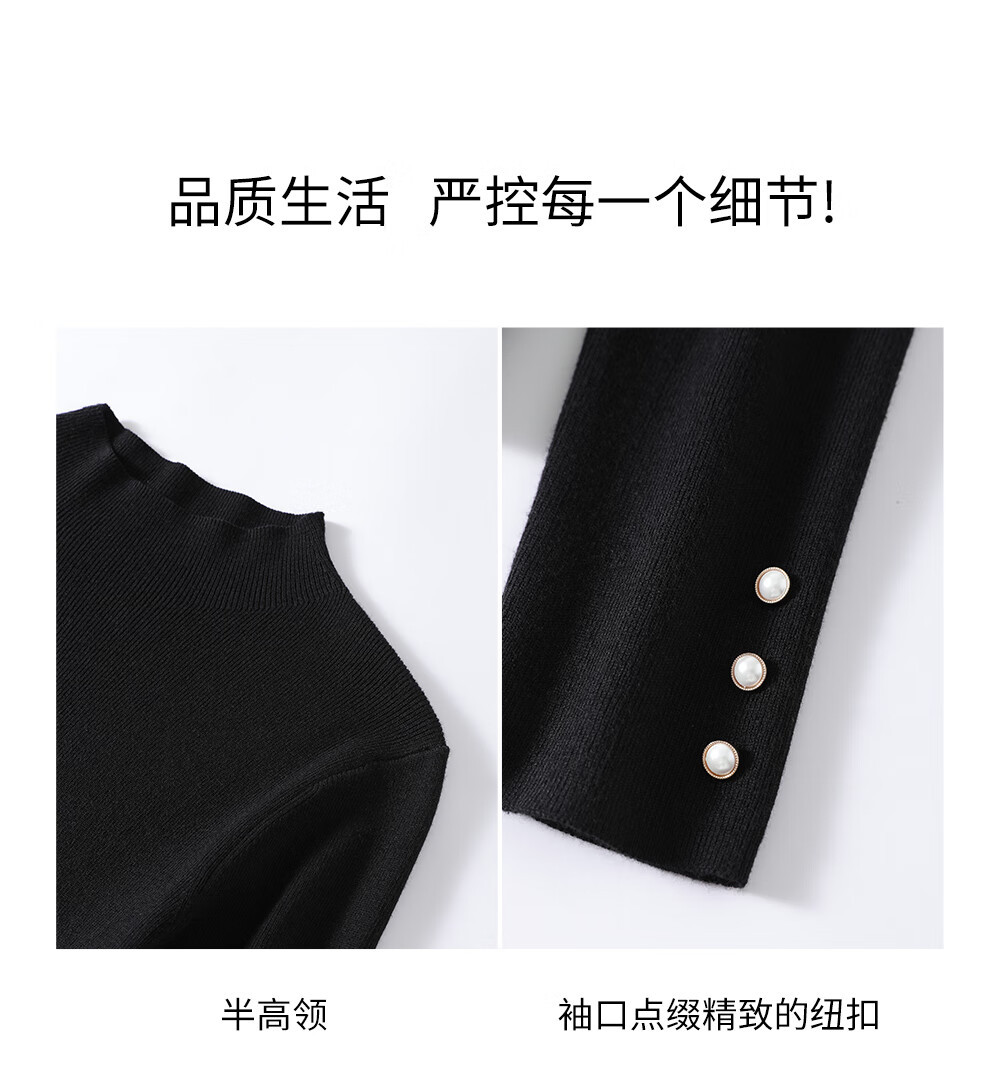 Osha black half turtleneck bottoming sweater for women 2025 winter new textured inner sweater top black M