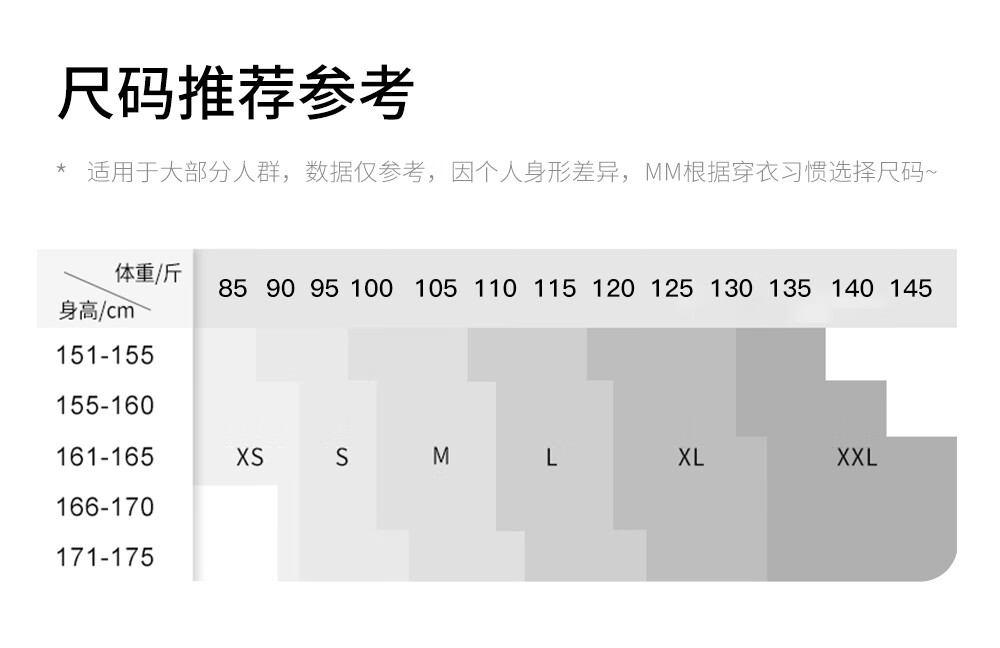 China (cm) 160-165/84-86 165-170 / 88-90 167-172 / 92-96 168-173 / 98-102 170-176 / 106-110