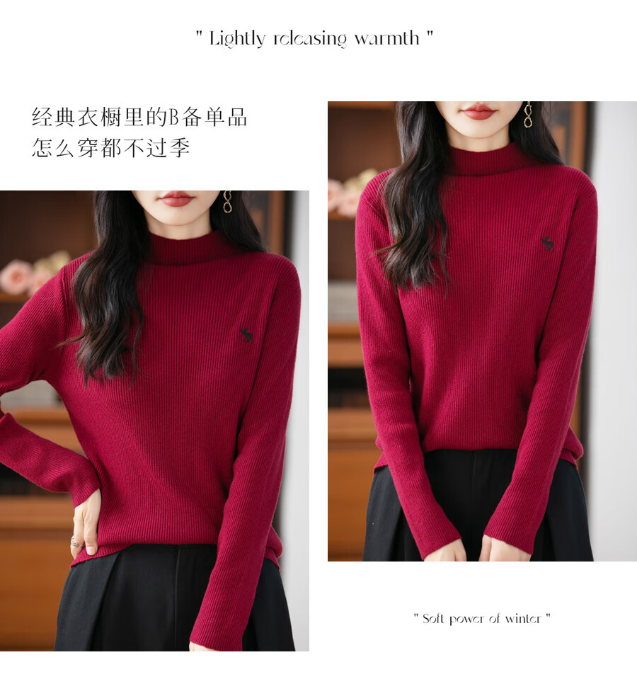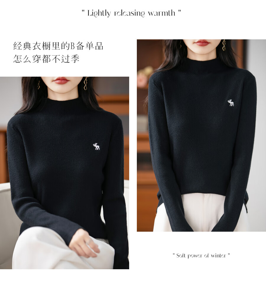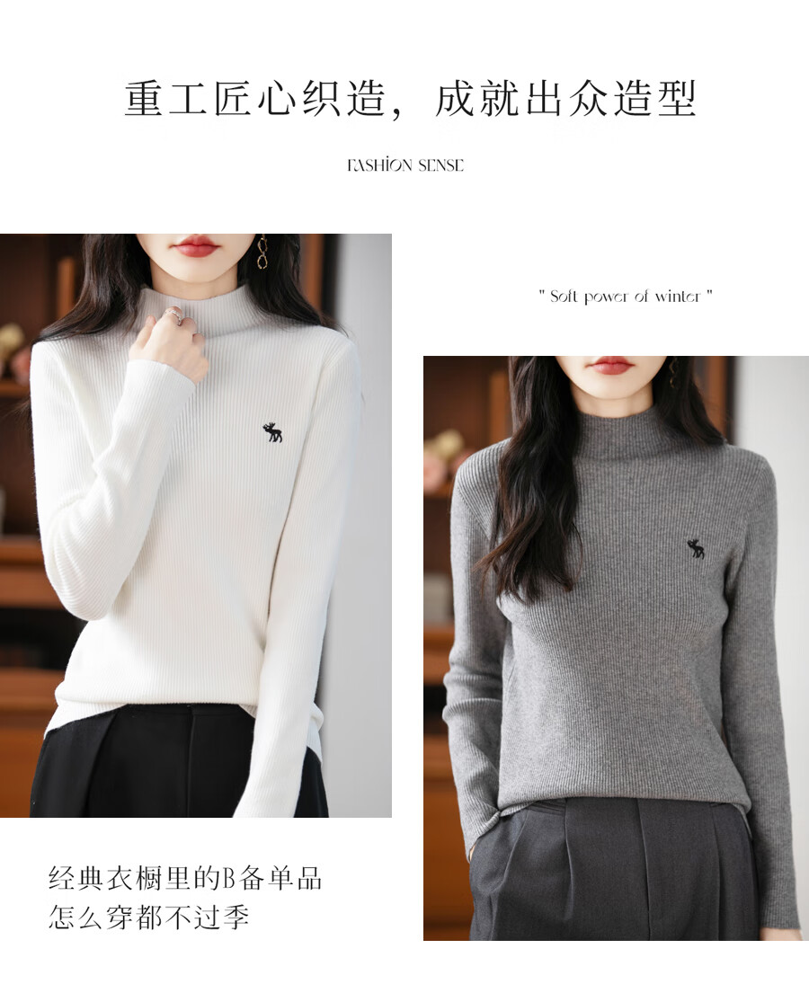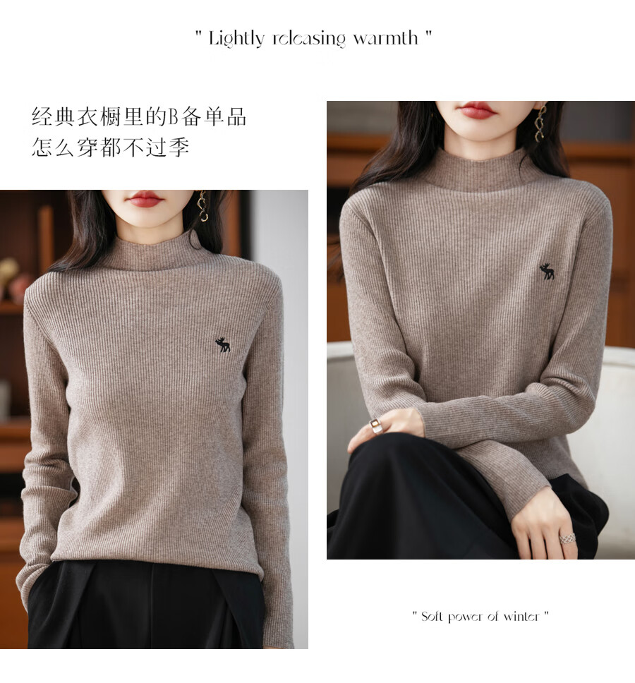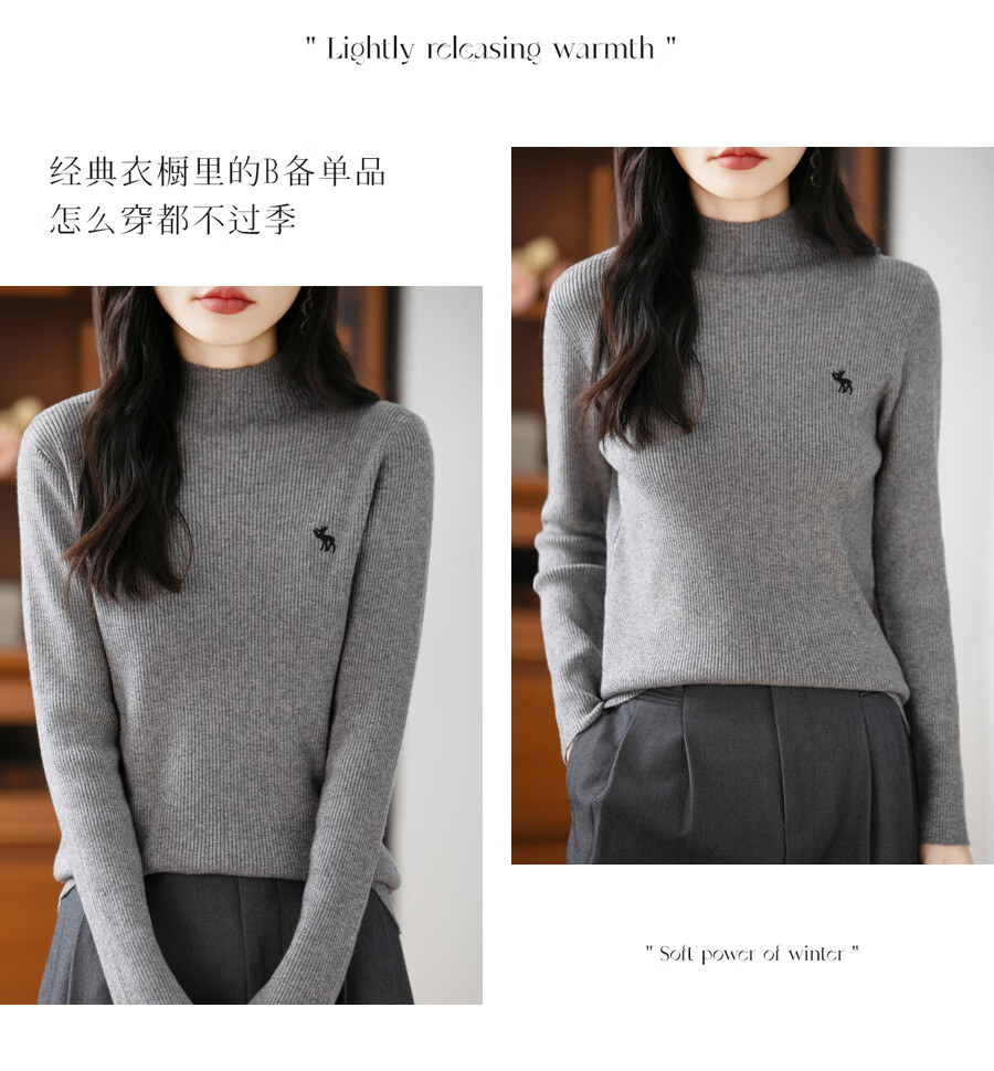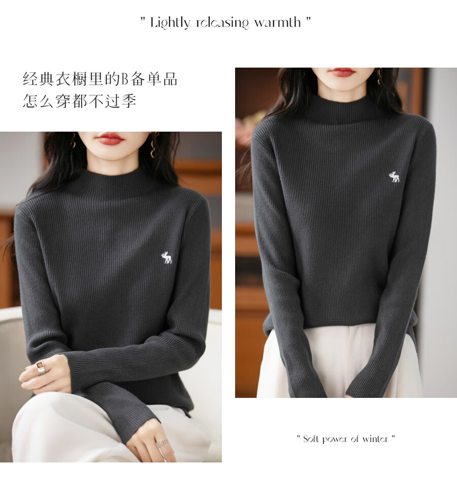La Chapelle Heavy Embroidery Worsted Fine Wool Sweater Women's Half Turtleneck Sweater 2025 Autumn and Winter New Slim Fit Bottoming Shirt Graphite Gray L Recommended weight 110-125Jin Jin equals 0.5 kg