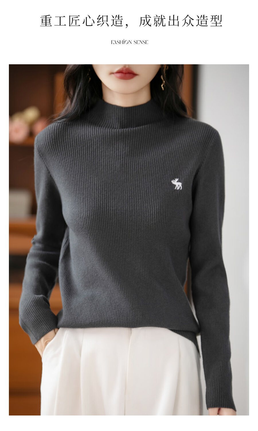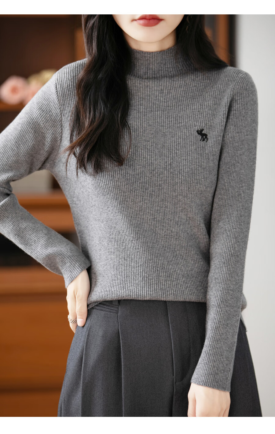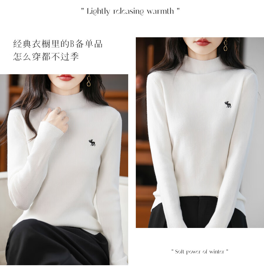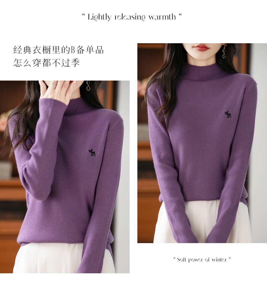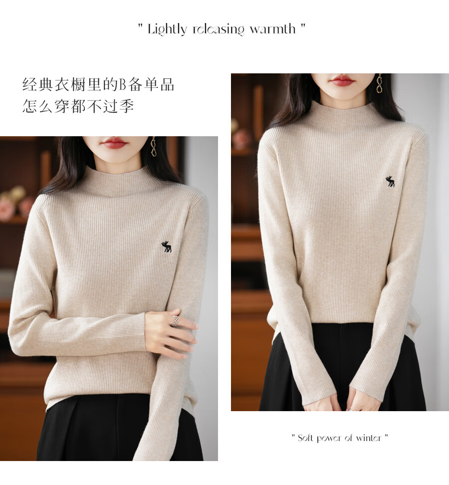 La Chapelle Heavy Embroidery Worsted Fine Wool Sweater Women's Half Turtleneck Sweater 2025 Autumn and Winter New Slim Fit Bottoming Shirt Graphite Gray L Recommended weight 110-125Jin Jin equals 0.5 kg