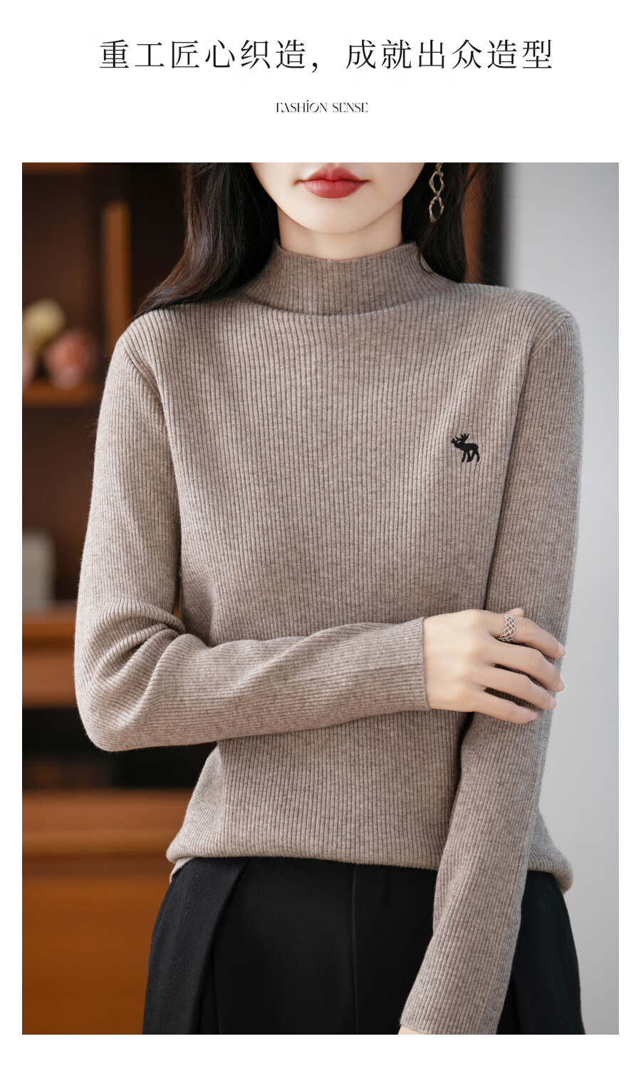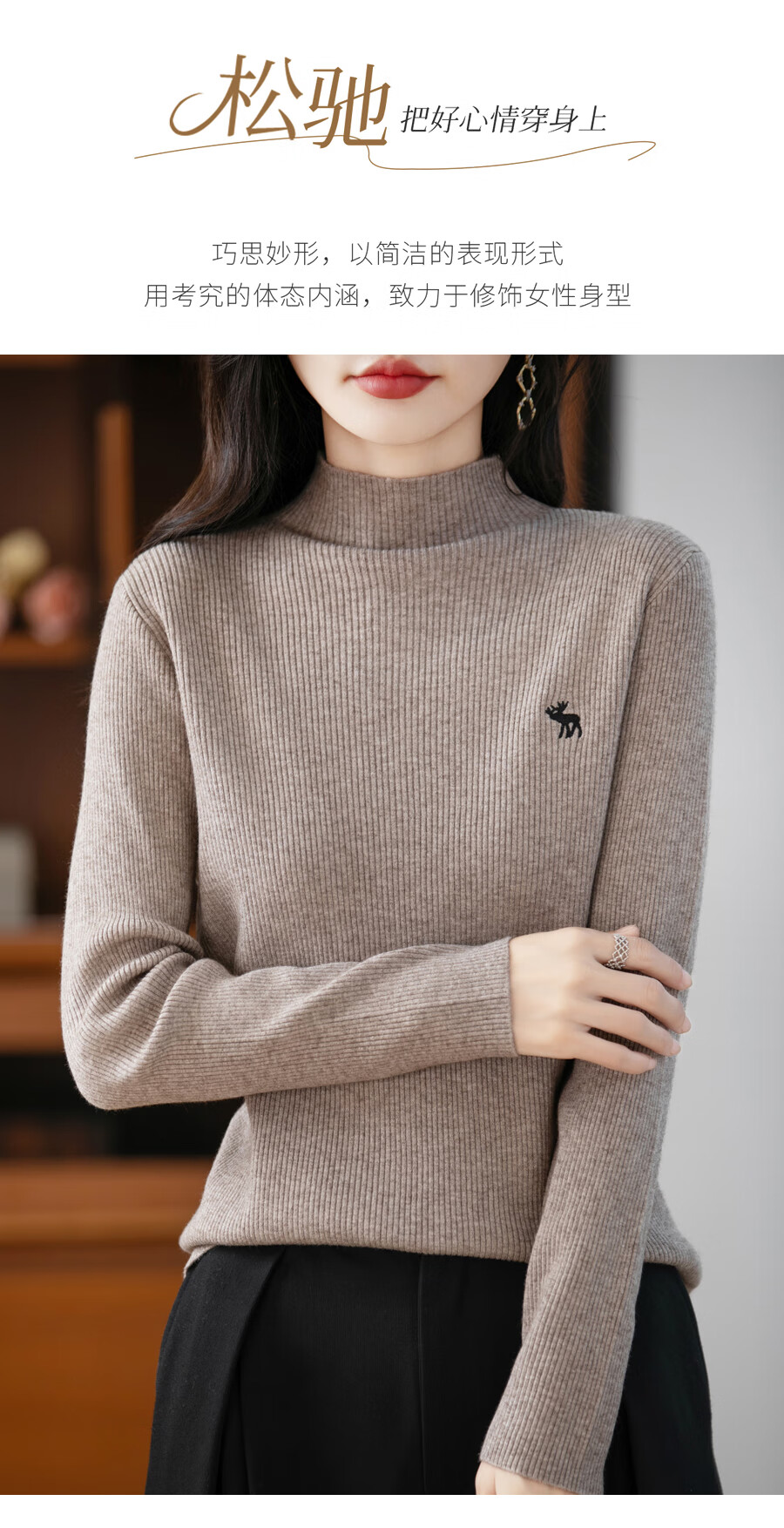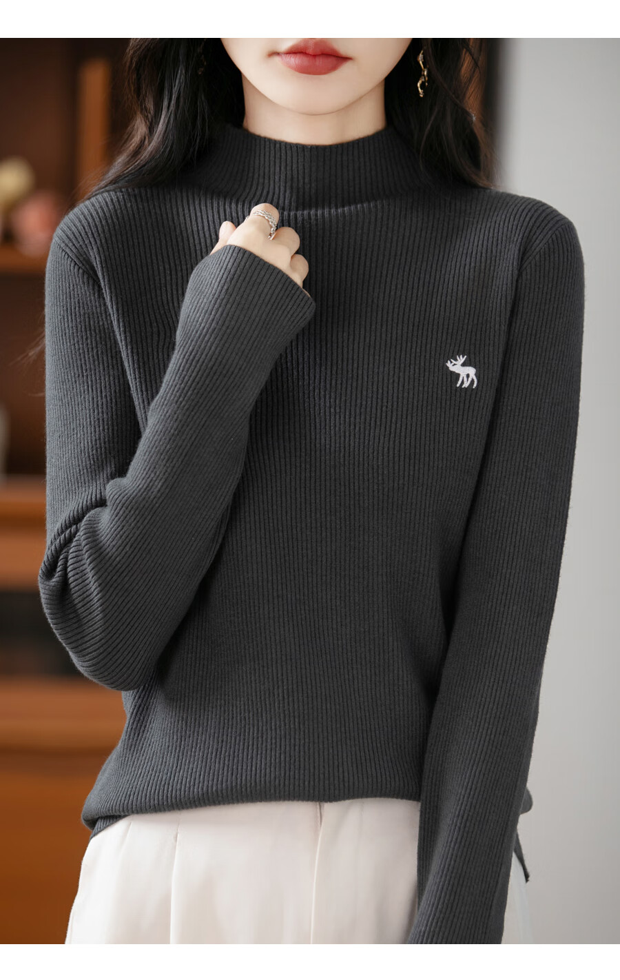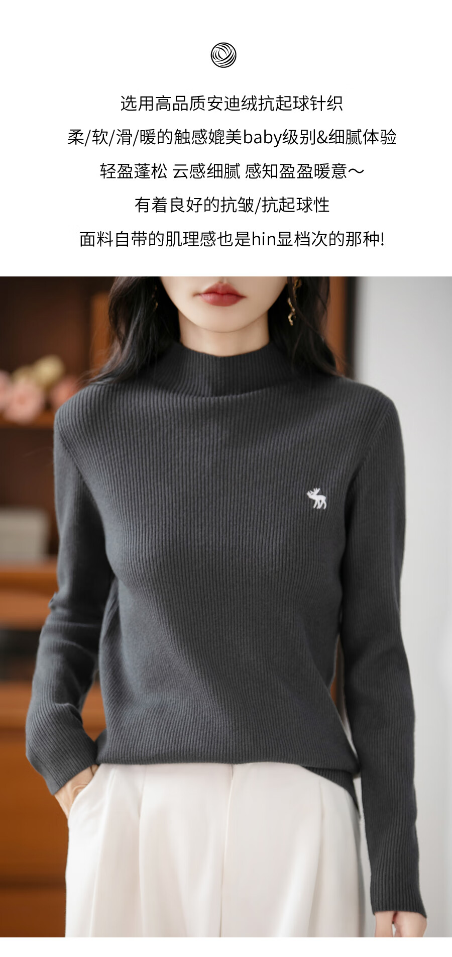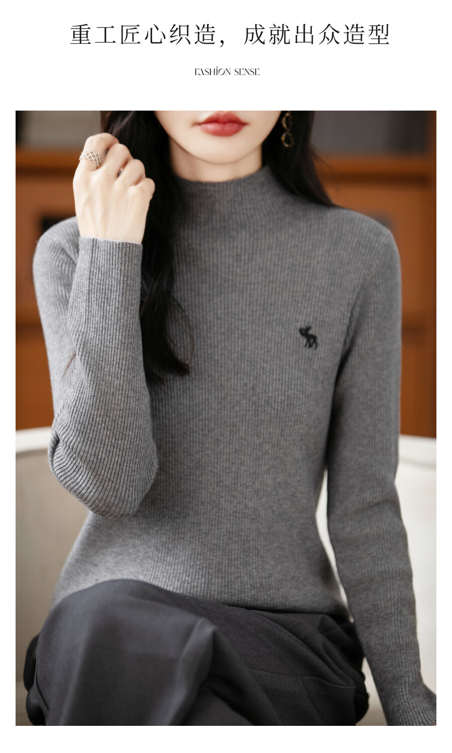 La Chapelle Heavy Embroidery Worsted Fine Wool Sweater Women's Half Turtleneck Sweater 2025 Autumn and Winter New Slim Fit Bottoming Shirt Graphite Gray L Recommended weight 110-125Jin Jin equals 0.5 kg