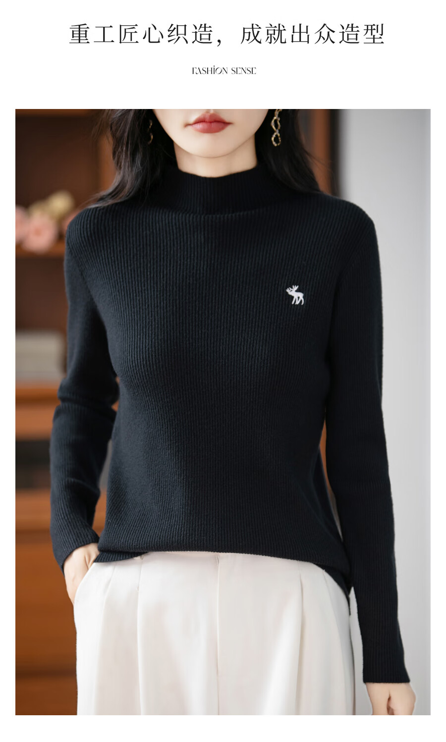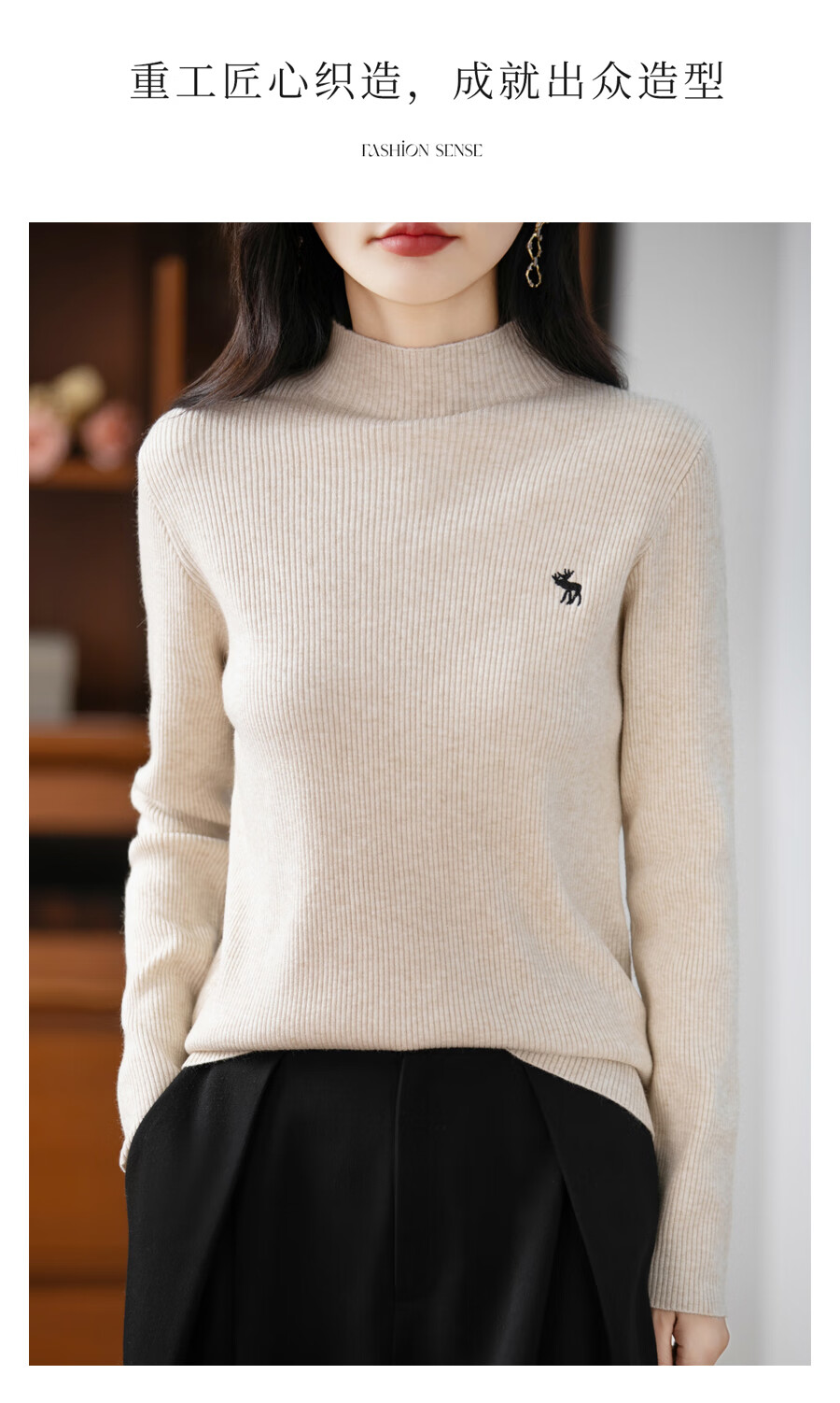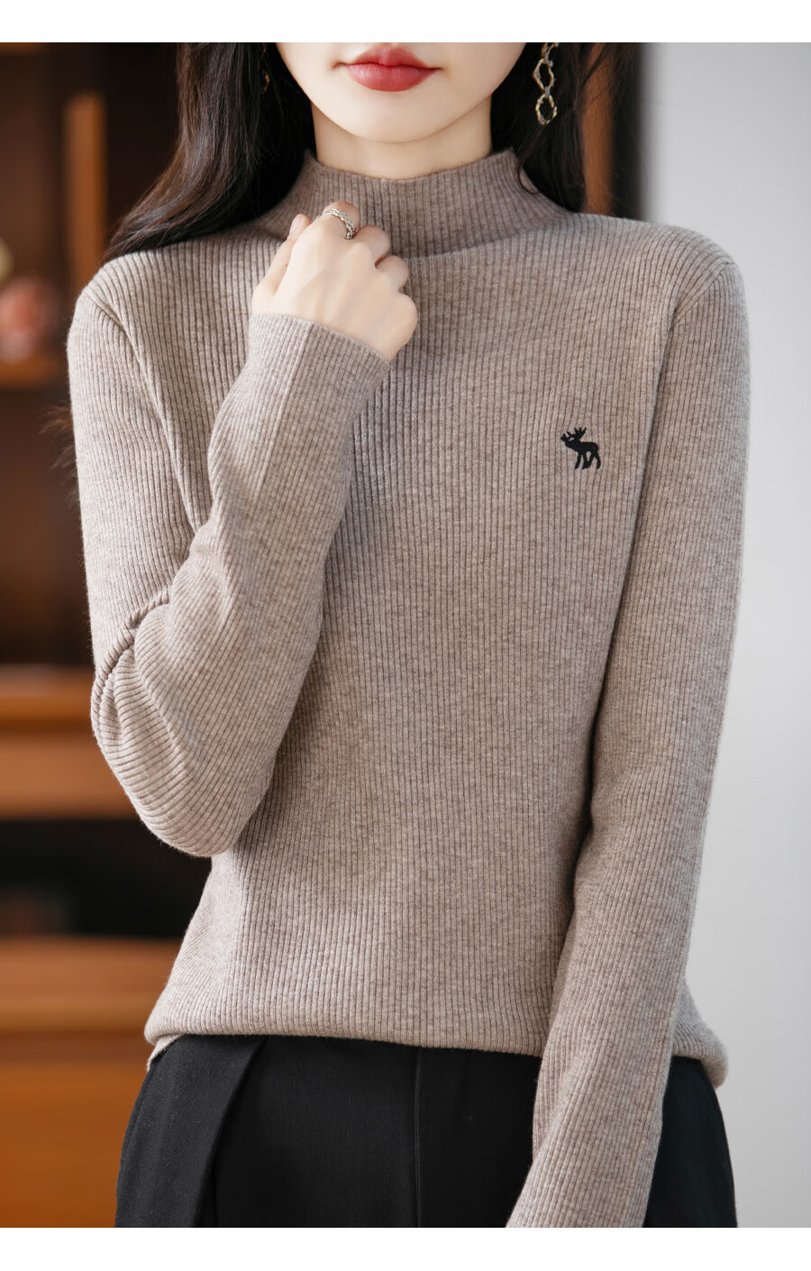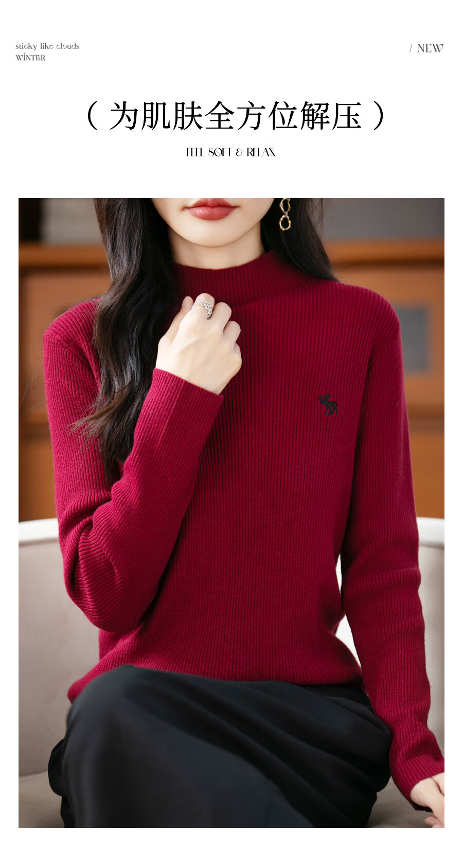La Chapelle Heavy Embroidery Worsted Fine Wool Sweater Women's Half Turtleneck Sweater 2025 Autumn and Winter New Slim Fit Bottoming Shirt Graphite Gray L Recommended weight 110-125Jin Jin equals 0.5 kg
