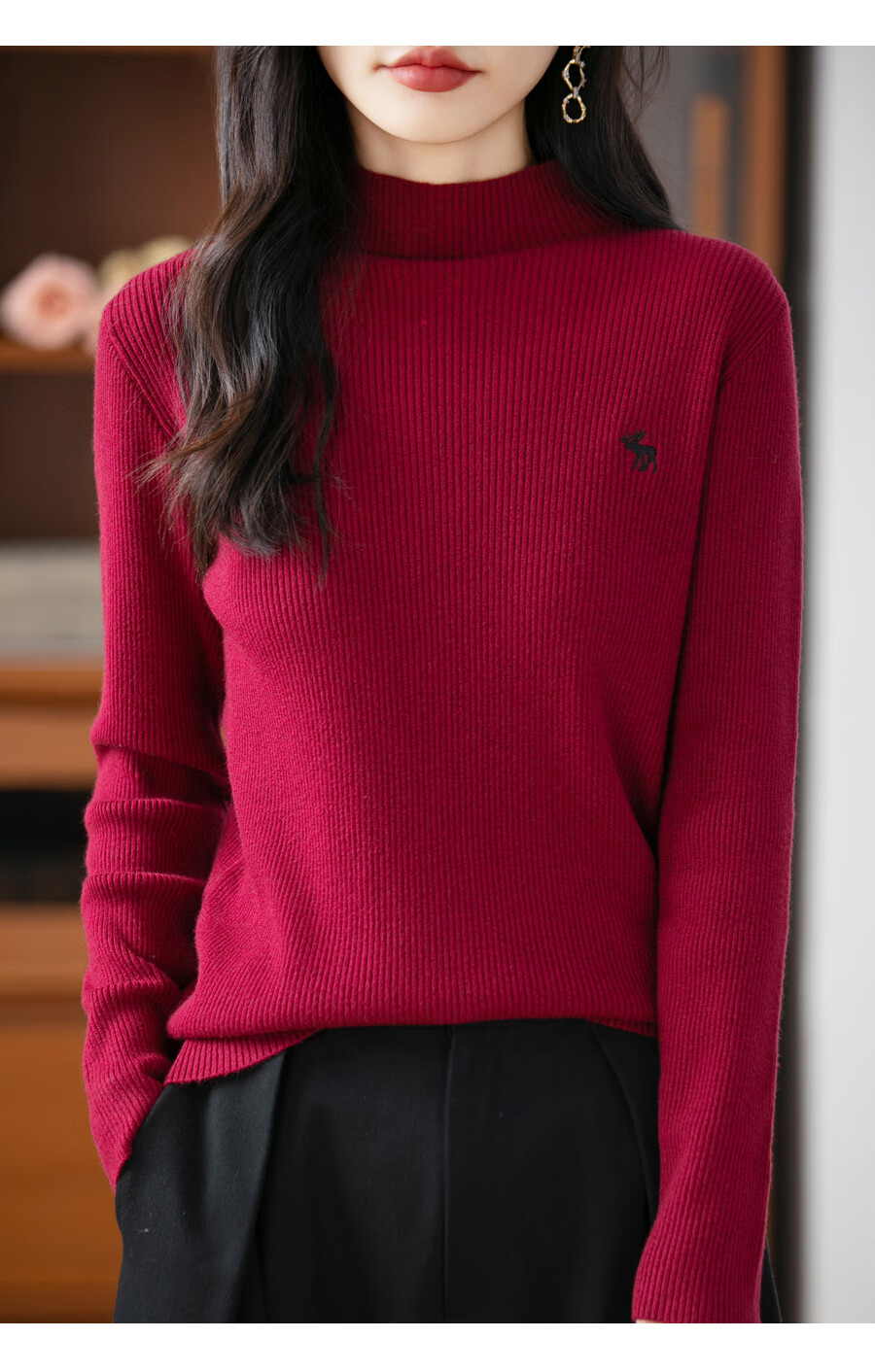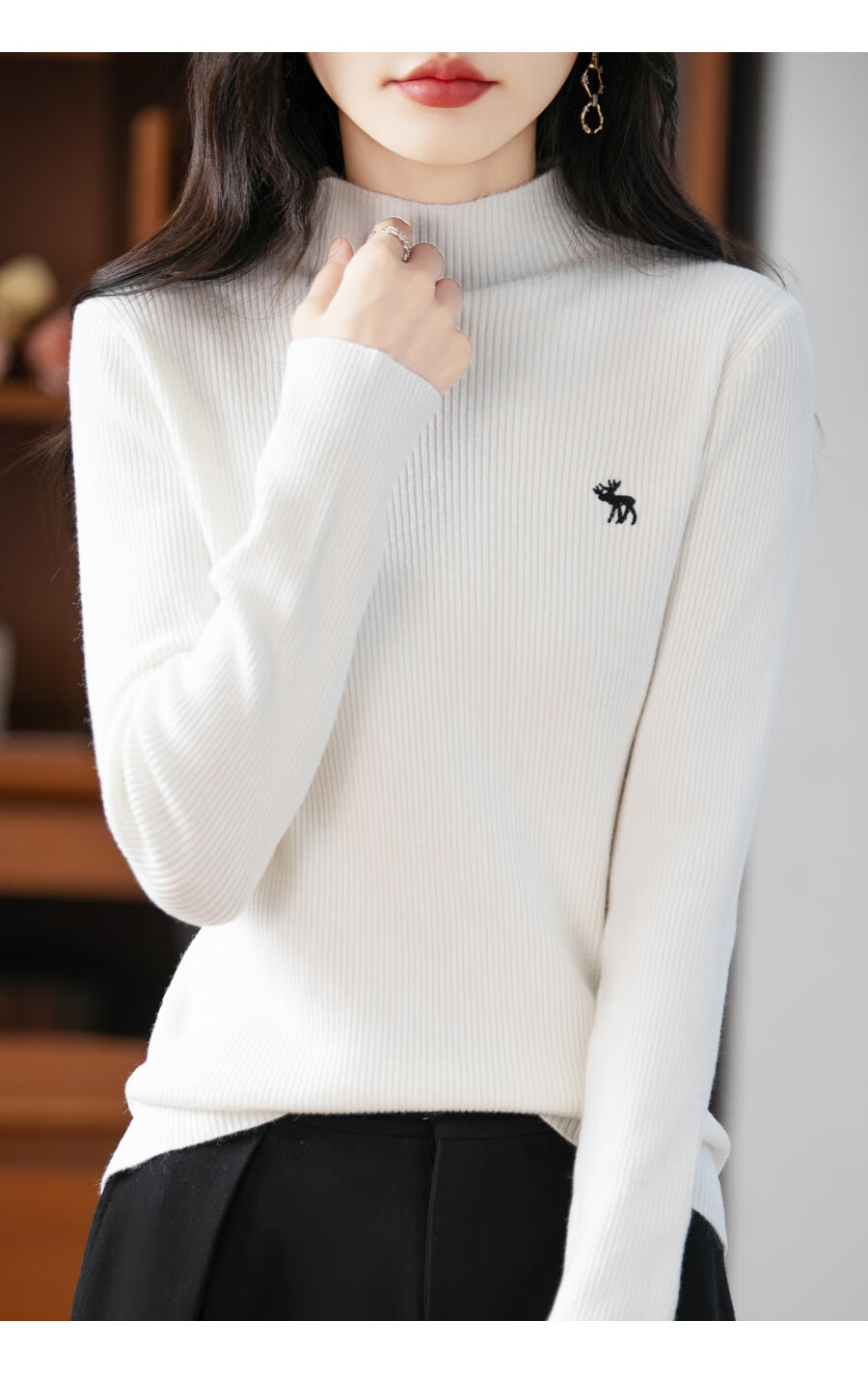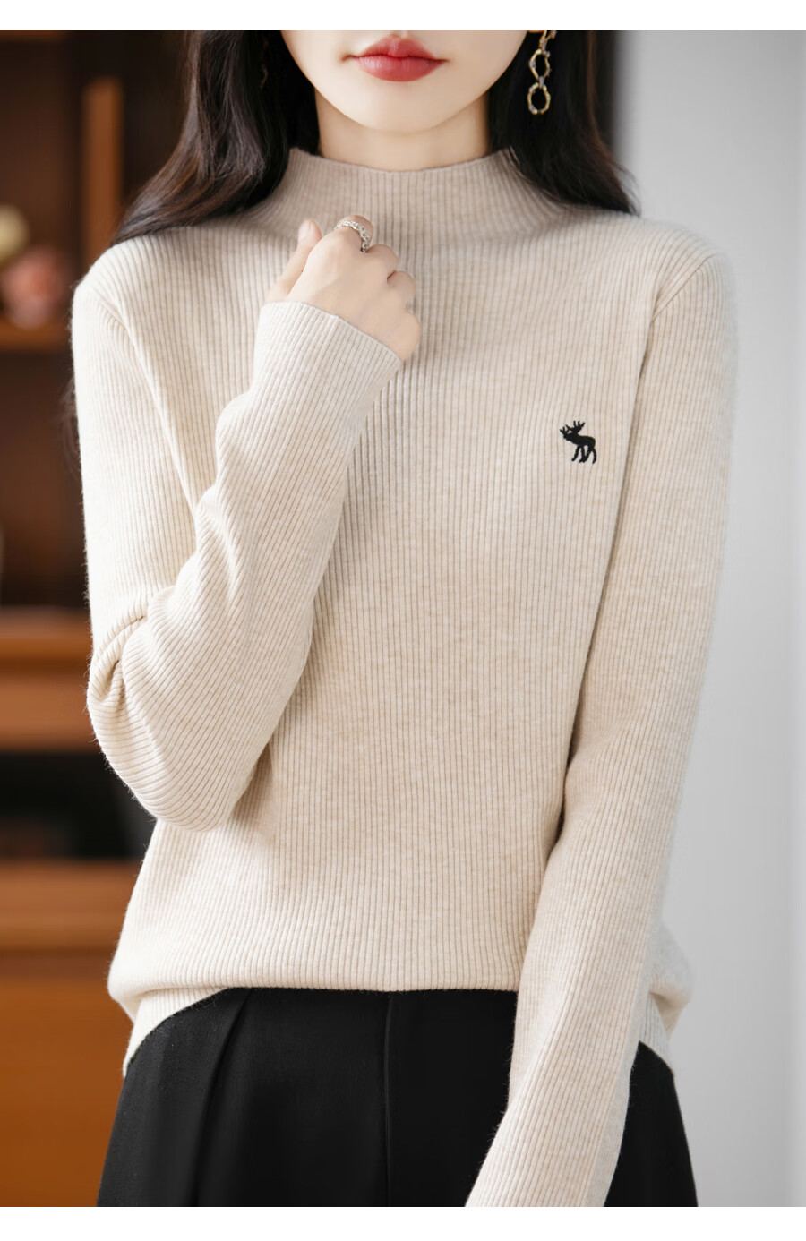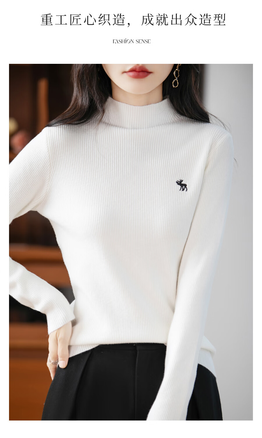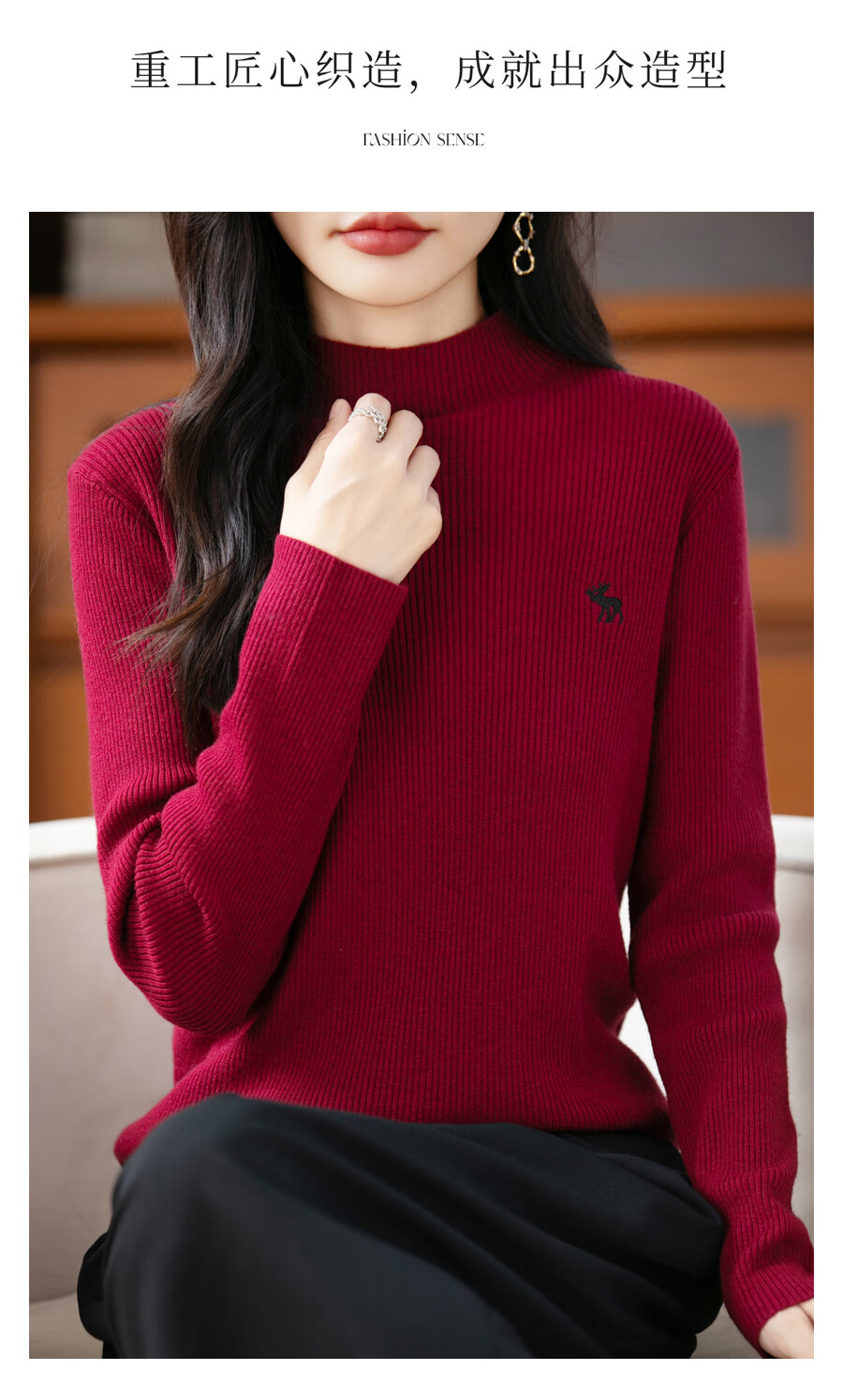 La Chapelle Heavy Embroidery Worsted Fine Wool Sweater Women's Half Turtleneck Sweater 2025 Autumn and Winter New Slim Fit Bottoming Shirt Graphite Gray L Recommended weight 110-125Jin Jin equals 0.5 kg