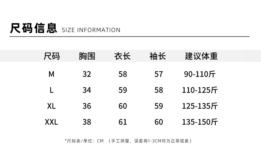 China (cm) 160-165/84-86 165-170 / 88-90 167-172 / 92-96 168-173 / 98-102 170-176 / 106-110