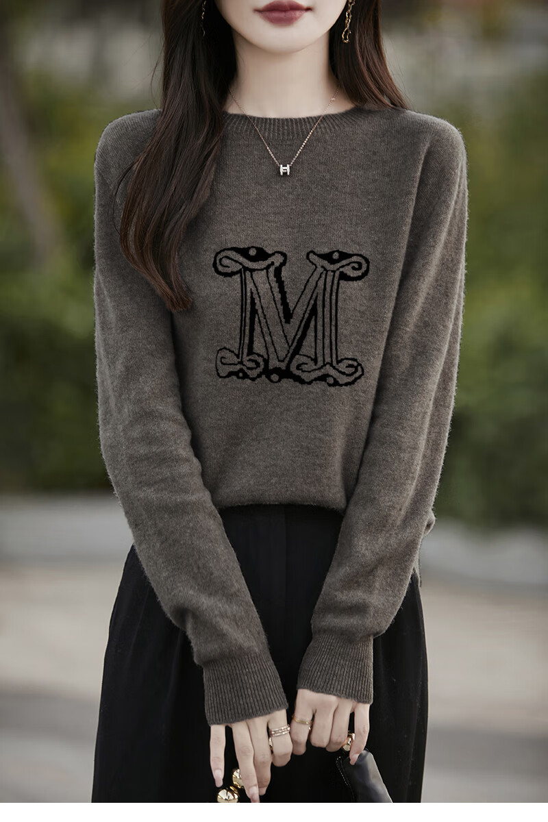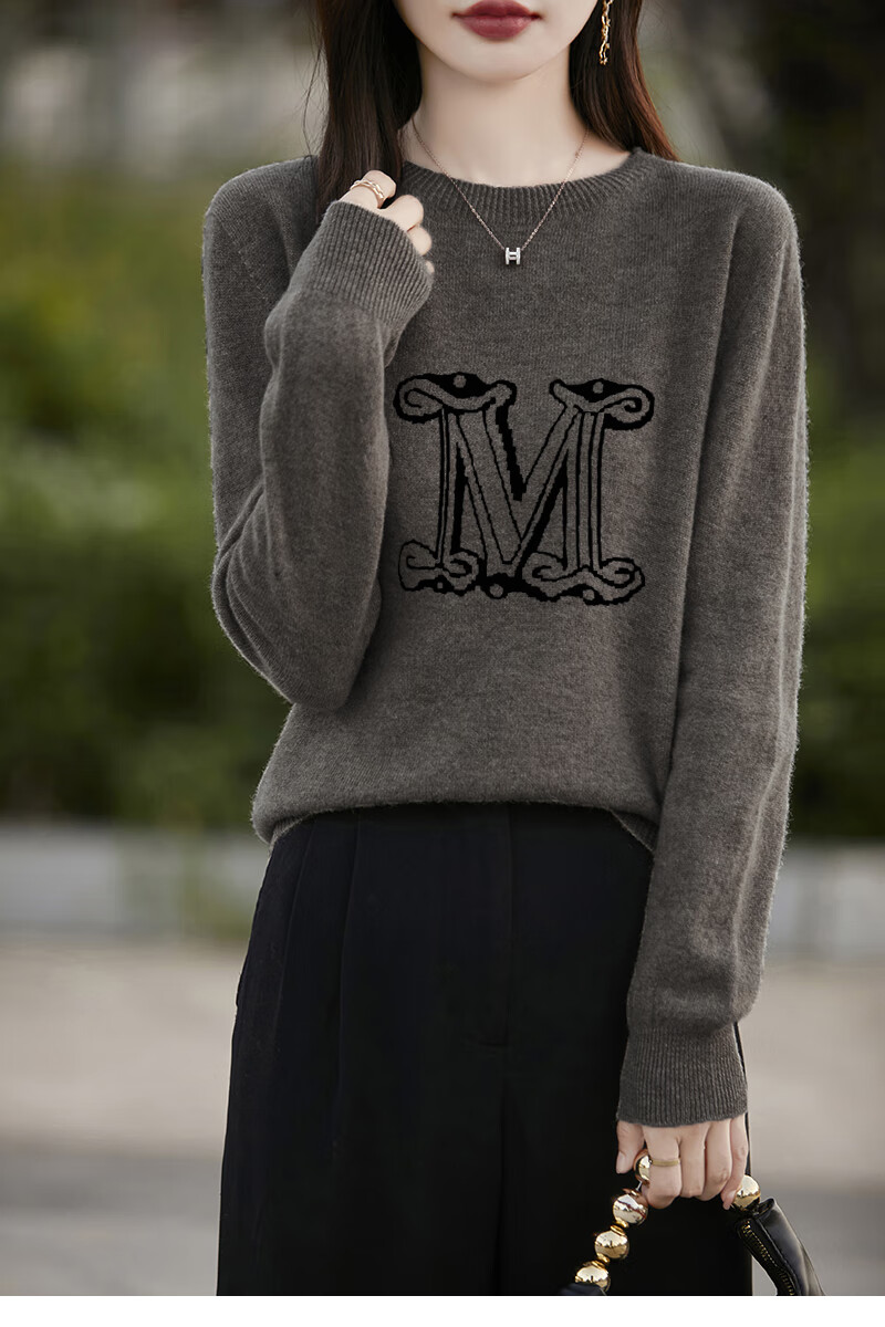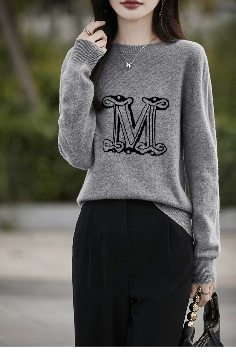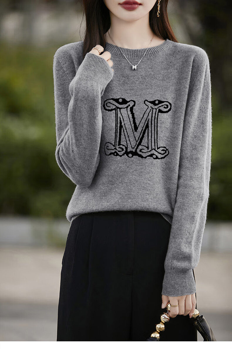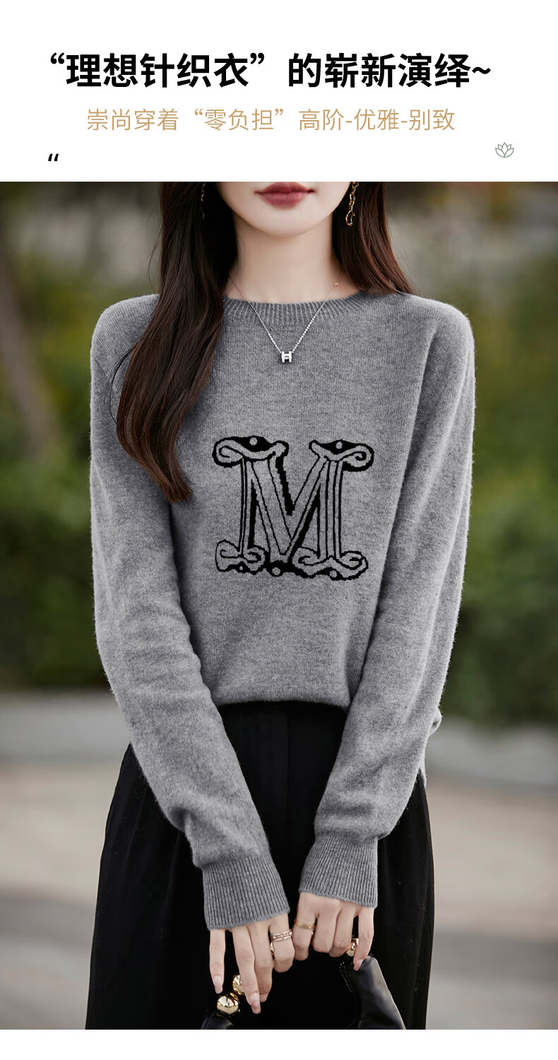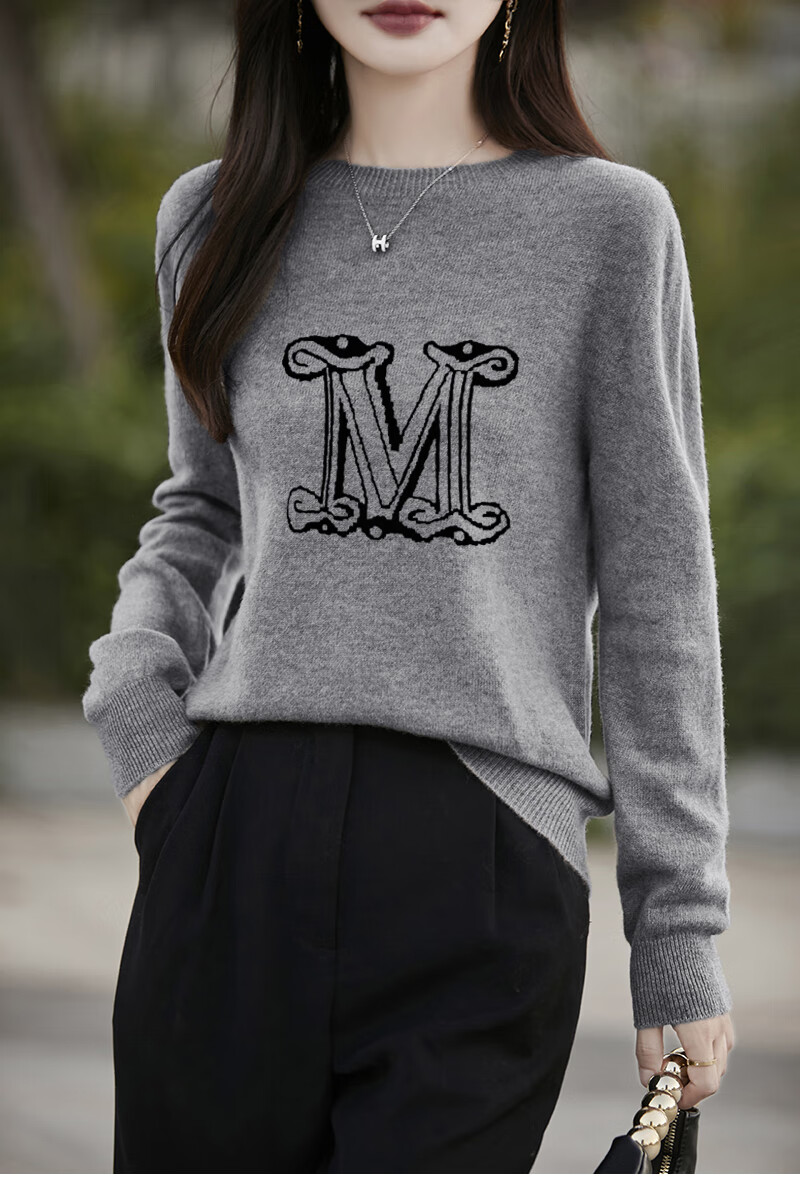 La Chapelle French Jacquard Bottoming Sweater Women's Round Neck Pullover Sweater 2025 Autumn and Winter New Style Loose Slim Top Gray M Recommended Weight 95-110 Jin Jin equals 0.5 kg
