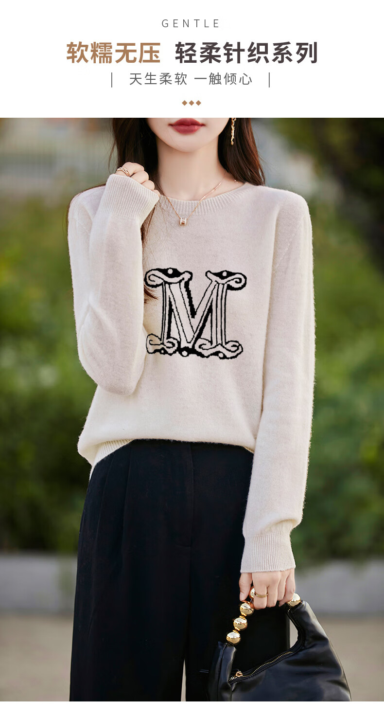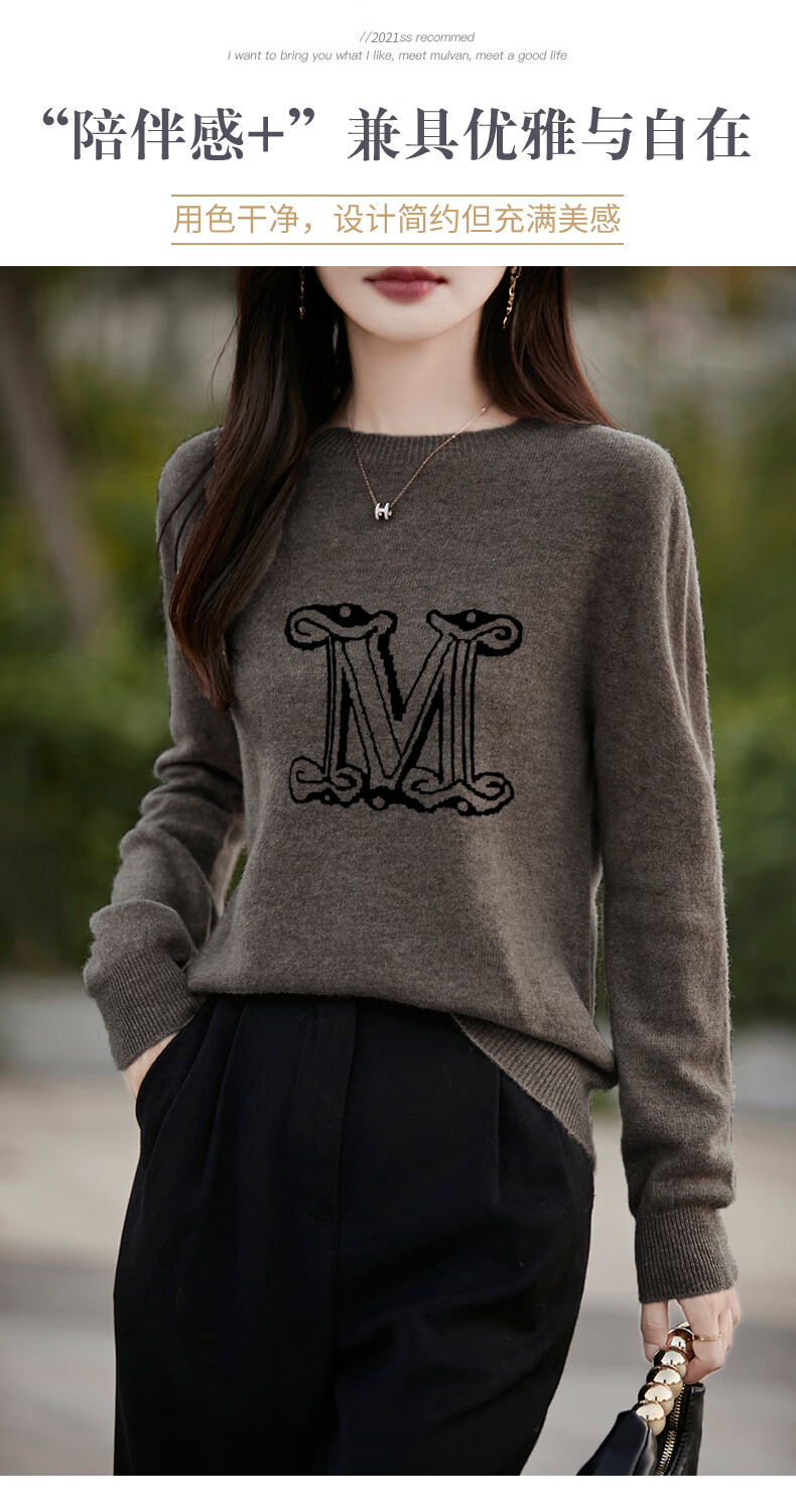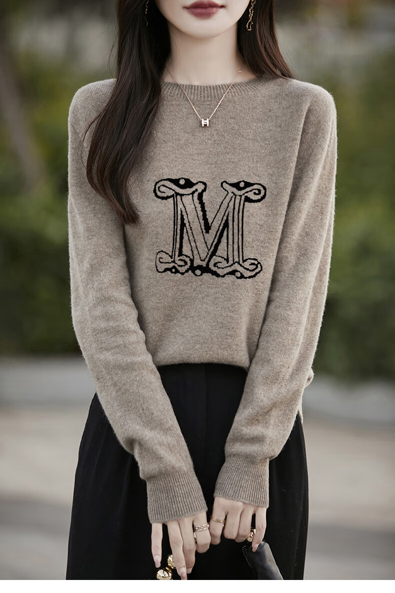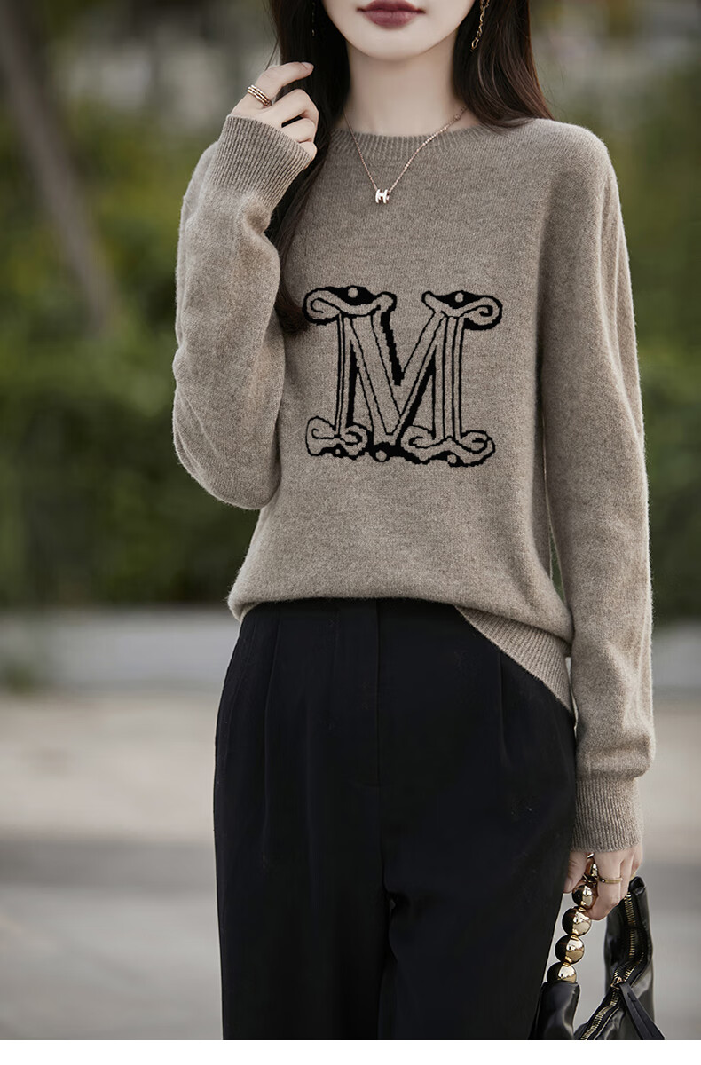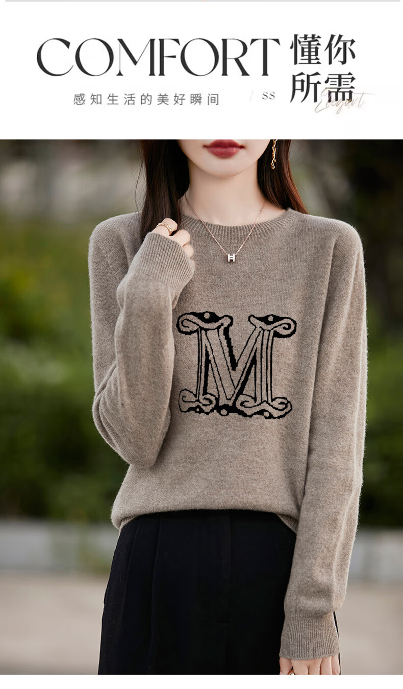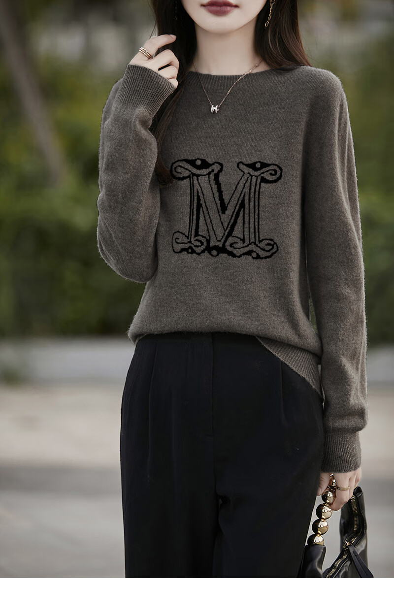 La Chapelle French Jacquard Bottoming Sweater Women's Round Neck Pullover Sweater 2025 Autumn and Winter New Style Loose Slim Top Gray M Recommended Weight 95-110 Jin Jin equals 0.5 kg