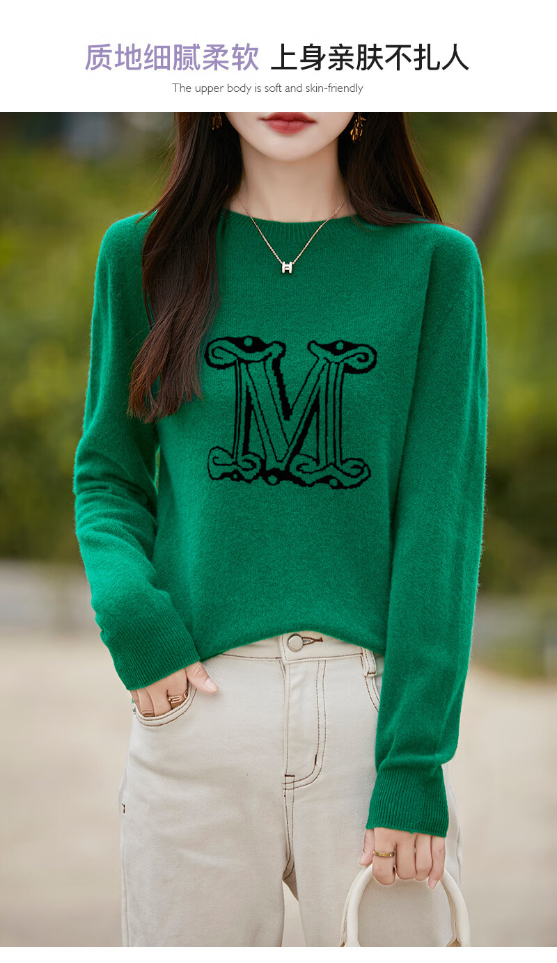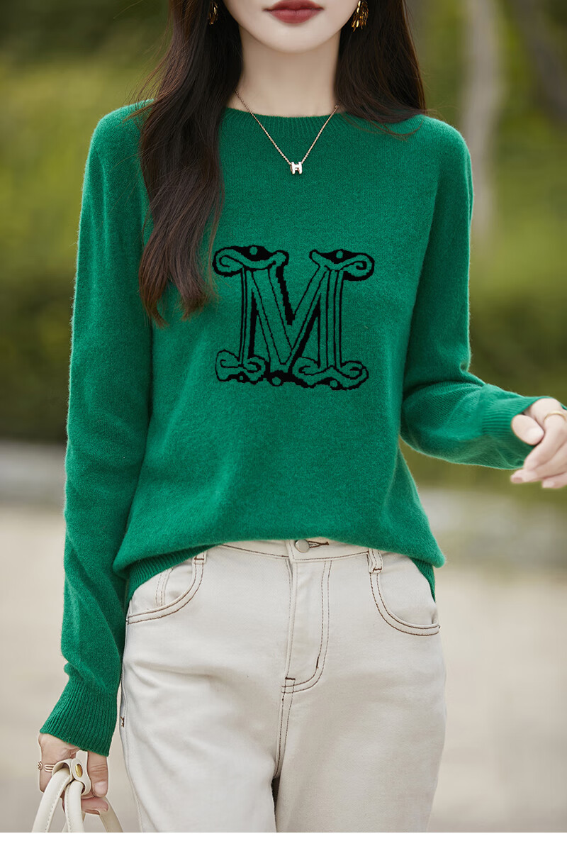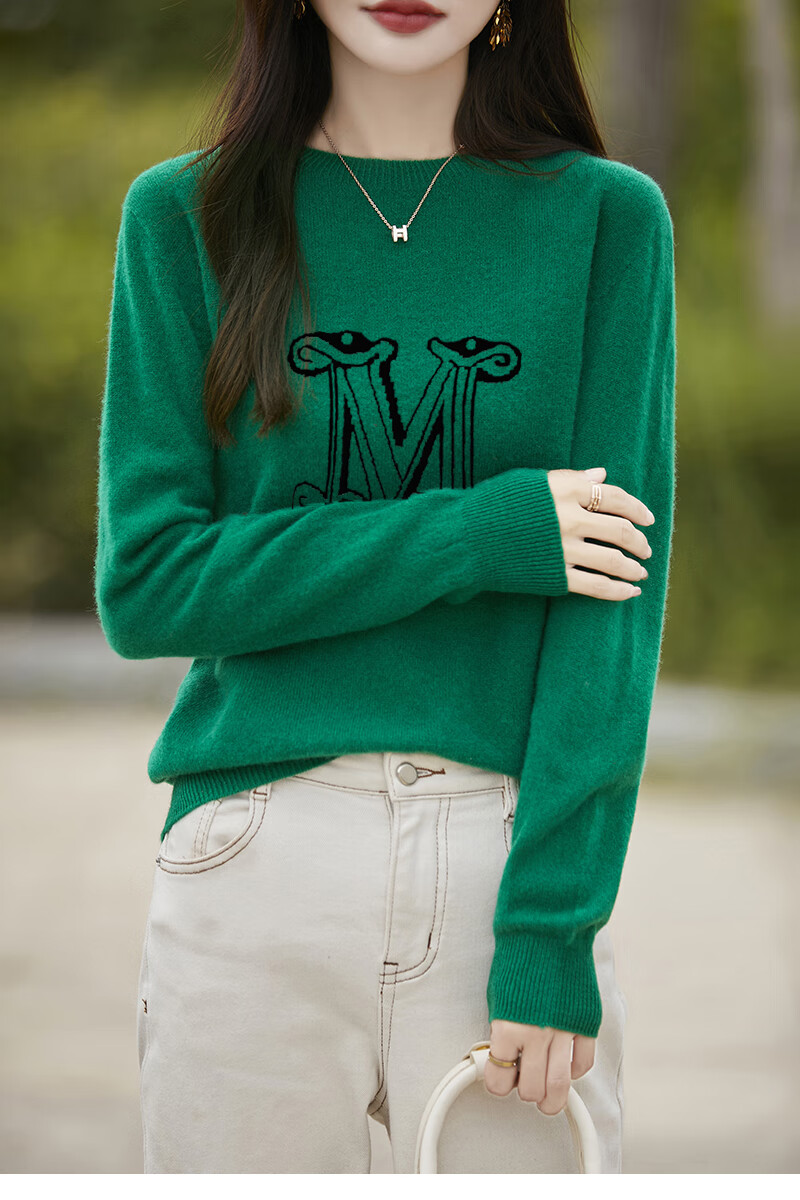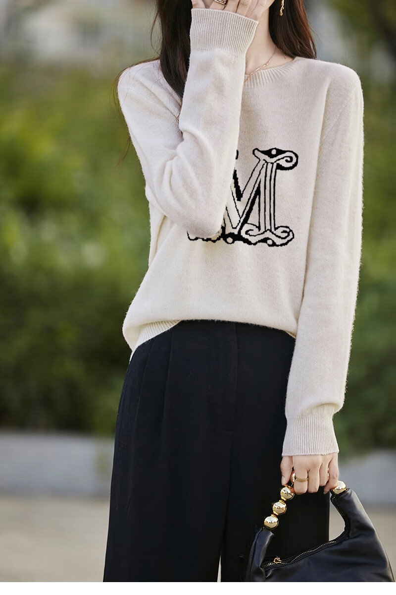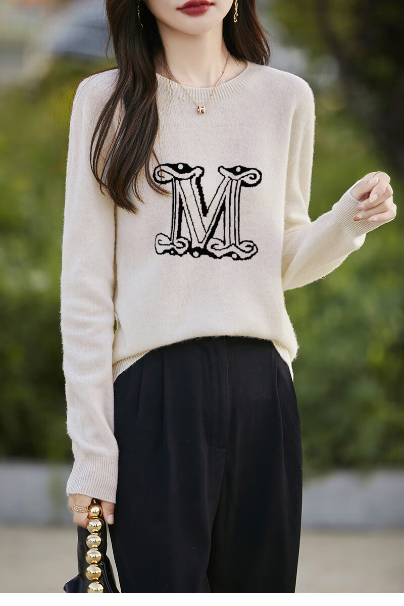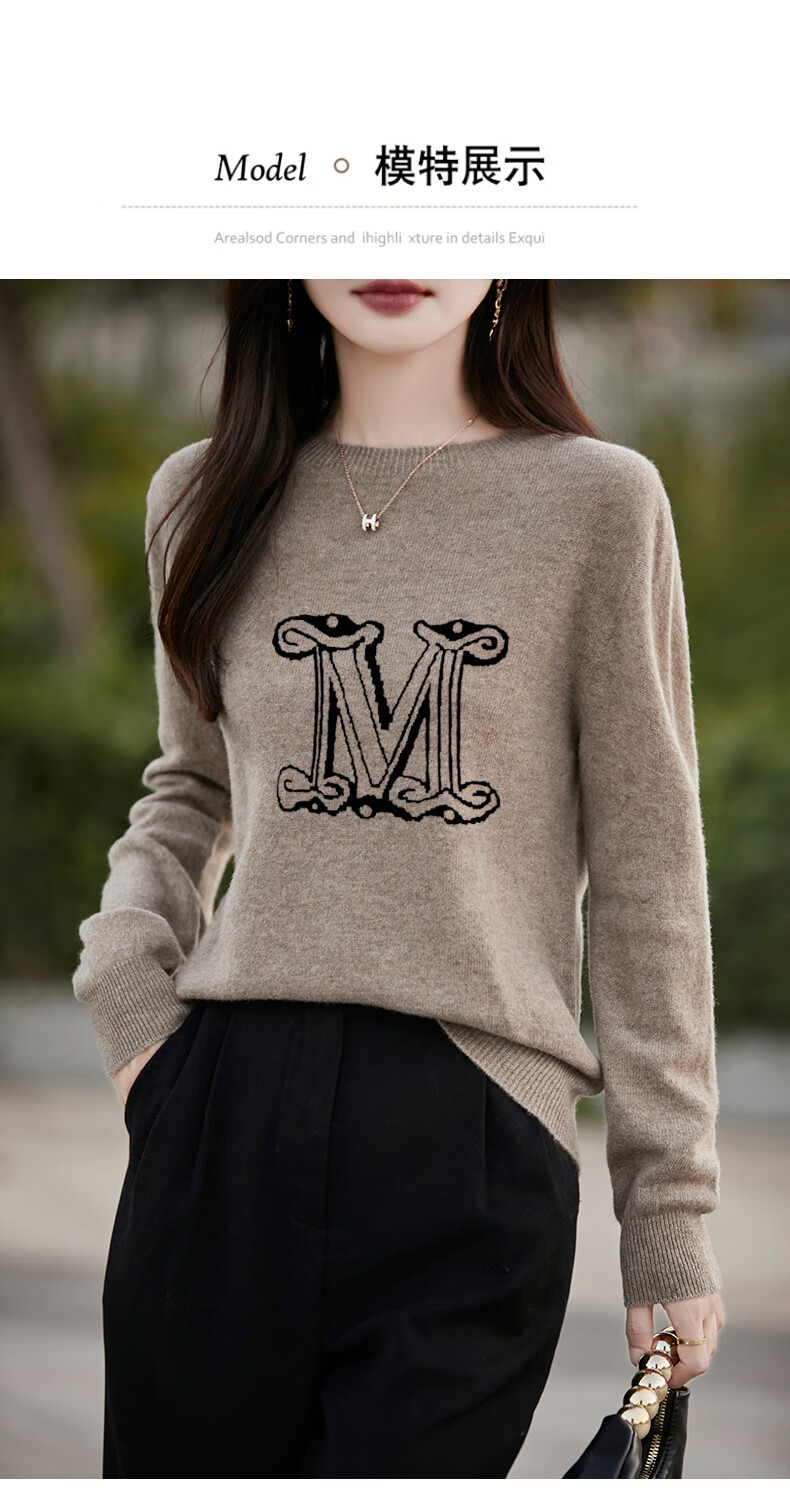 La Chapelle French Jacquard Bottoming Sweater Women's Round Neck Pullover Sweater 2025 Autumn and Winter New Style Loose Slim Top Gray M Recommended Weight 95-110 Jin Jin equals 0.5 kg