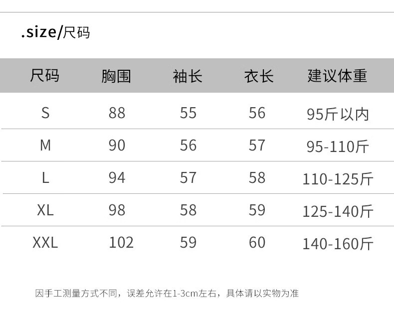 China (cm) 165 / 88-90 170 / 96-98 175 / 108-110 180 / 118-122 185 / 126-130