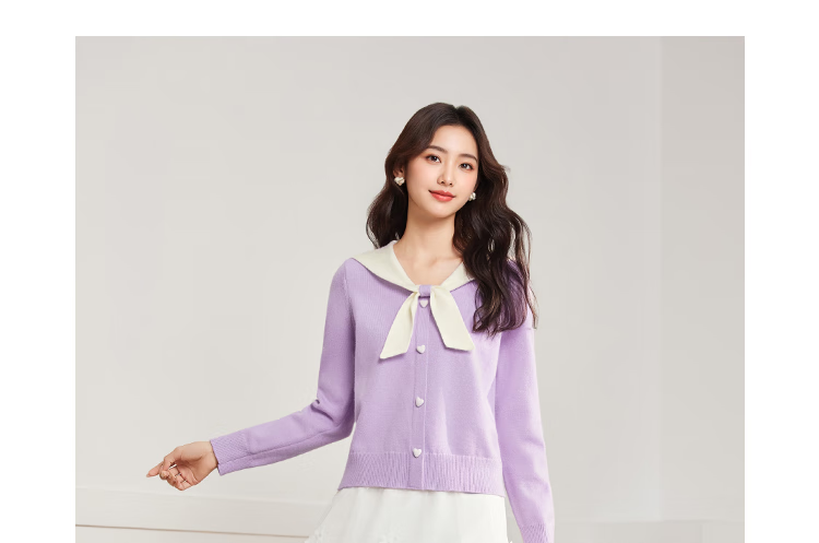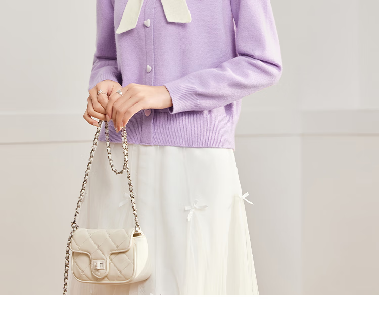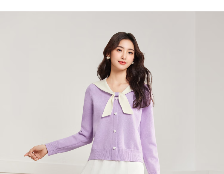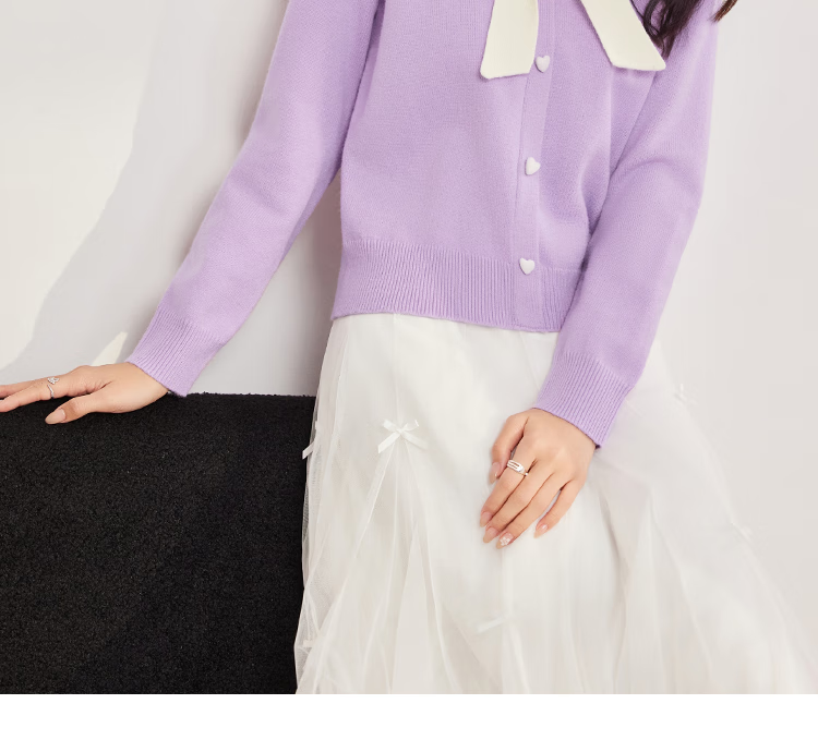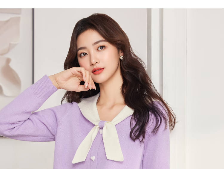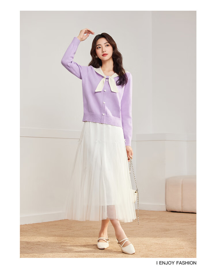 IEF/Aiyifu 2025 Autumn and Winter New French Gentle Feminine Commuting Versatile Woolen Top Purple One Size