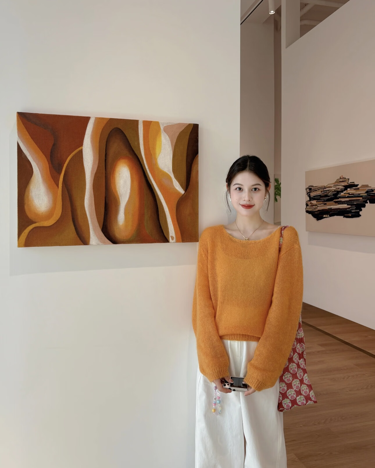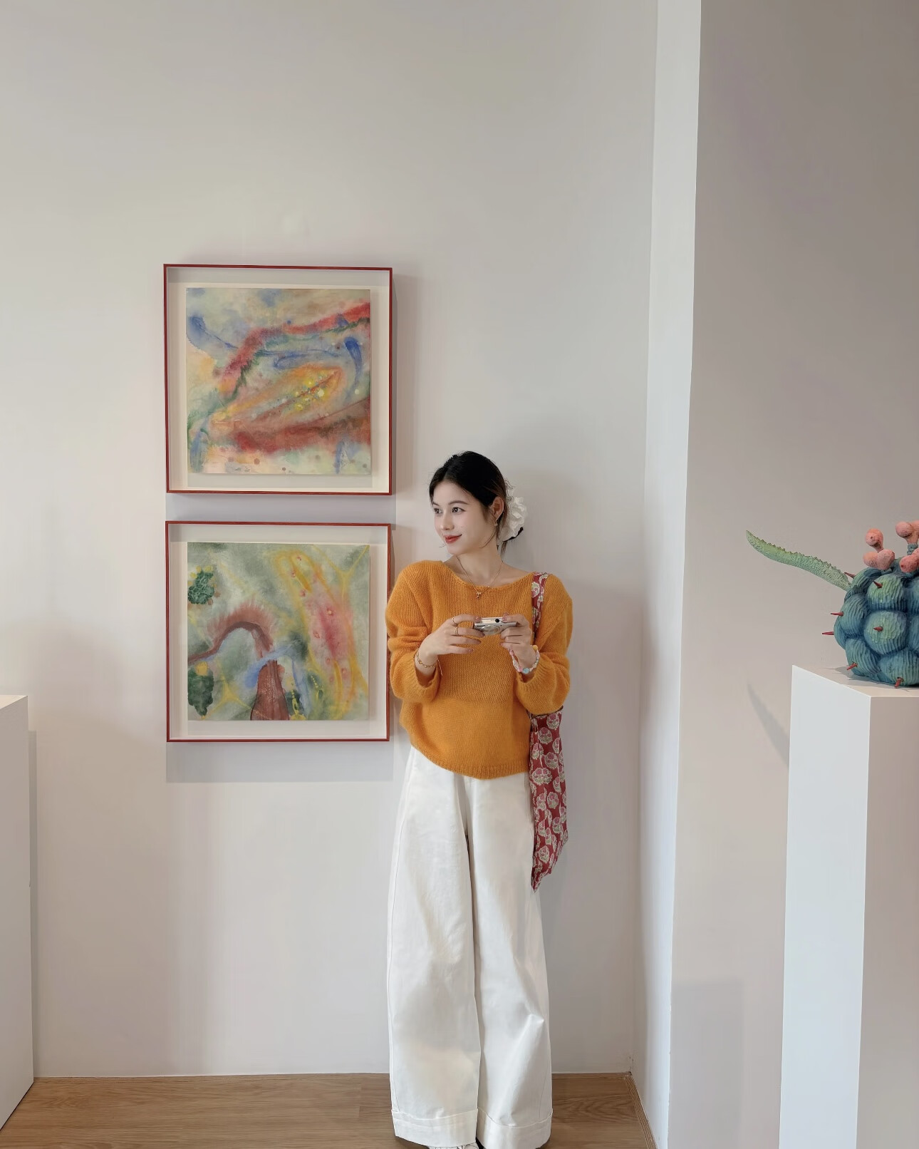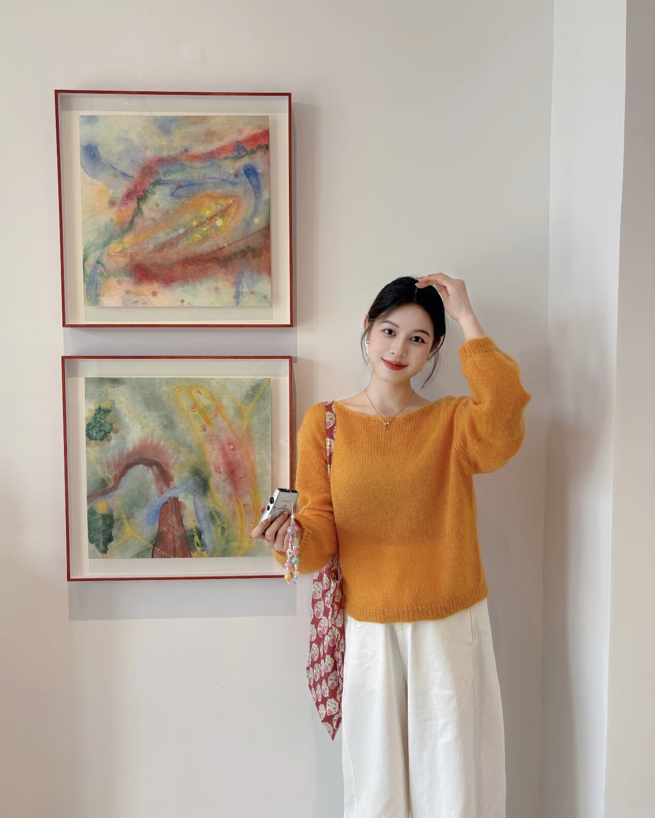 Su Yuwei pumpkin orange high-end lazy style v-neck sweater for women in autumn and winter sweet and soft glutinous inner sweater to cover the butt top orange Follow the store - free shipping insurance S (80-95Jin Jin is equal to 0.5 kg)