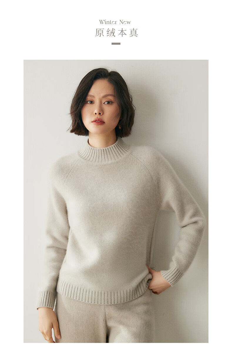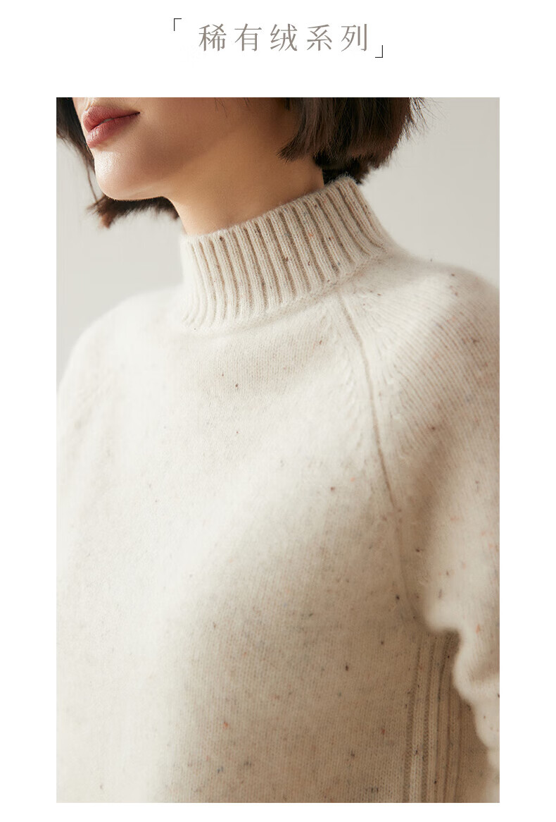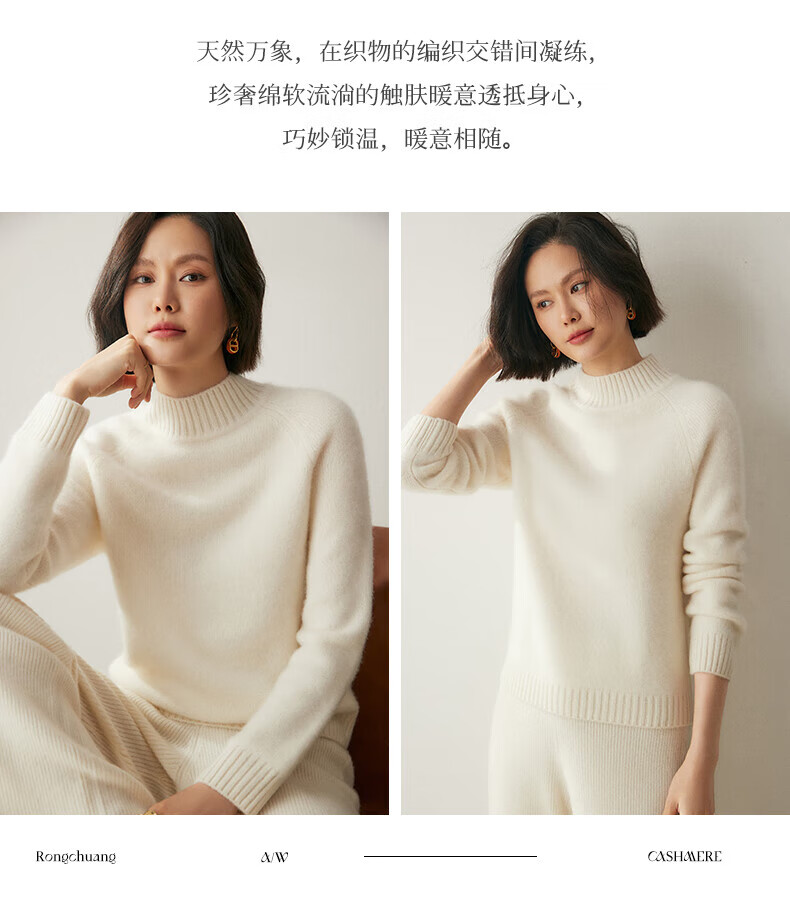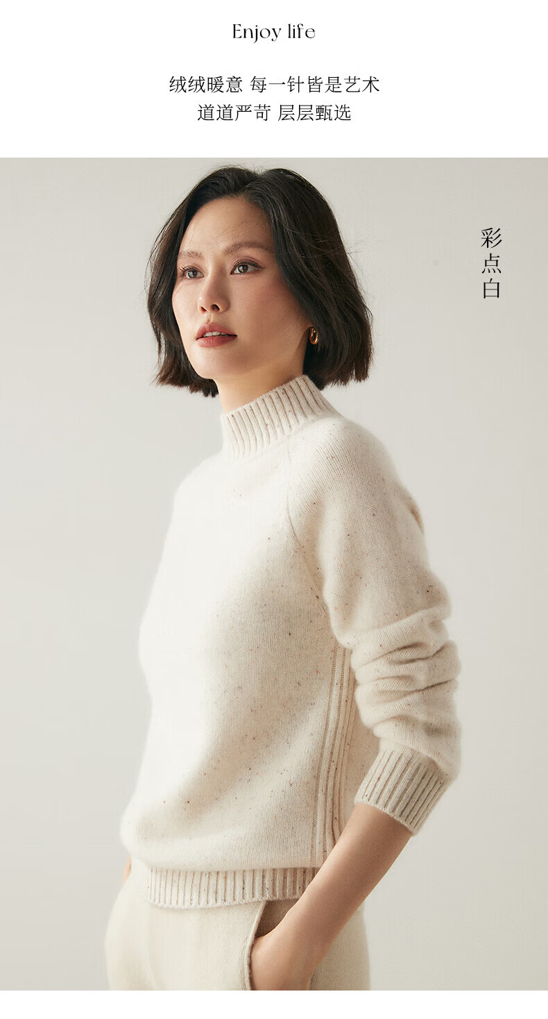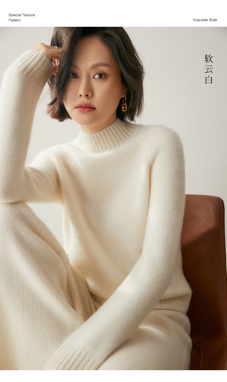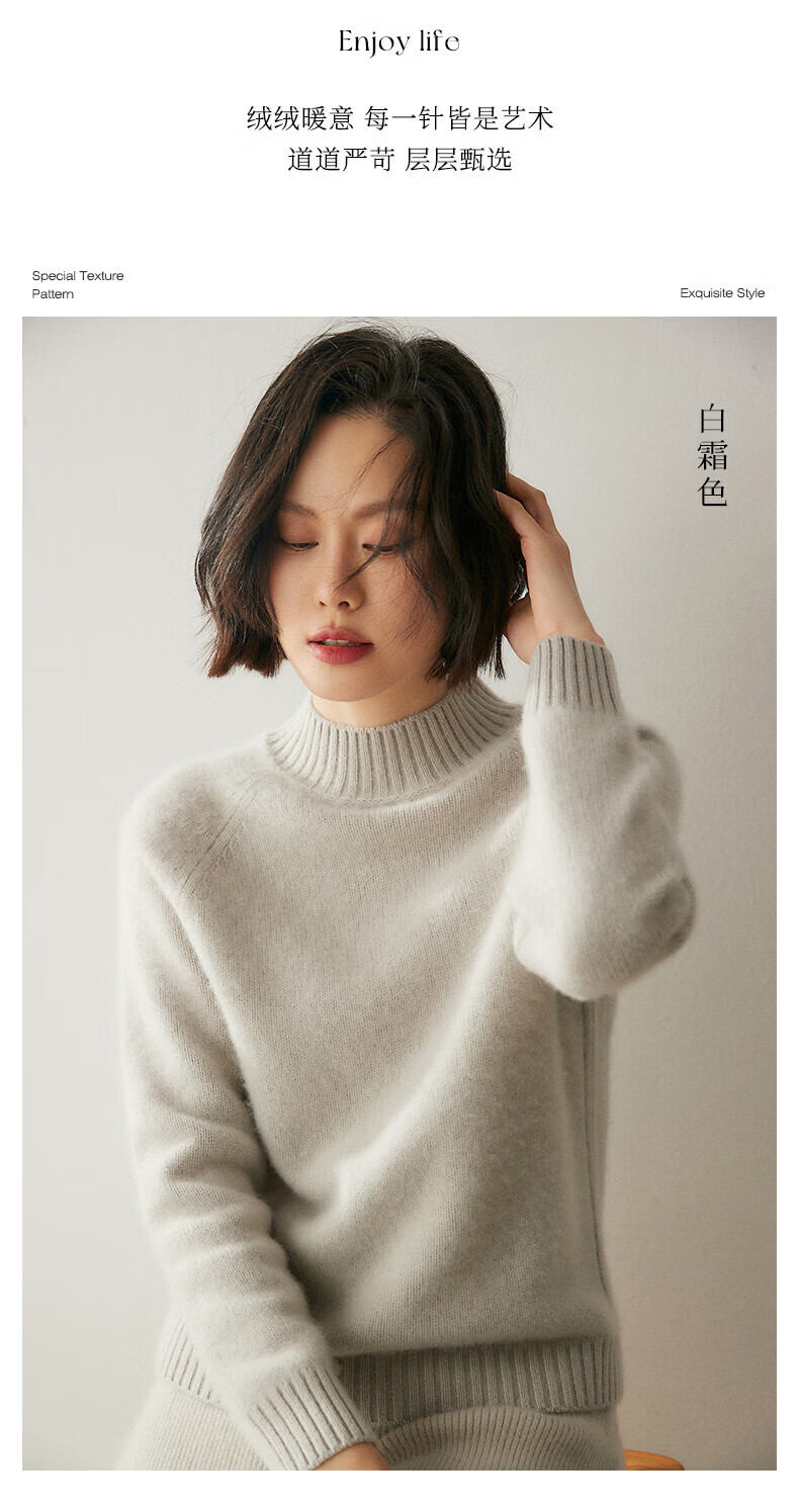 ERDOS Ordos autumn and winter three-strand thickened half turtleneck cashmere sweater women's cashmere loose knitted sweater cashmere base white frost M