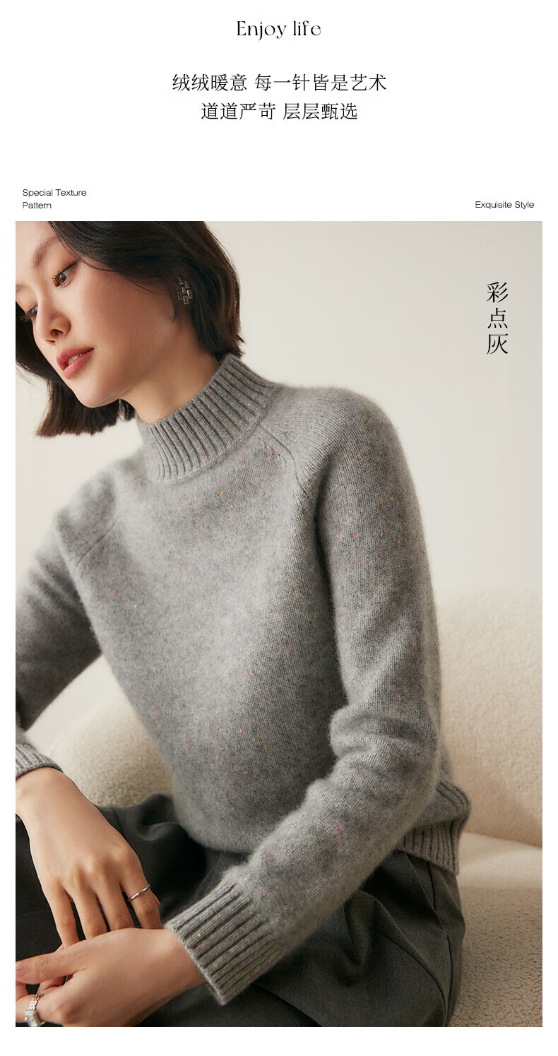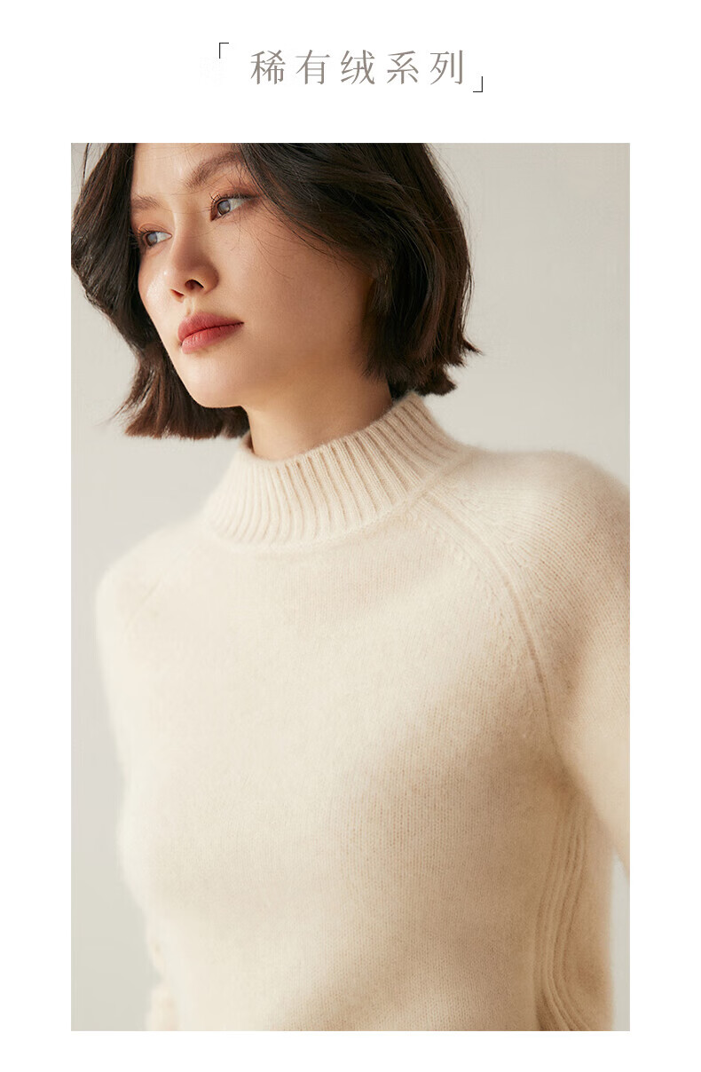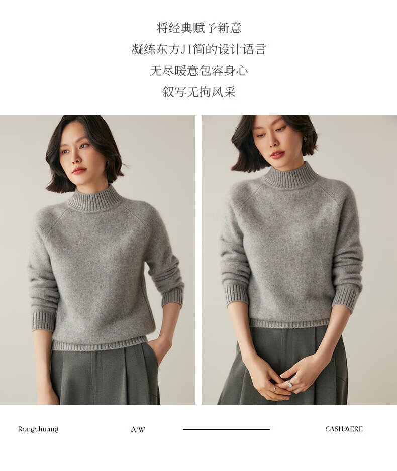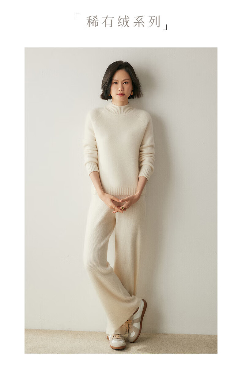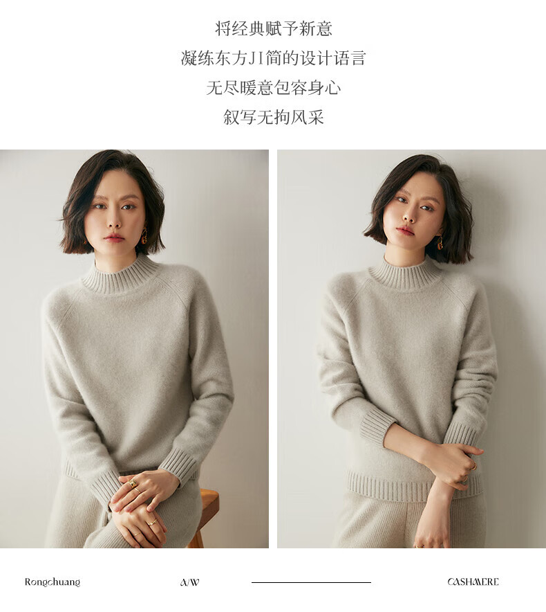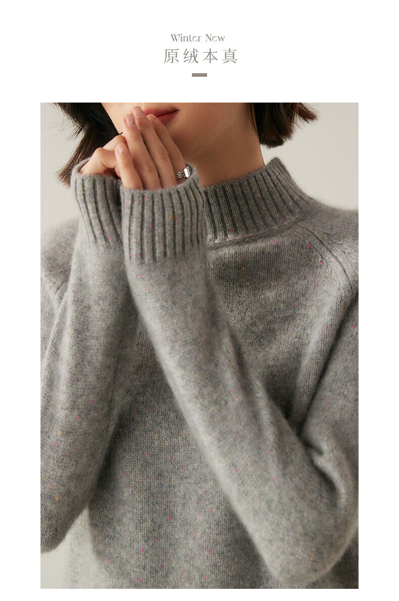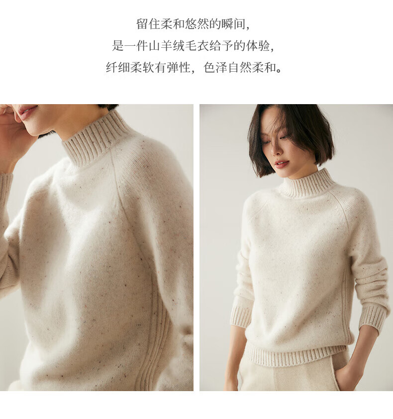 ERDOS Ordos autumn and winter three-strand thickened half turtleneck cashmere sweater women's cashmere loose knitted sweater cashmere base white frost M