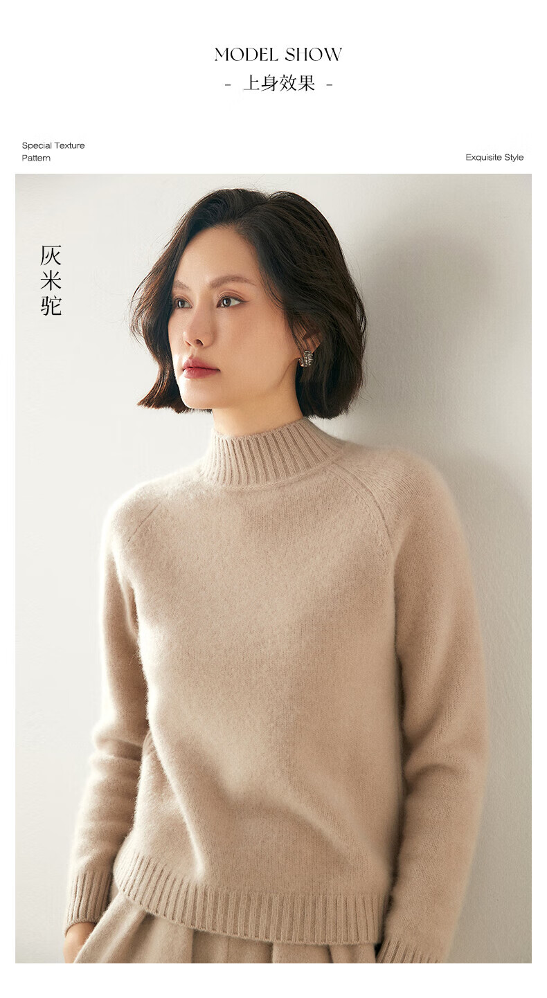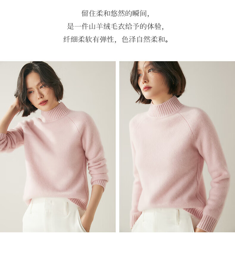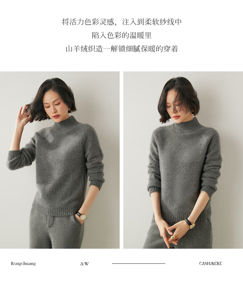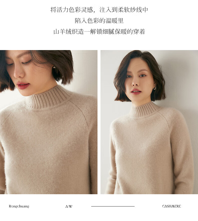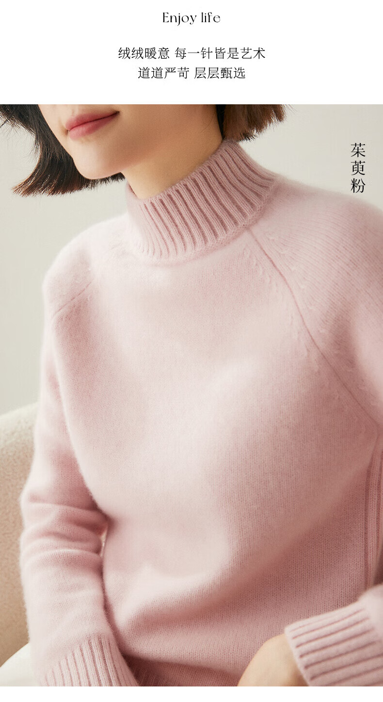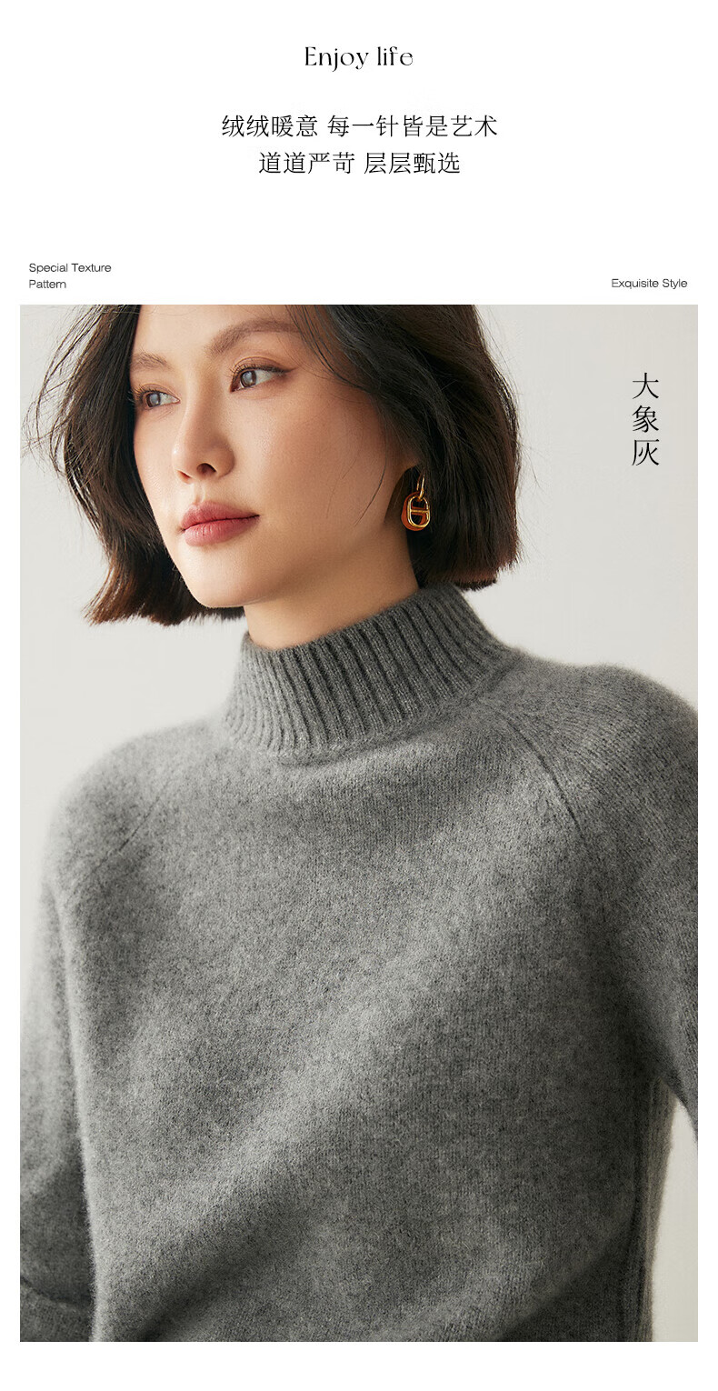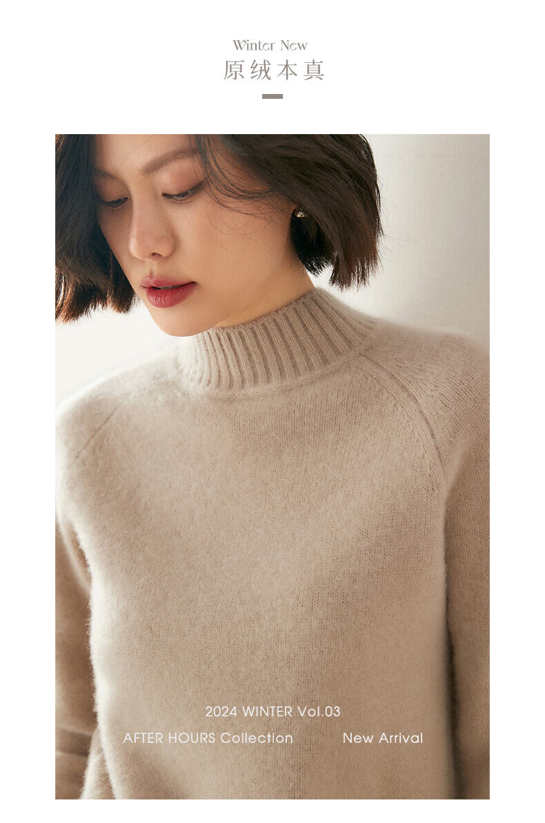 ERDOS Ordos autumn and winter three-strand thickened half turtleneck cashmere sweater women's cashmere loose knitted sweater cashmere base white frost M