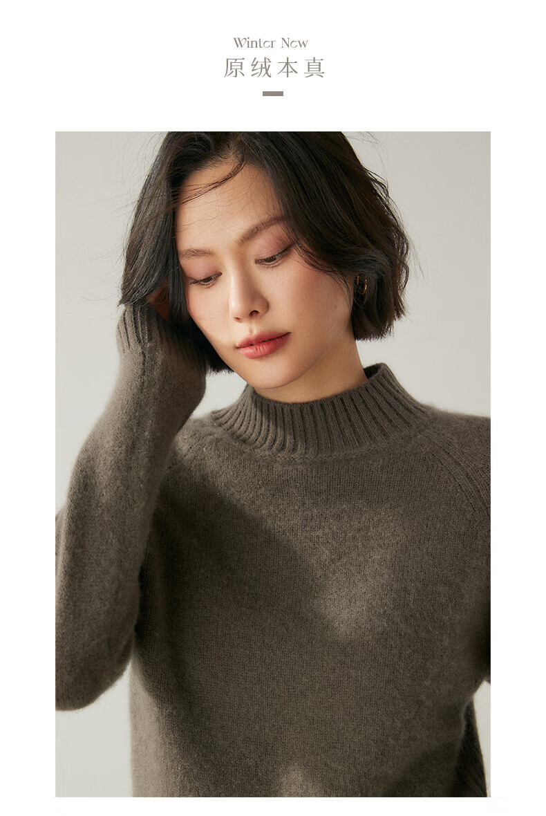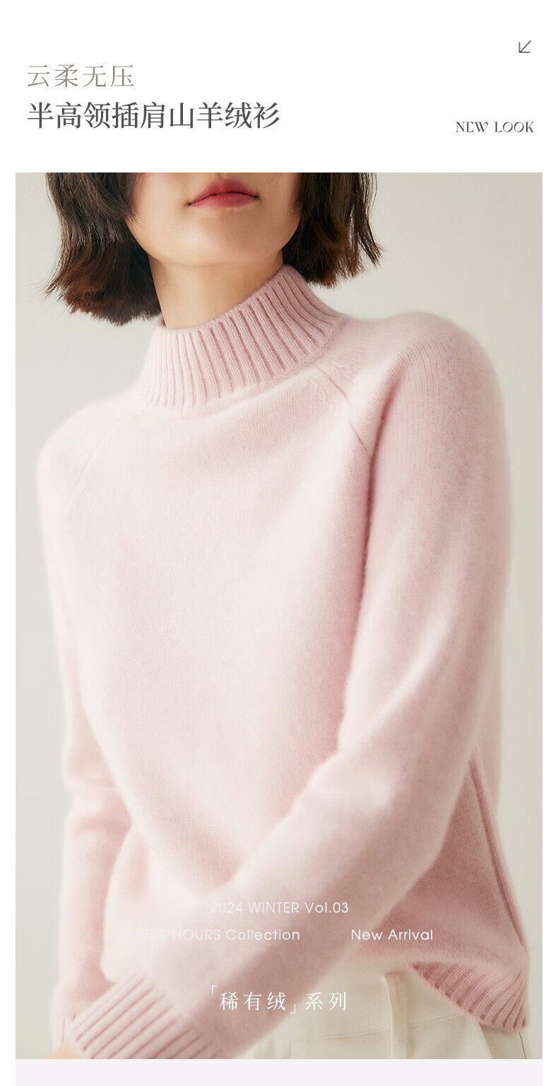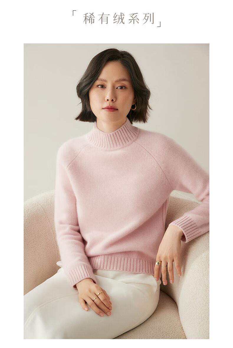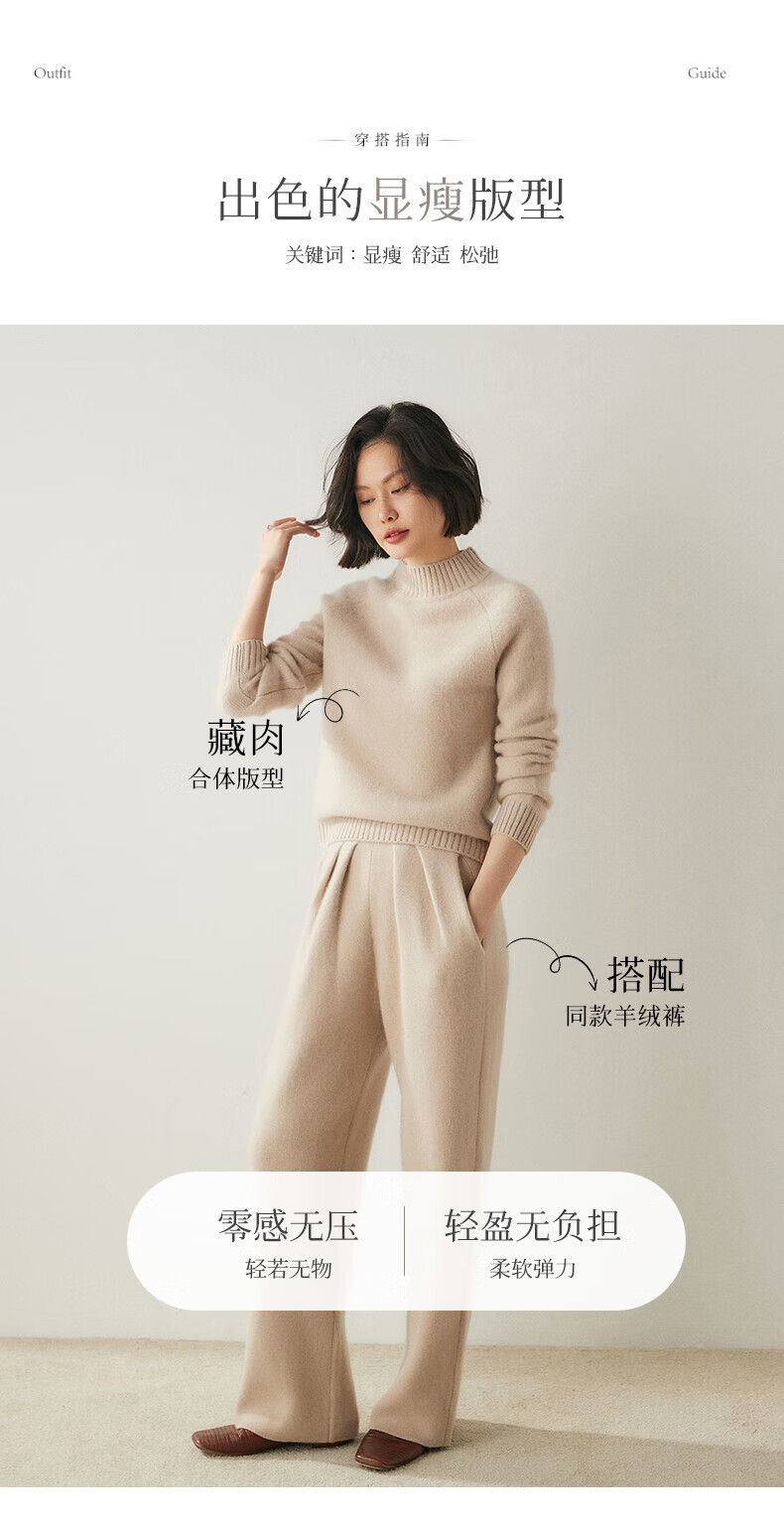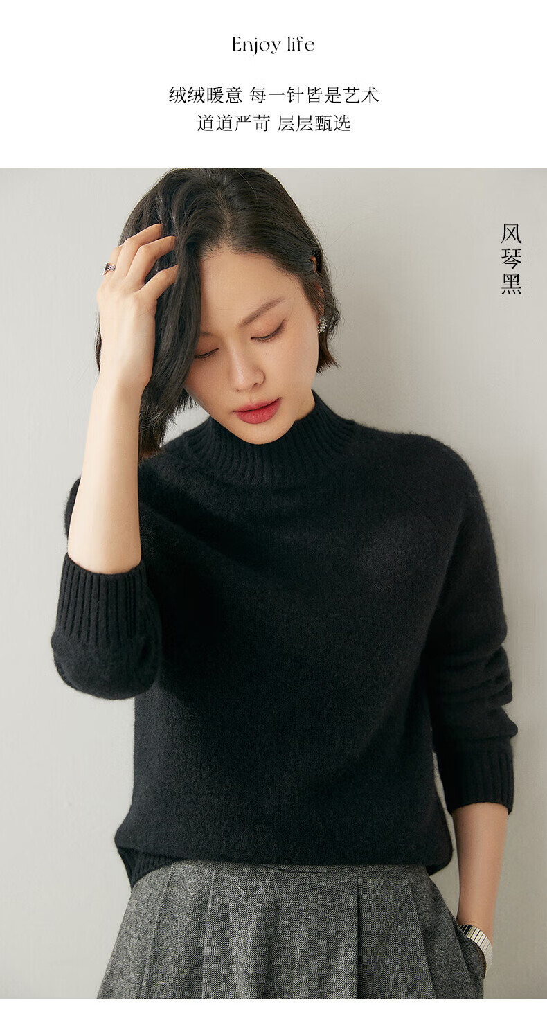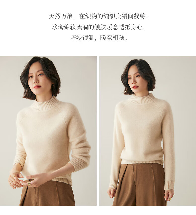 ERDOS Ordos autumn and winter three-strand thickened half turtleneck cashmere sweater women's cashmere loose knitted sweater cashmere base white frost M