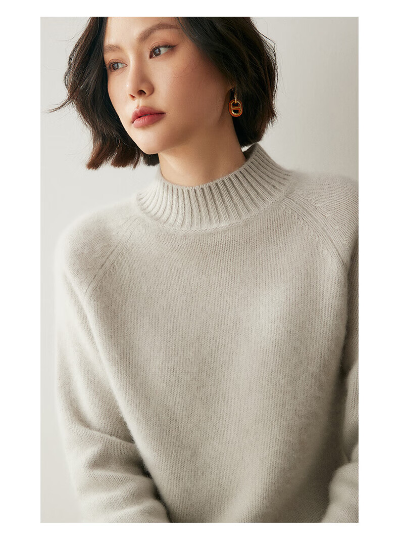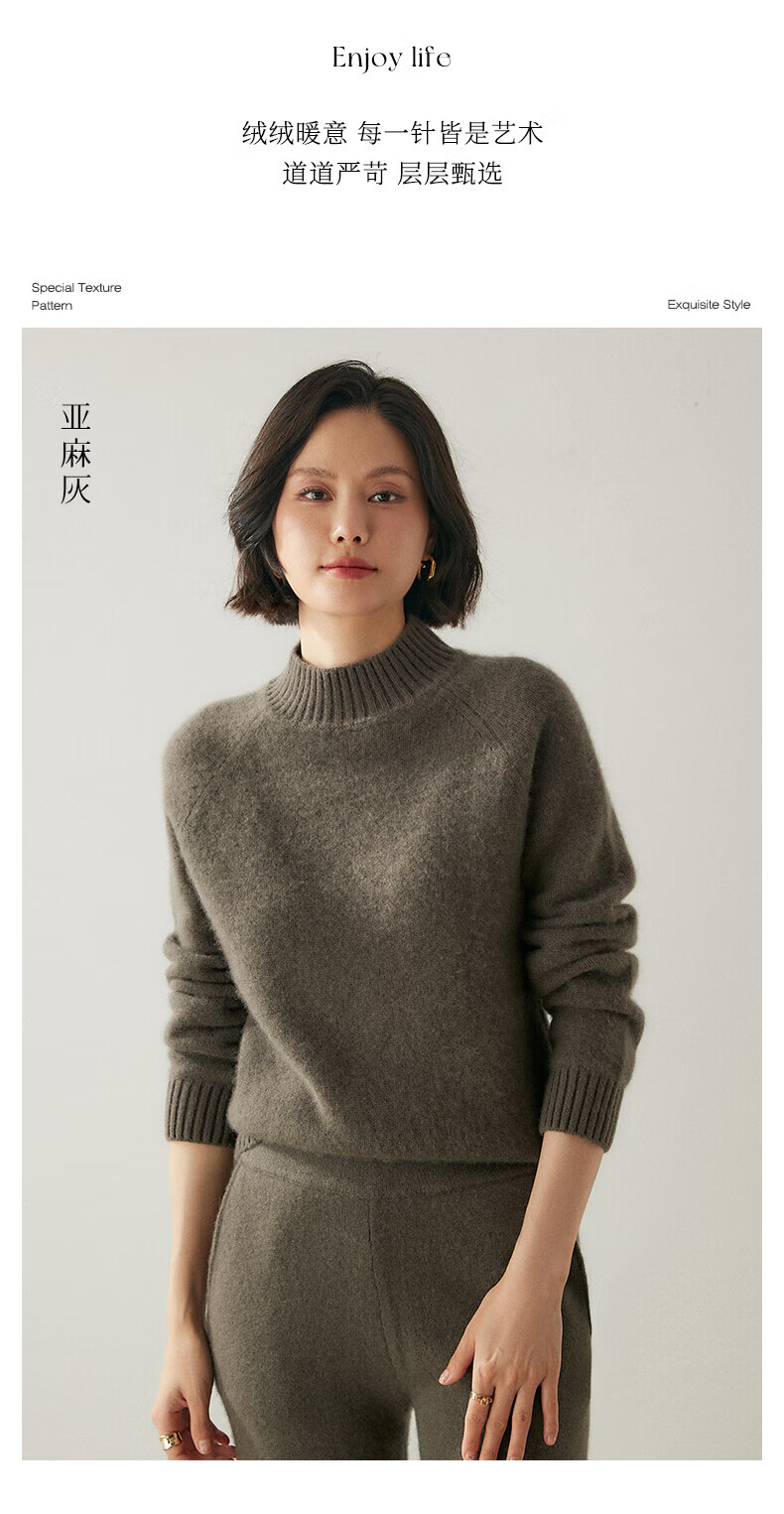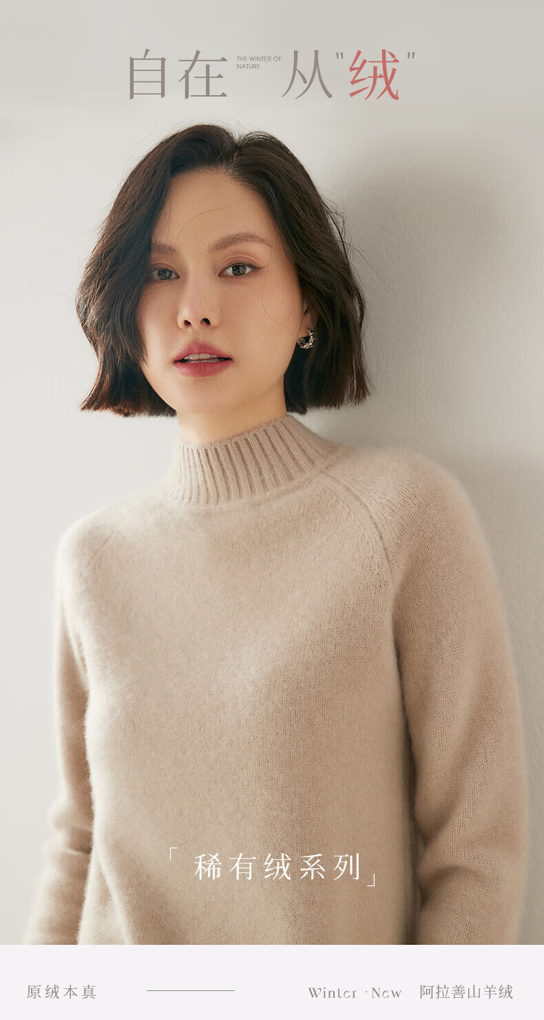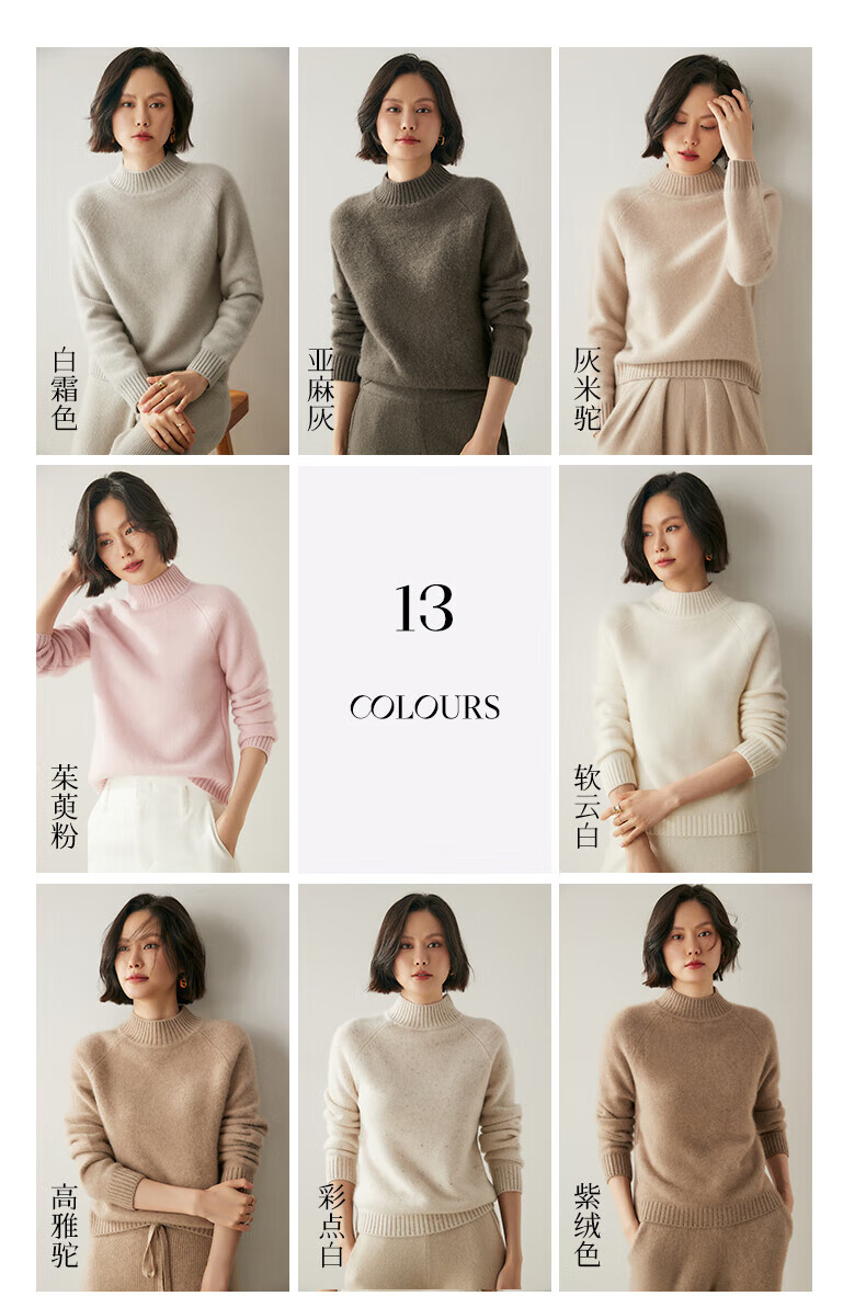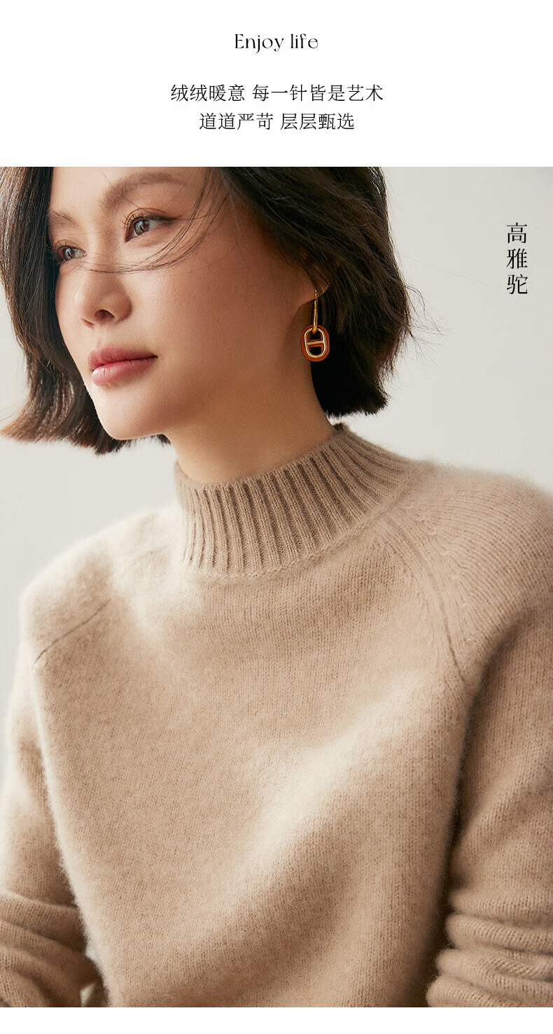 ERDOS Ordos autumn and winter three-strand thickened half turtleneck cashmere sweater women's cashmere loose knitted sweater cashmere base white frost M