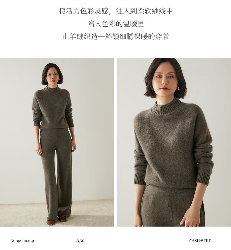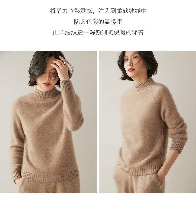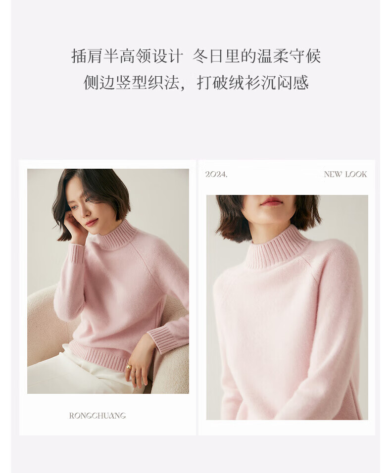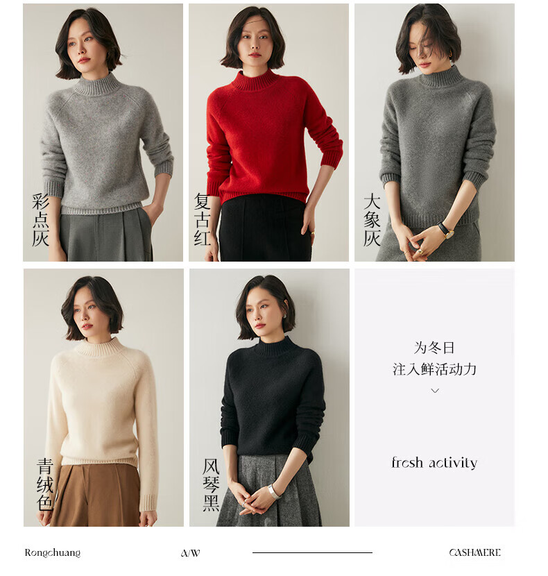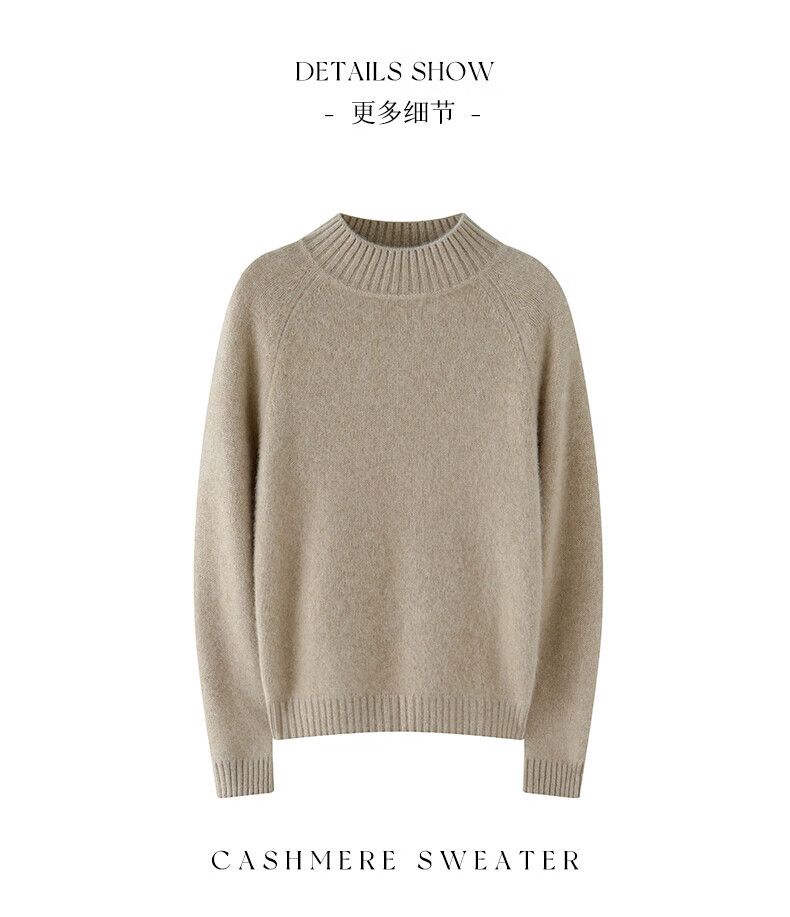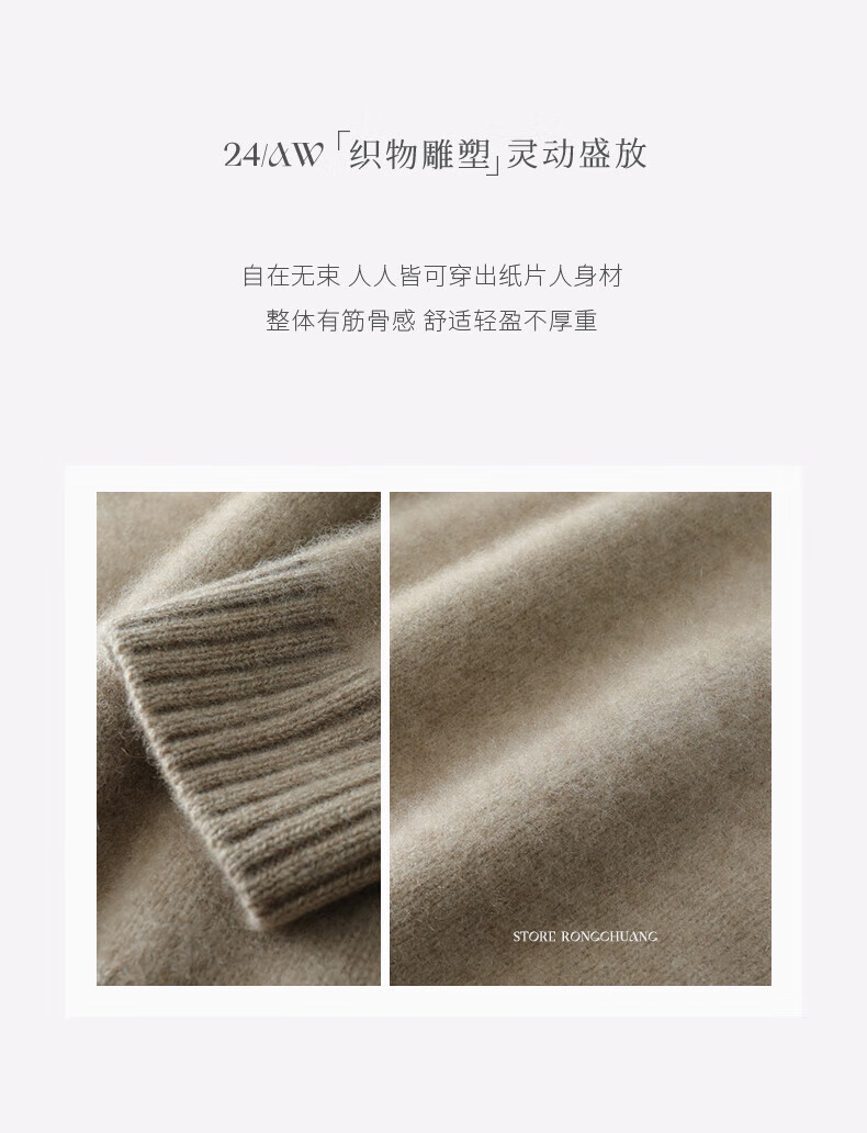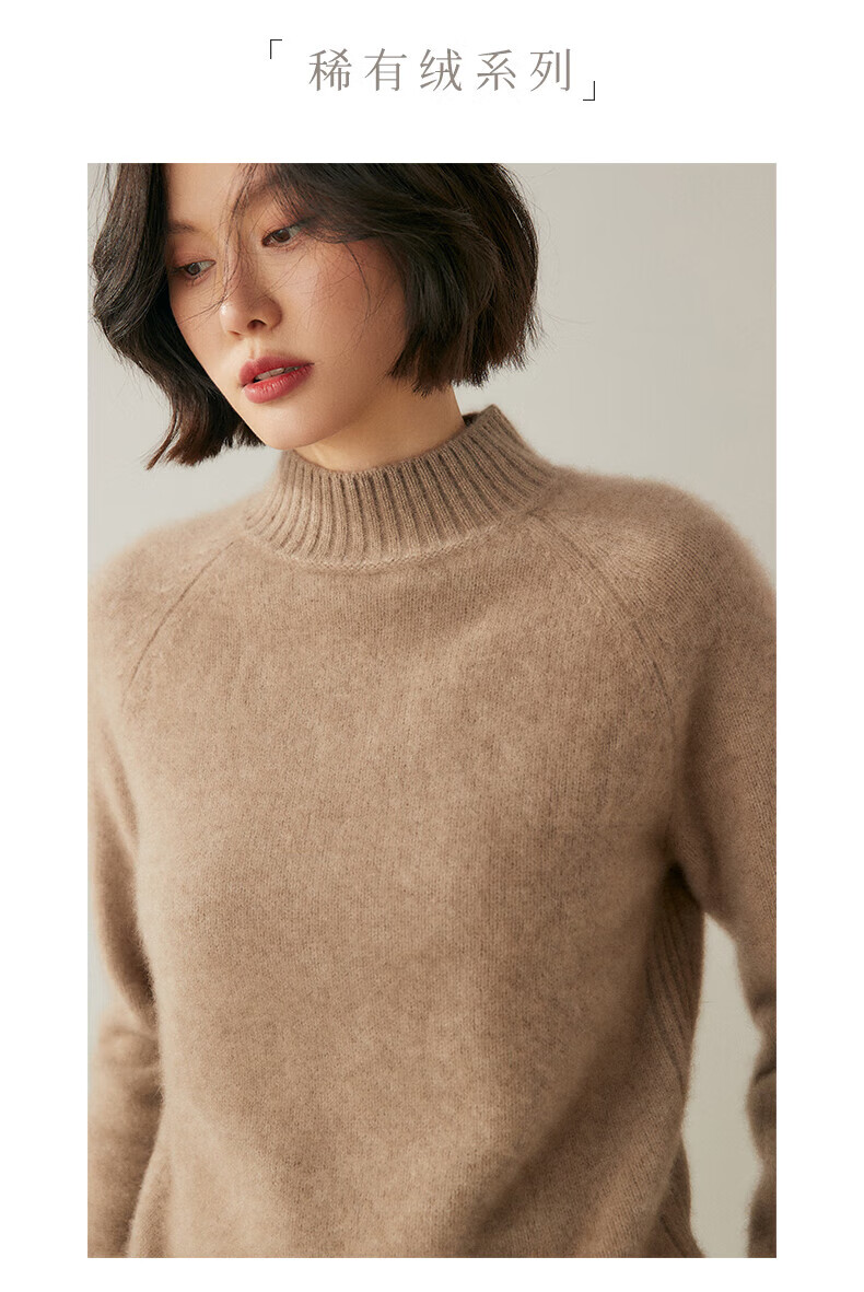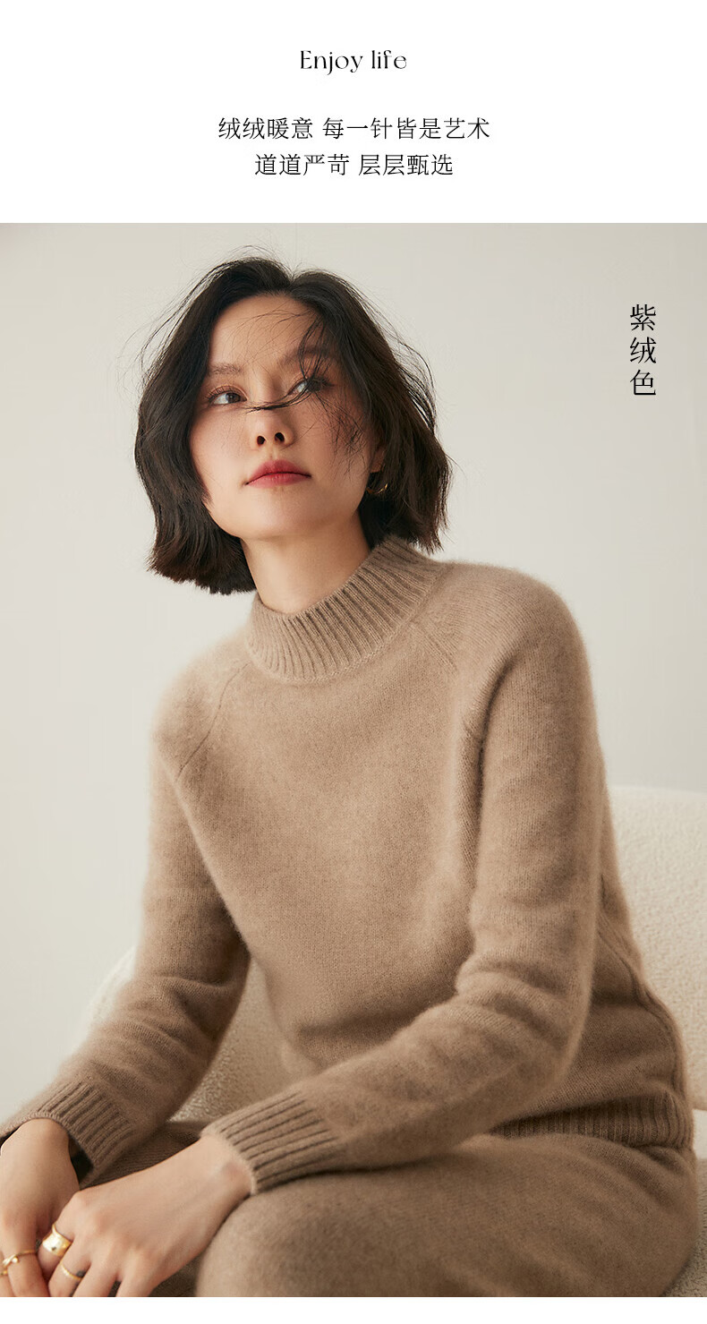 ERDOS Ordos autumn and winter three-strand thickened half turtleneck cashmere sweater women's cashmere loose knitted sweater cashmere base white frost M