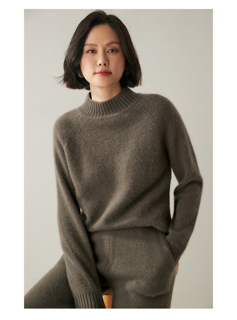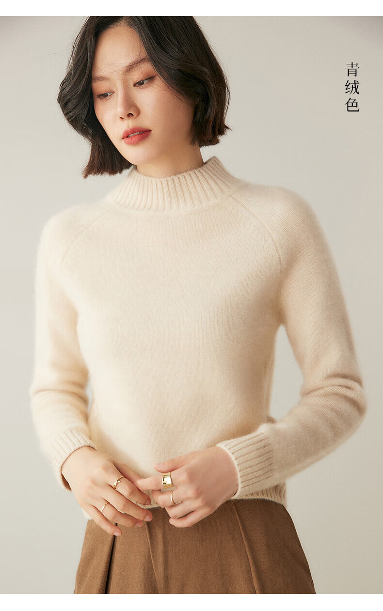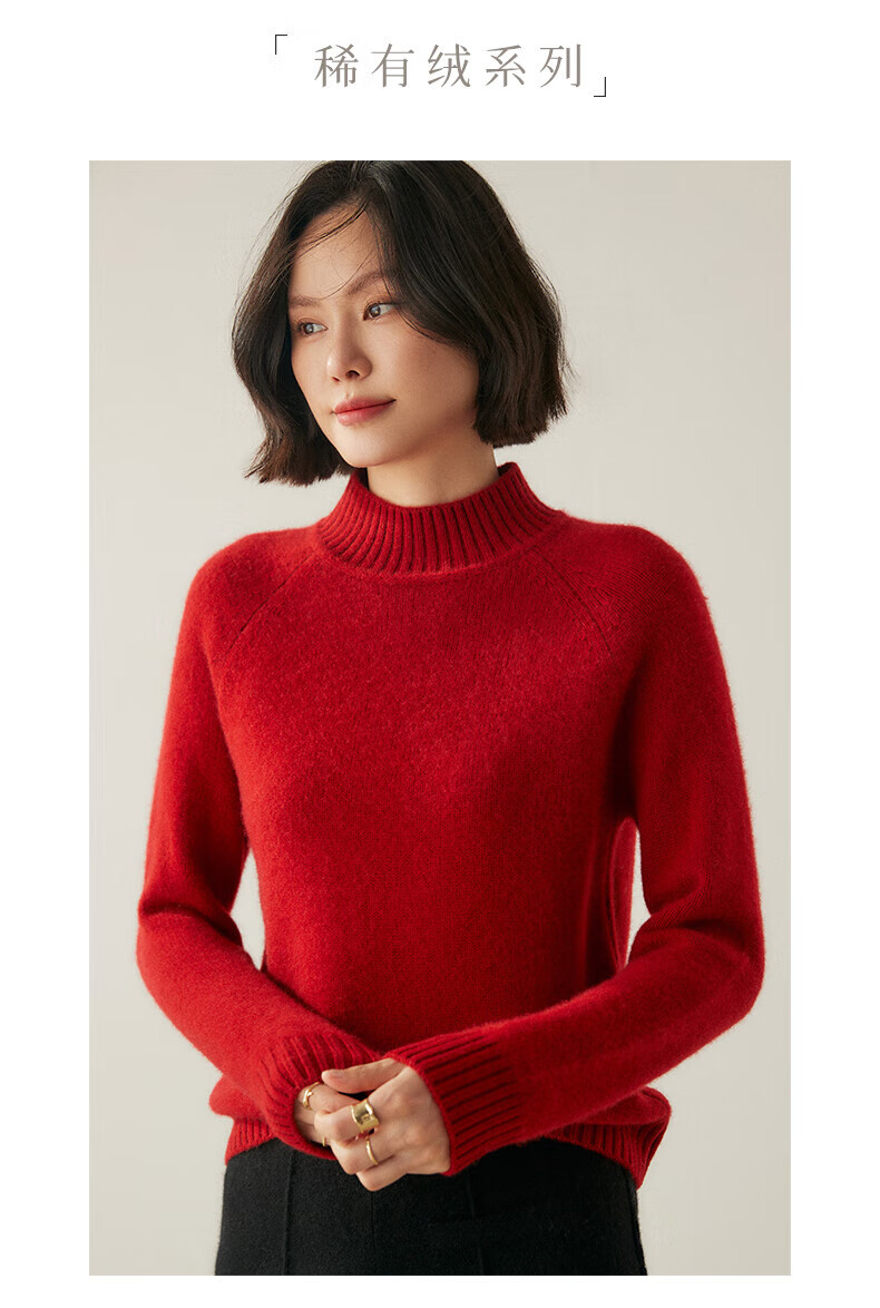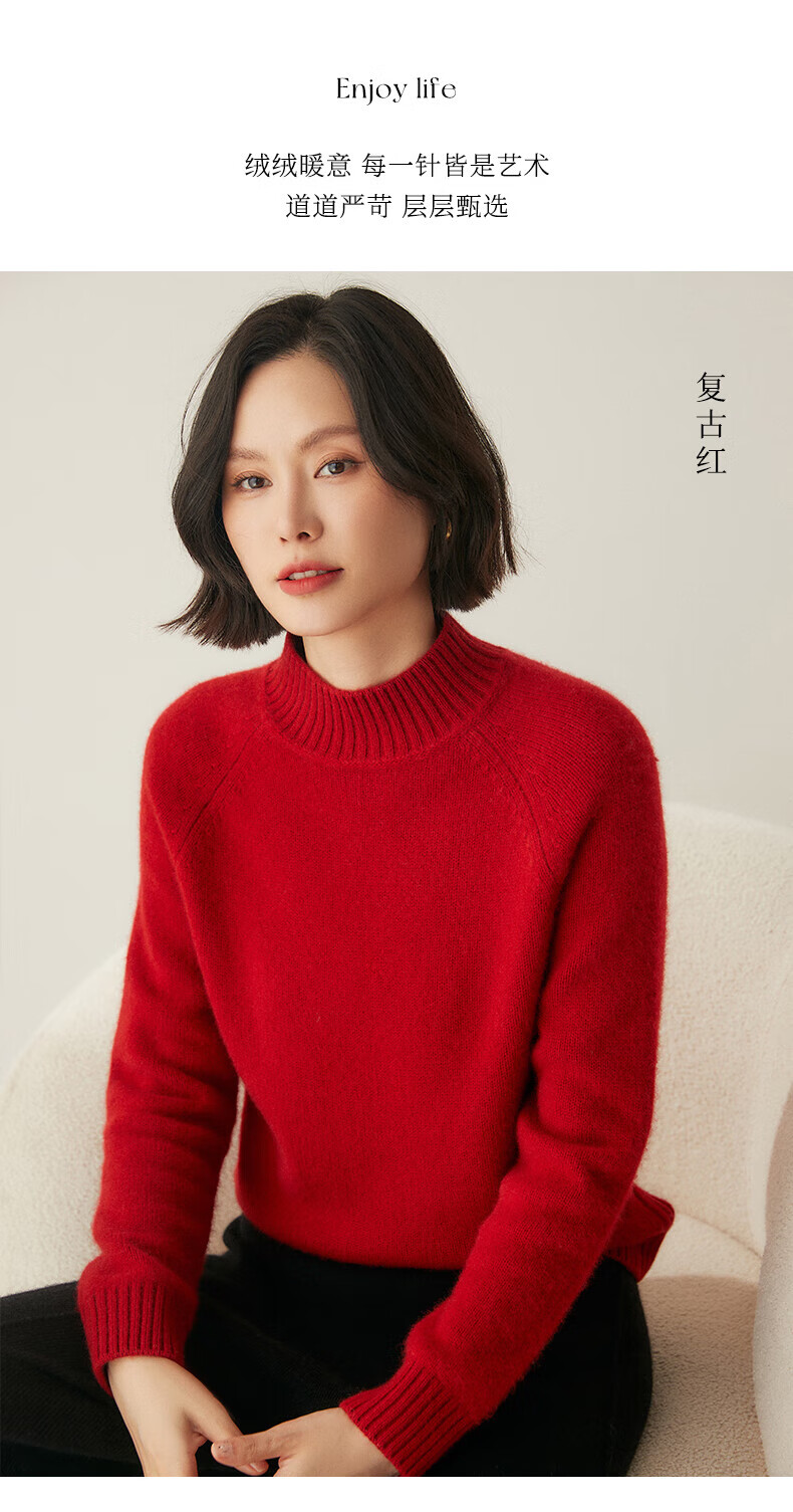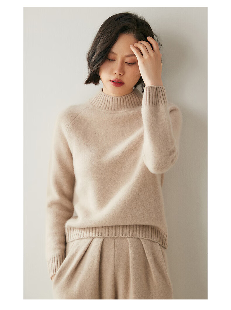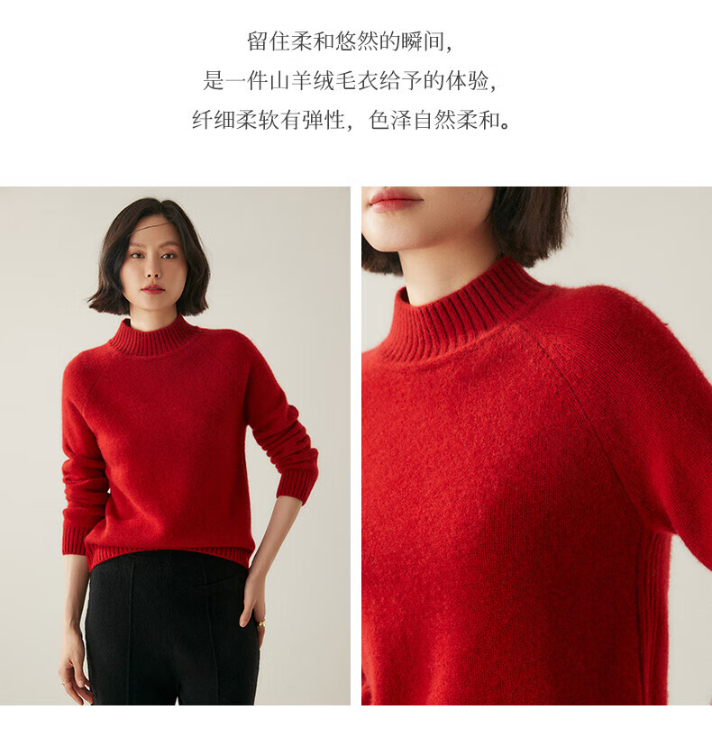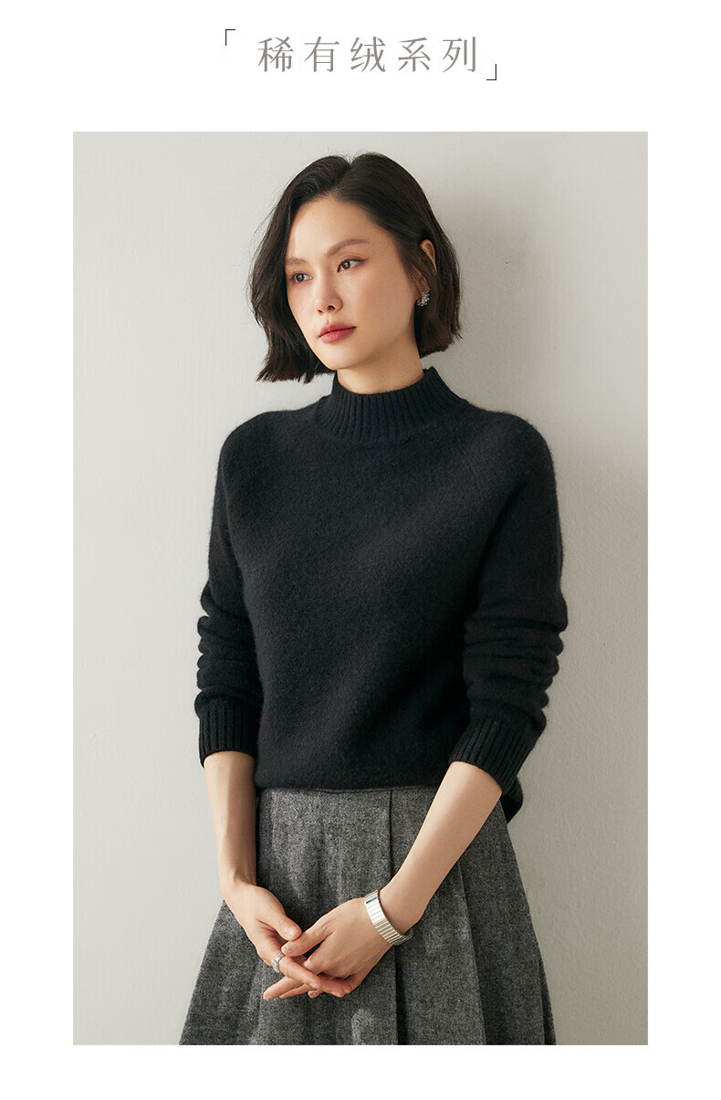 ERDOS Ordos autumn and winter three-strand thickened half turtleneck cashmere sweater women's cashmere loose knitted sweater cashmere base white frost M