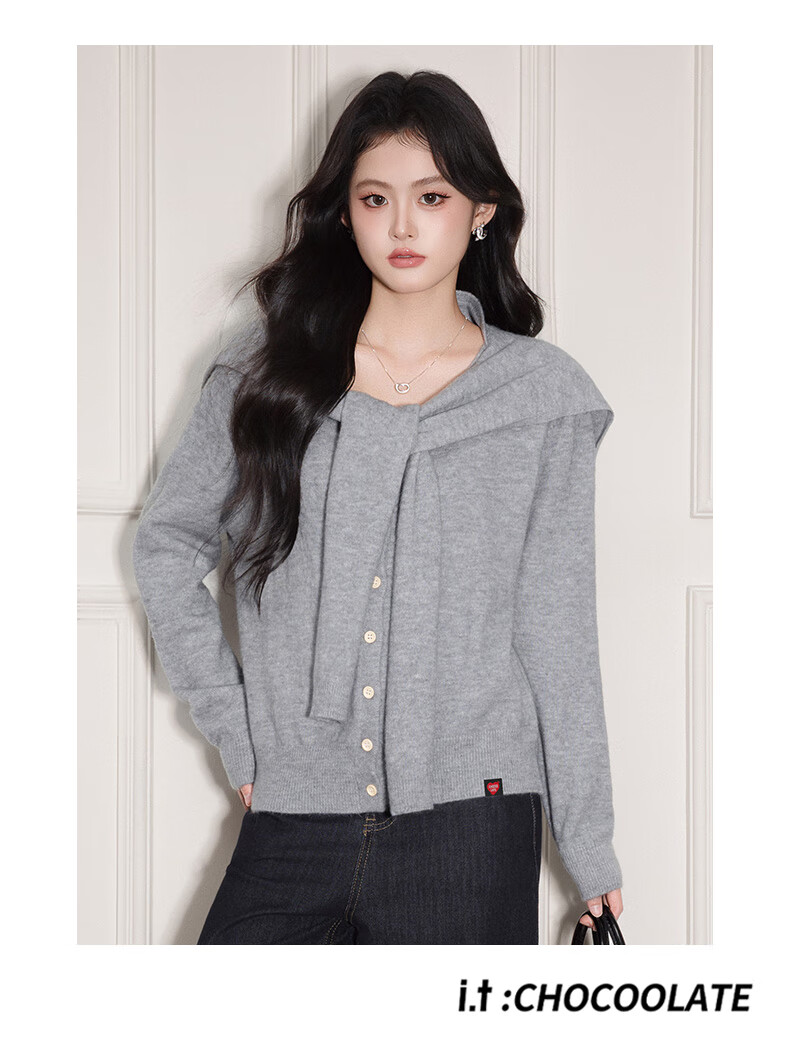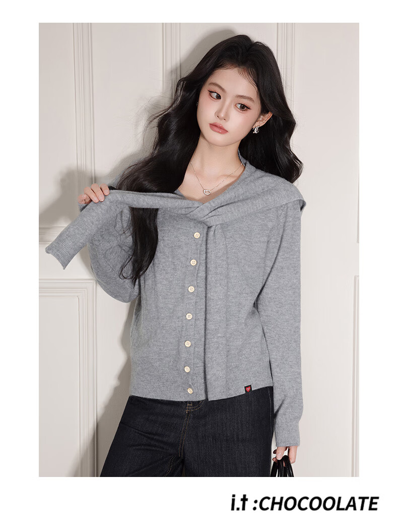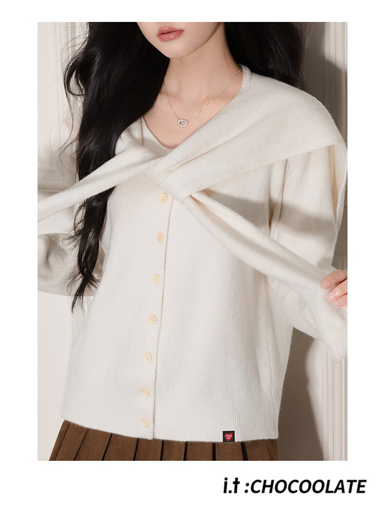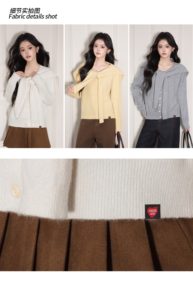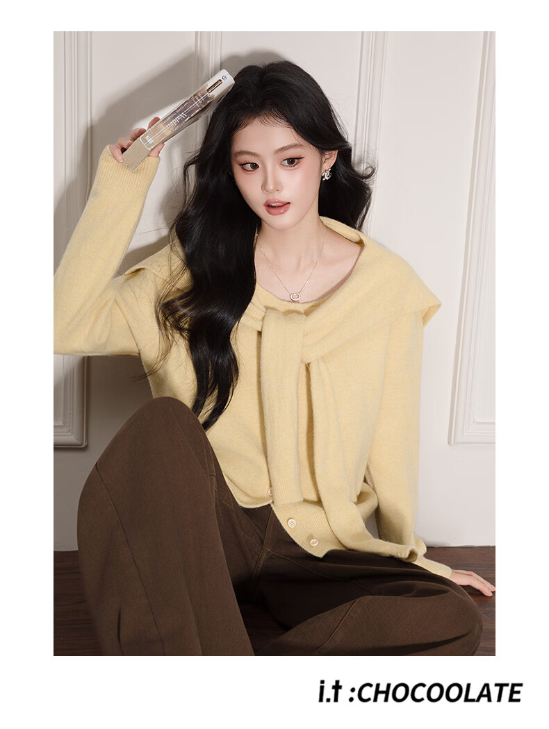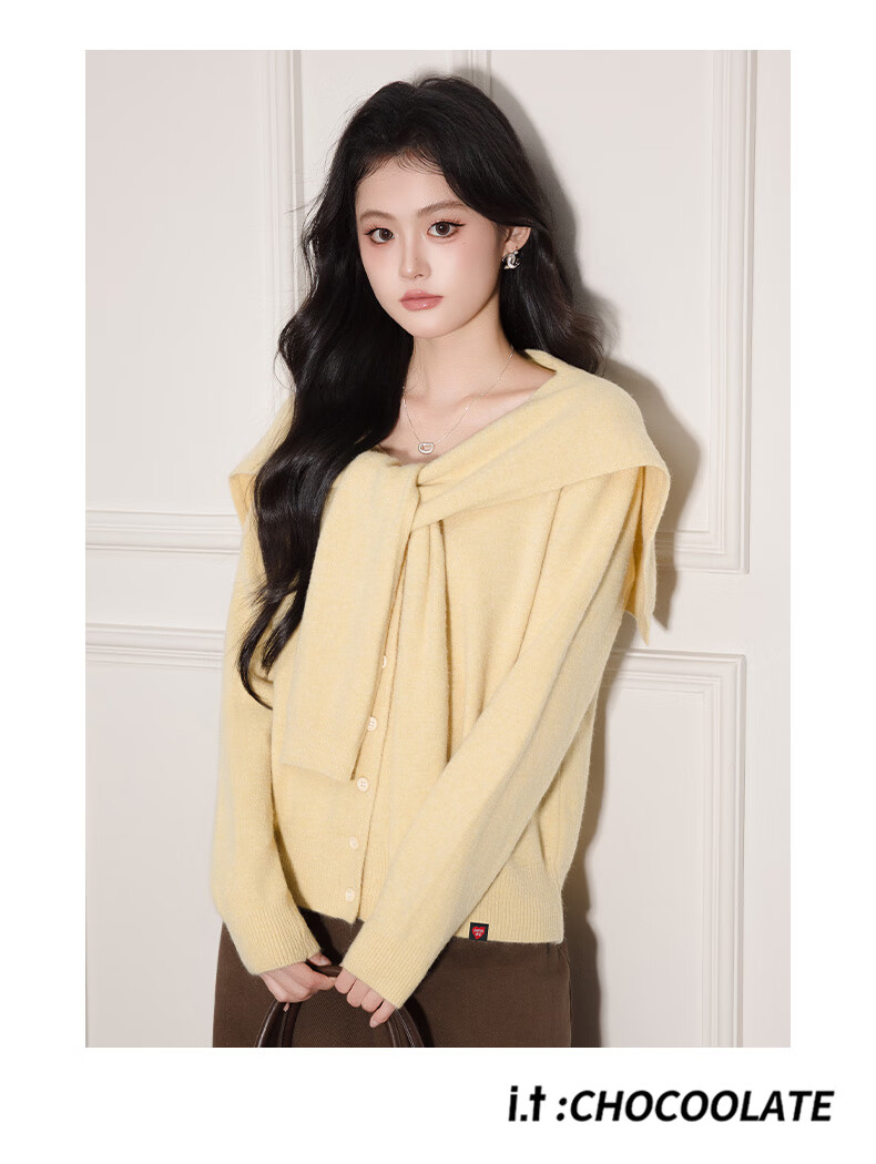 CHOCOOLATE it women's trendy brand temperament shawl sweater knitted cardigan for women 2025 autumn and winter popular loose casual top yellow one size