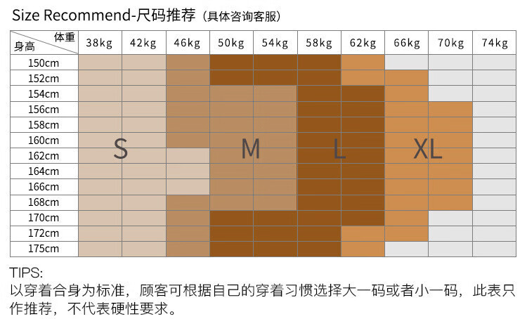 China (cm) 160-165/84-86 165-170 / 88-90 167-172 / 92-96 168-173 / 98-102 170-176 / 106-110