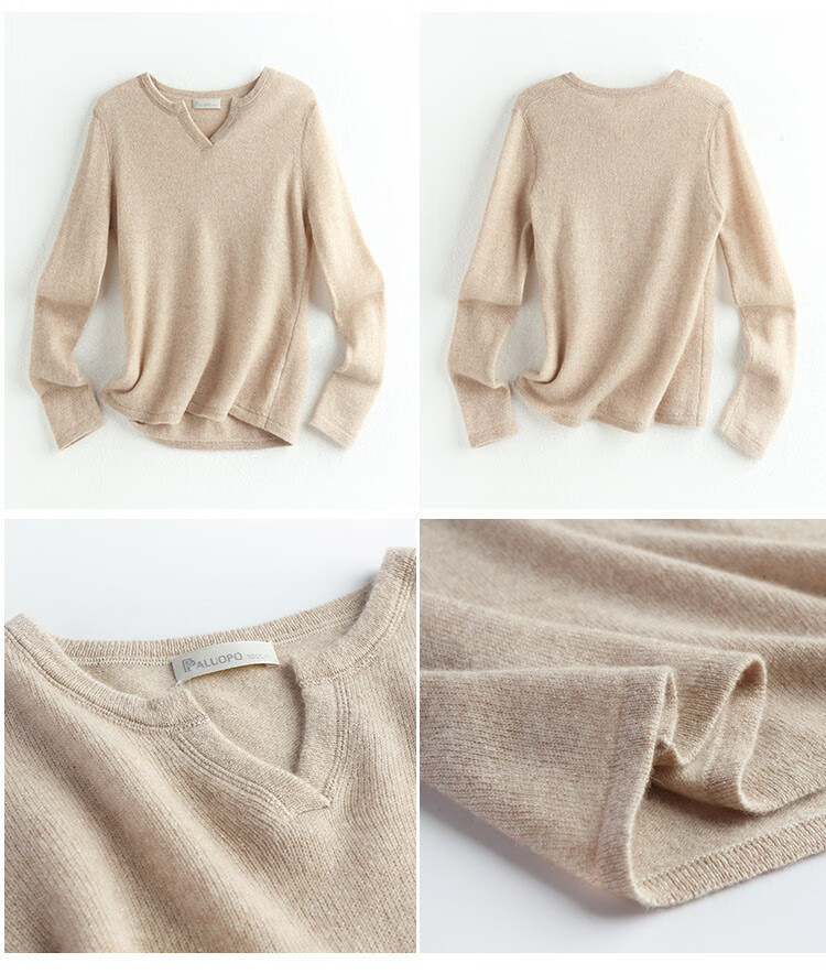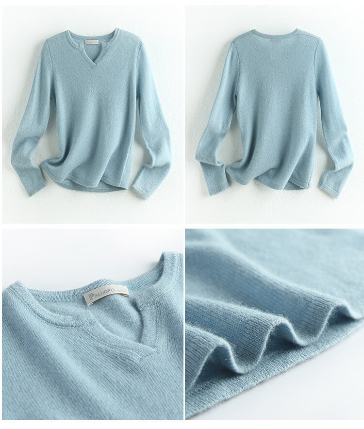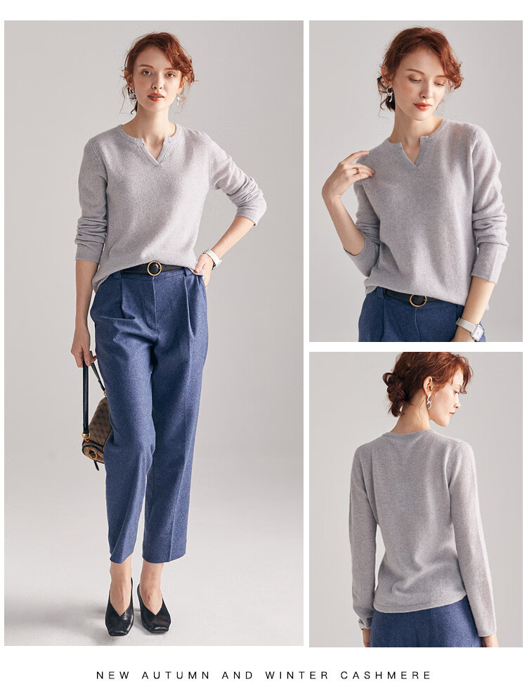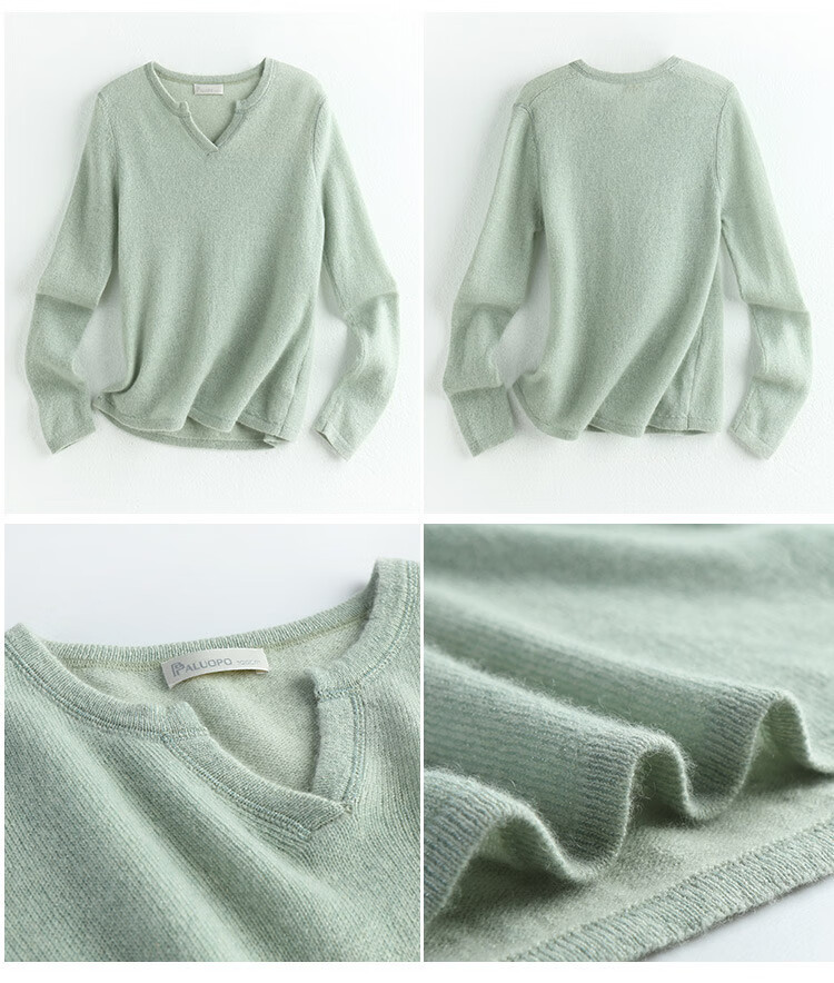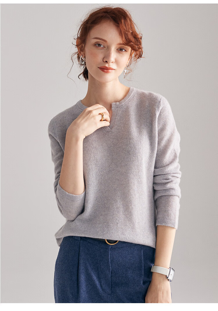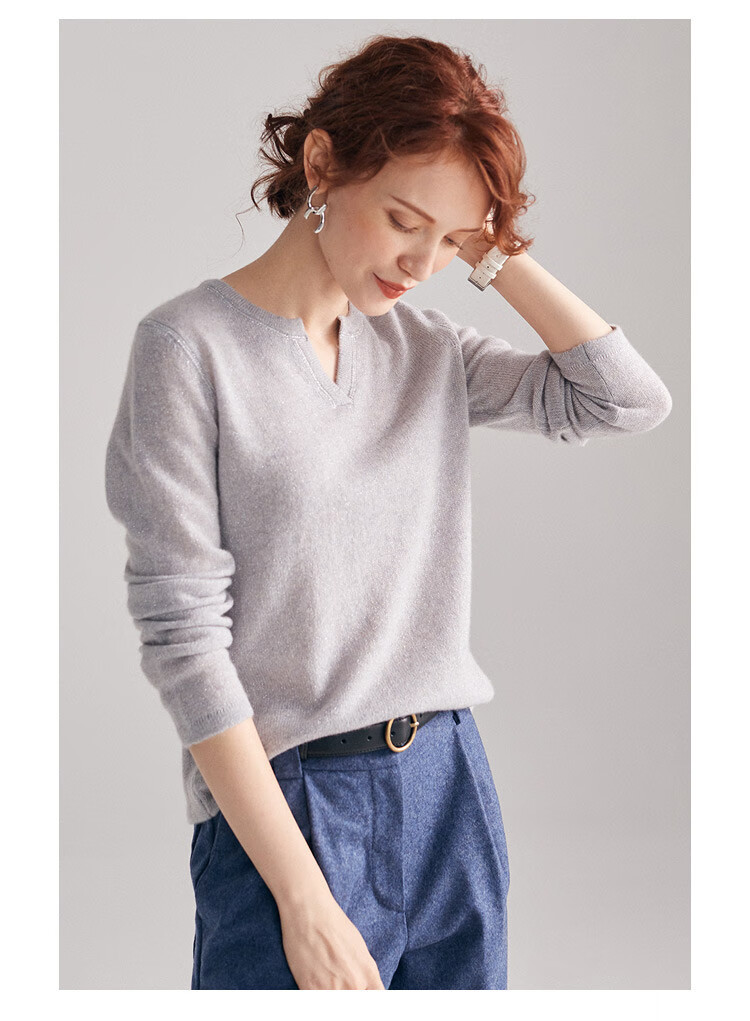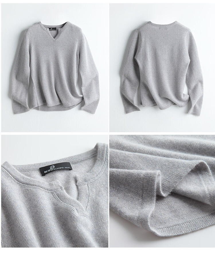 PALUOPO 2025 Exquisite Henry Collar Cashmere Sweater Women's Autumn and Winter Sweater Bottoming Sweater ET19156R White Gray M 160/100
