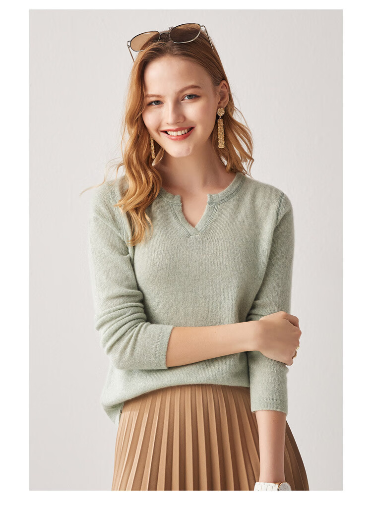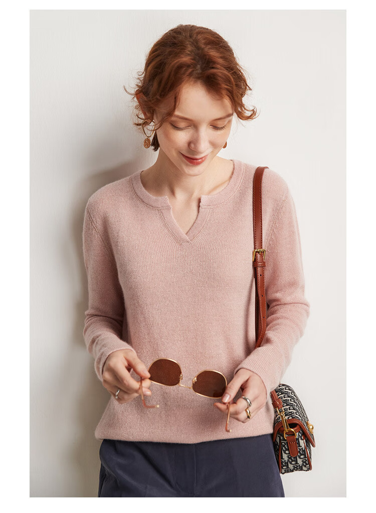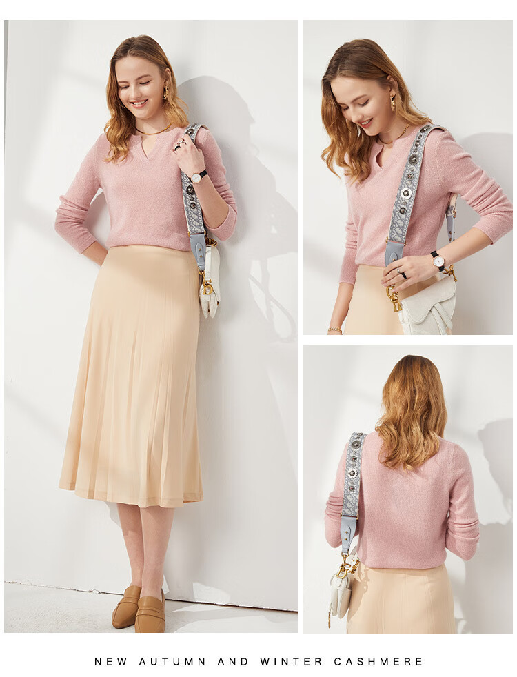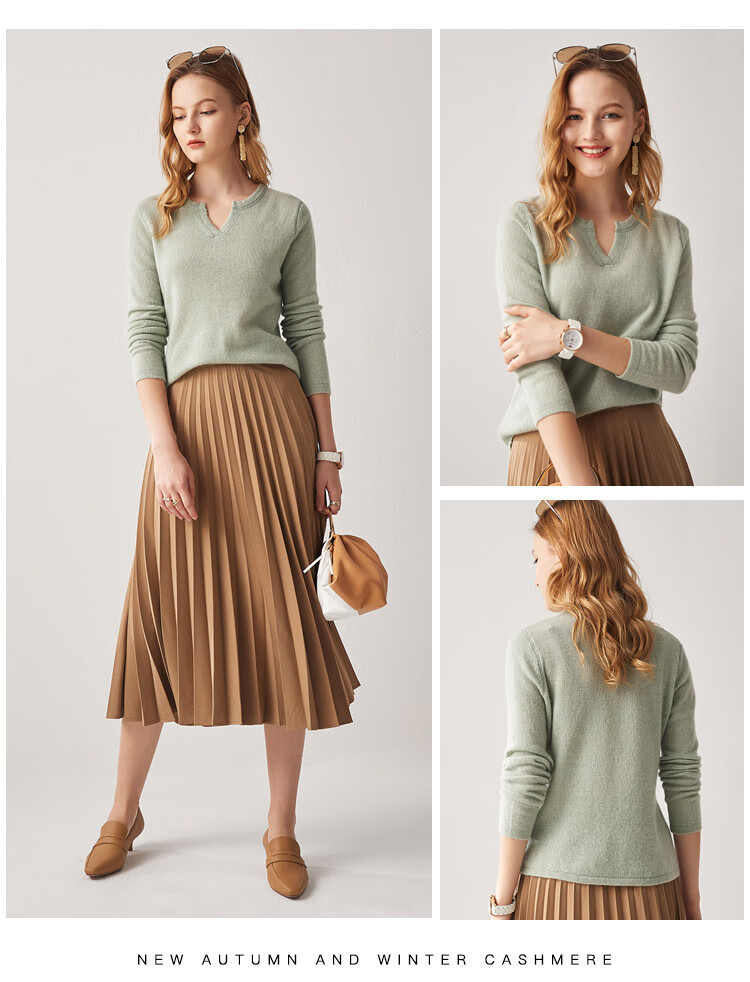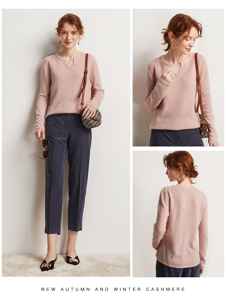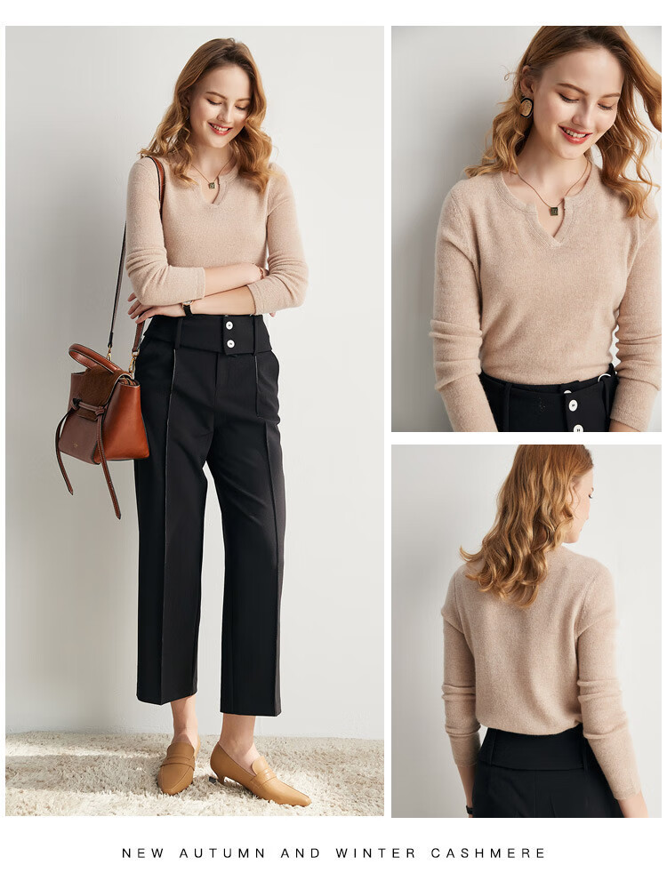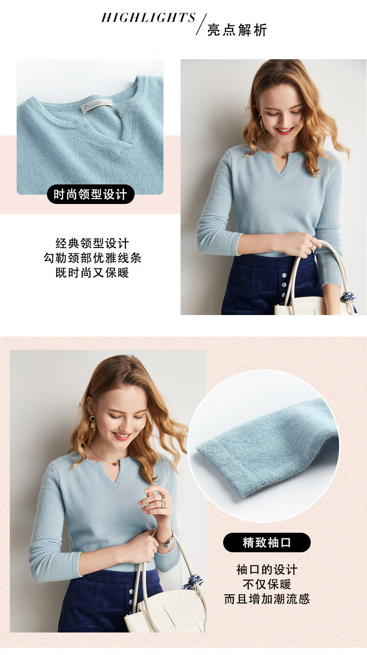 PALUOPO 2025 Exquisite Henry Collar Cashmere Sweater Women's Autumn and Winter Sweater Bottoming Sweater ET19156R White Gray M 160/100
