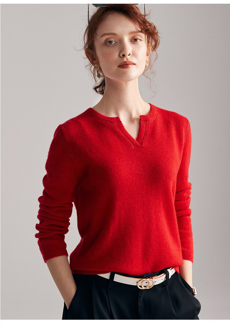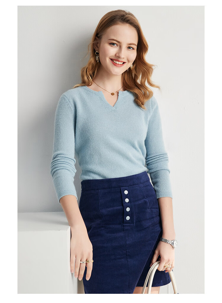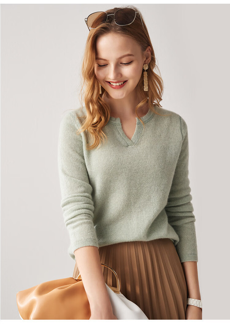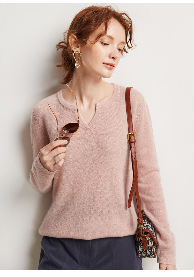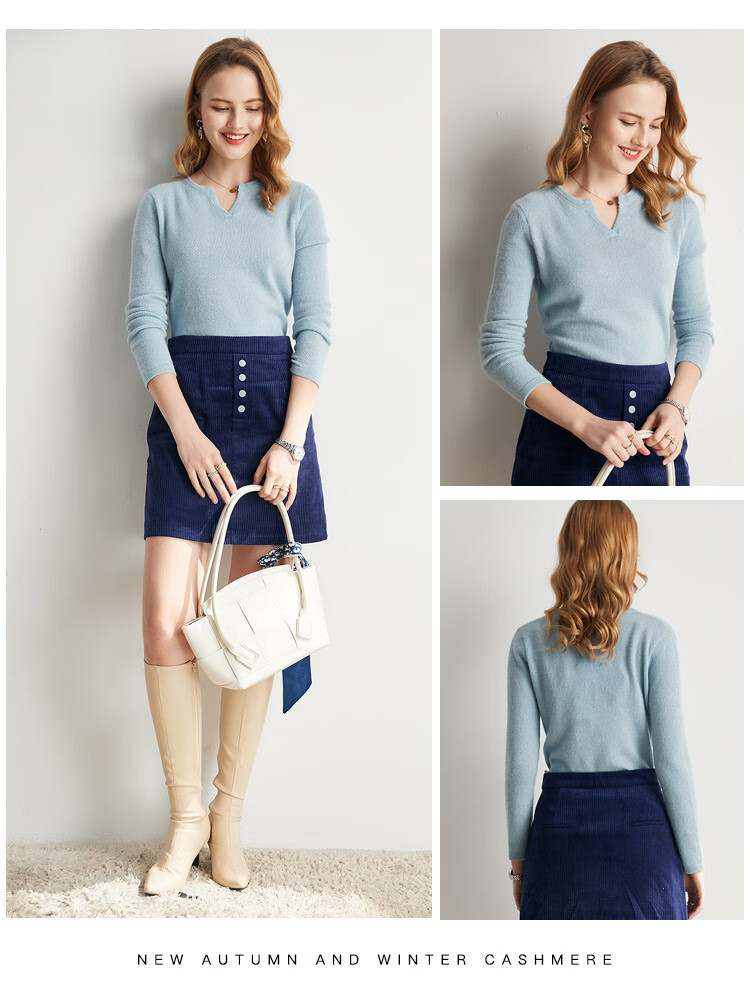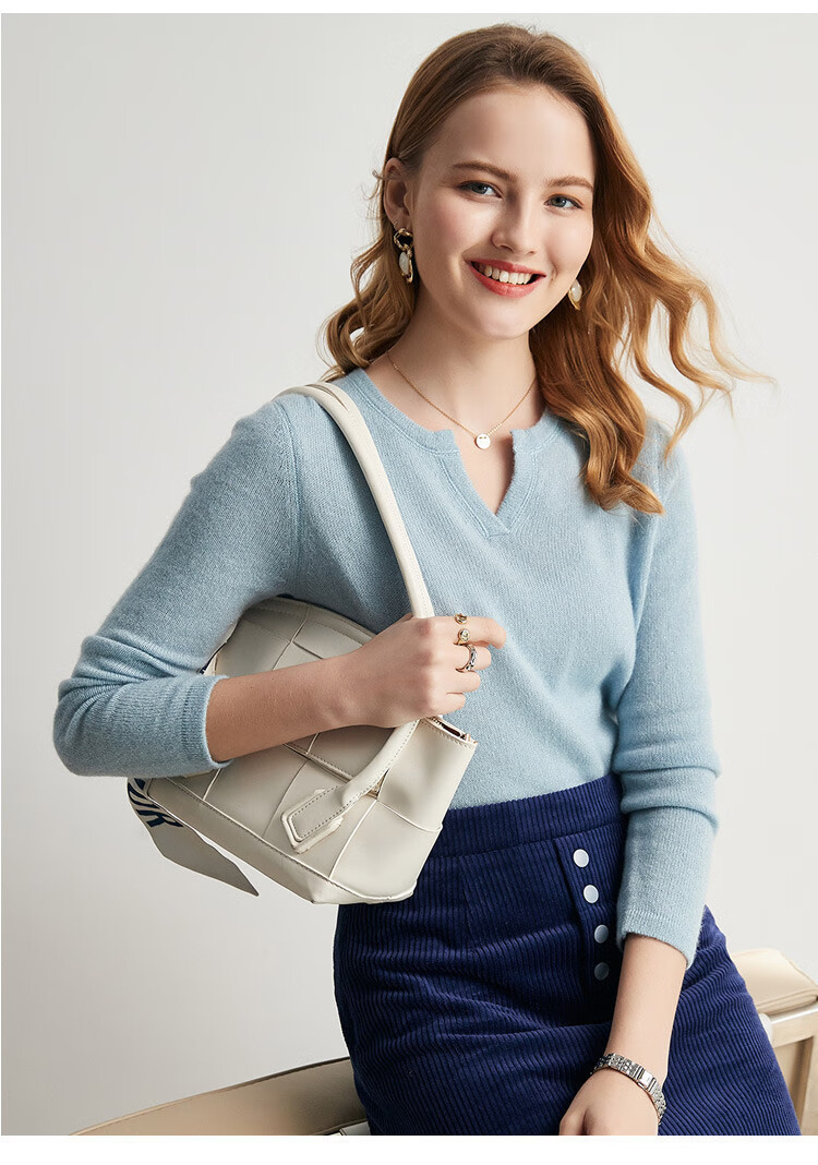 PALUOPO 2025 Exquisite Henry Collar Cashmere Sweater Women's Autumn and Winter Sweater Bottoming Sweater ET19156R White Gray M 160/100