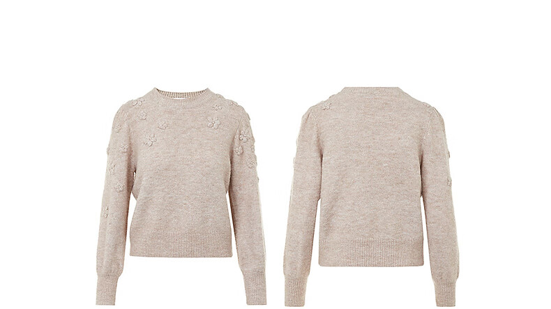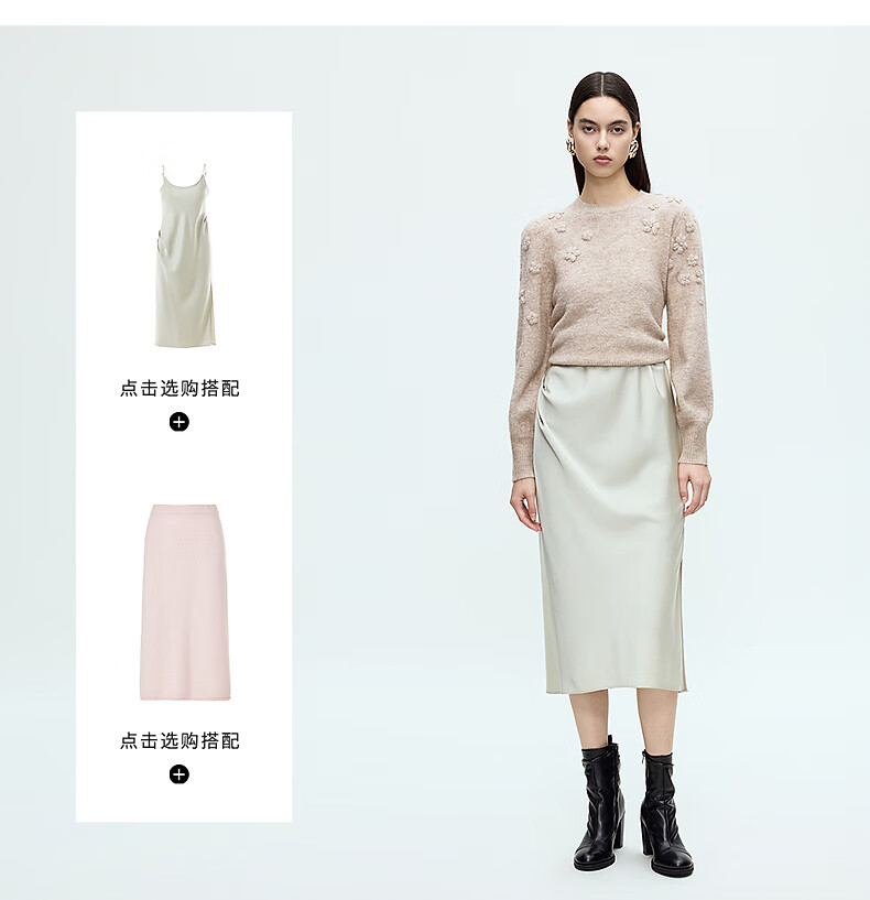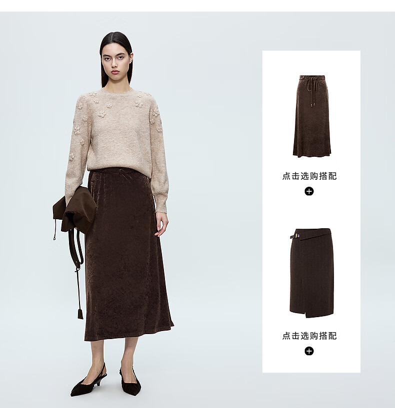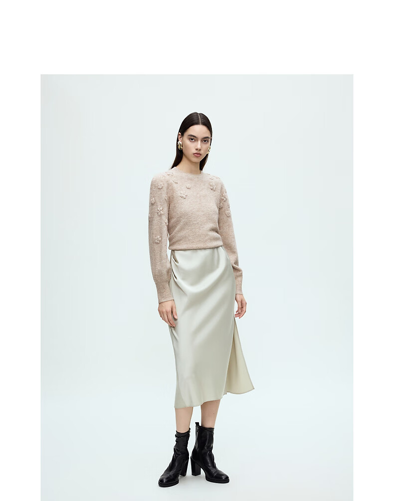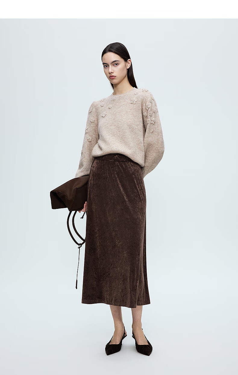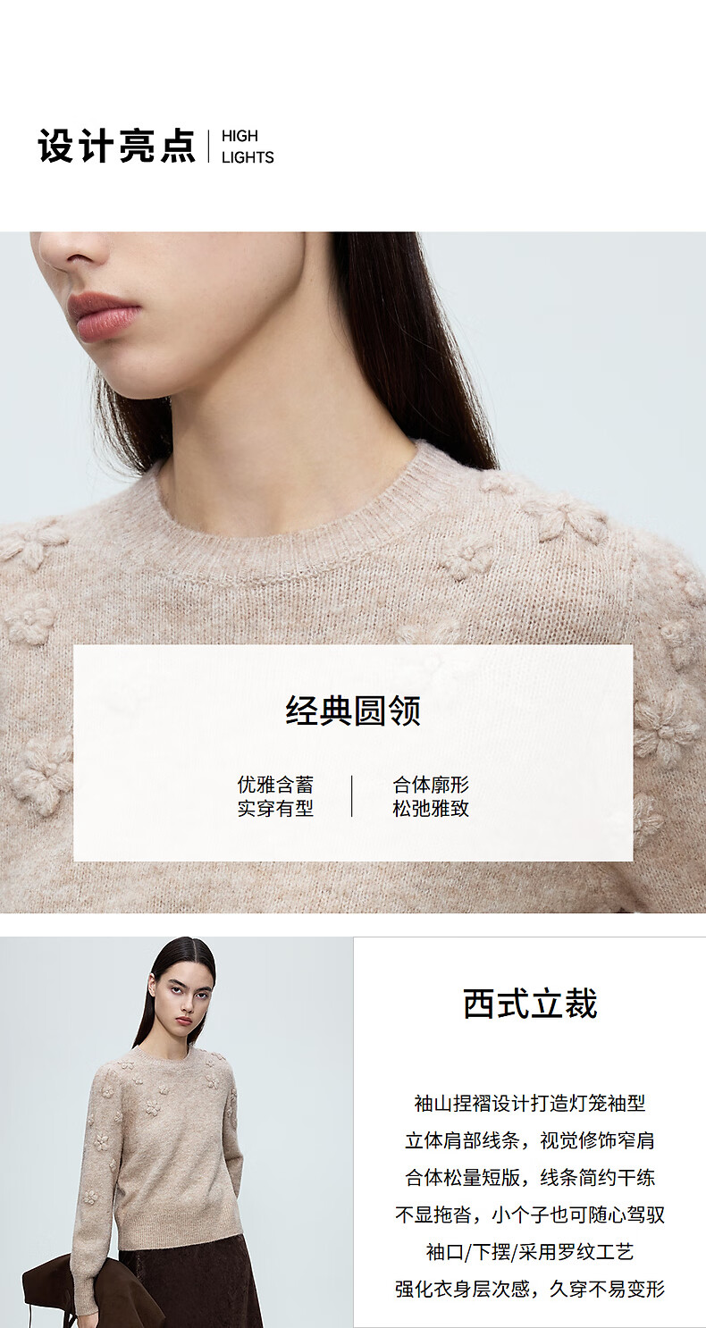 Langzi round neck French retro pullover sweater fashionable temperament commuter style sweater for women 2025 winter new style champagne beige S