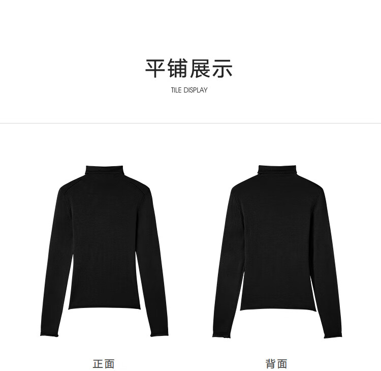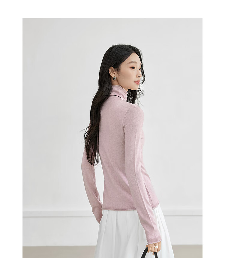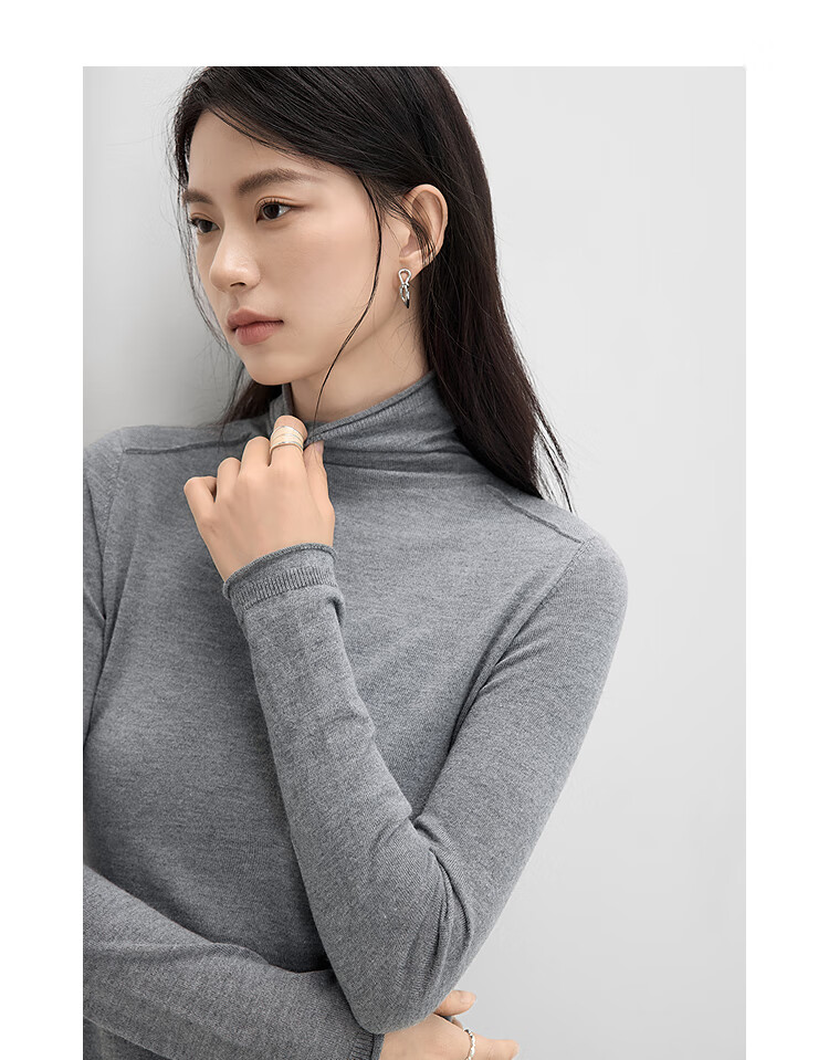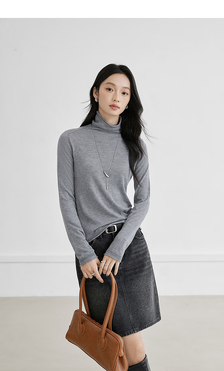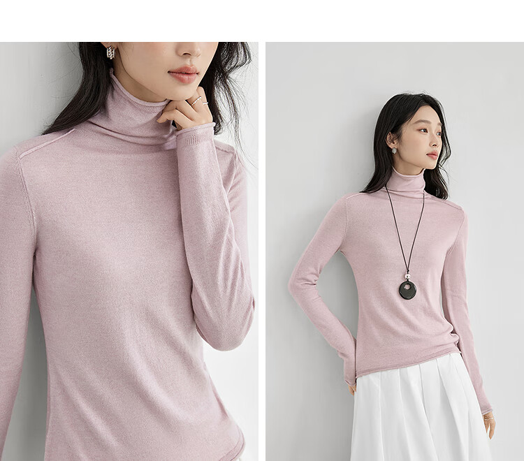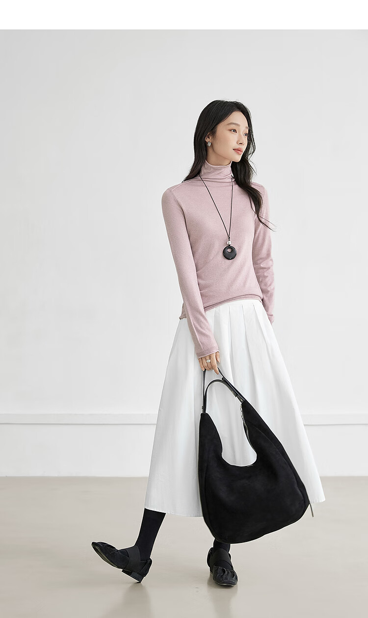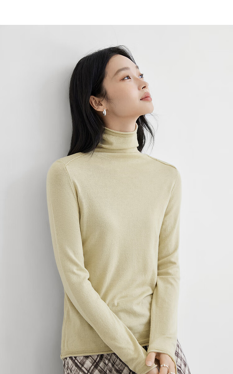 Dialogue (DUIBAI) cashmere + sheep wool solid color curled turtleneck sweater for women 2025 winter new knitted bottoming shirt, quiet black S