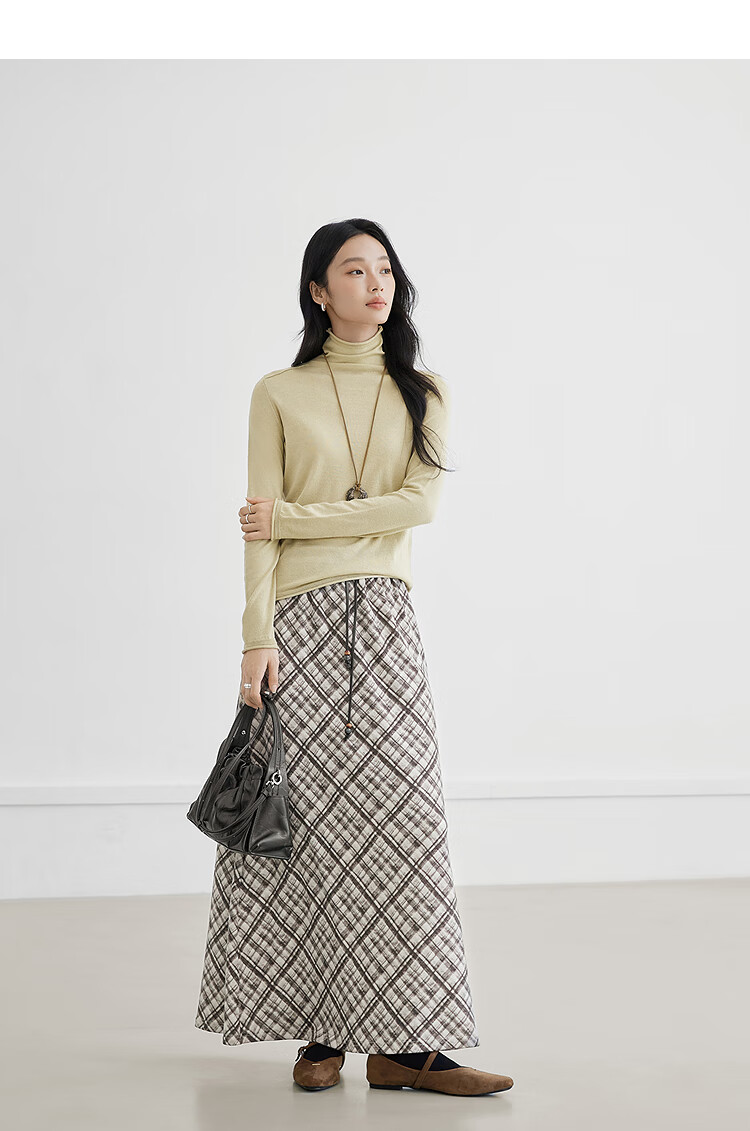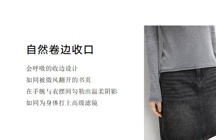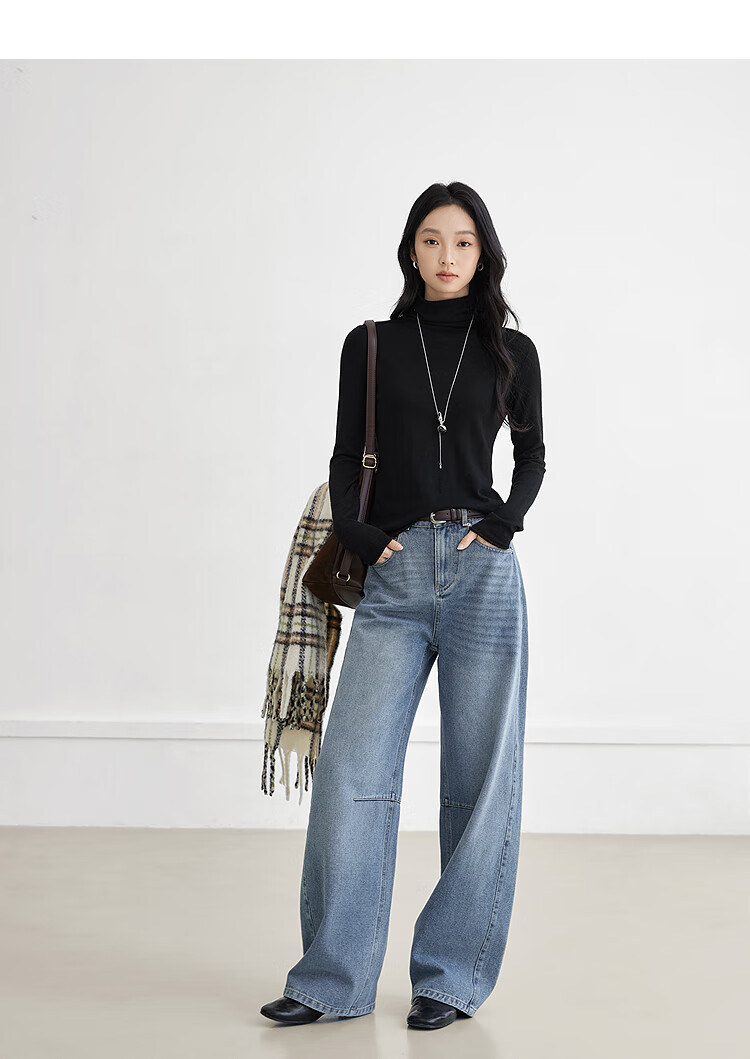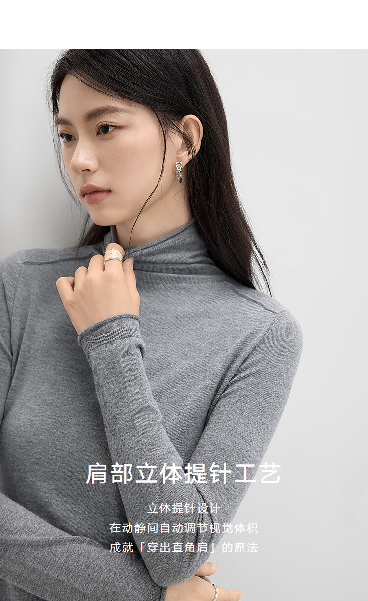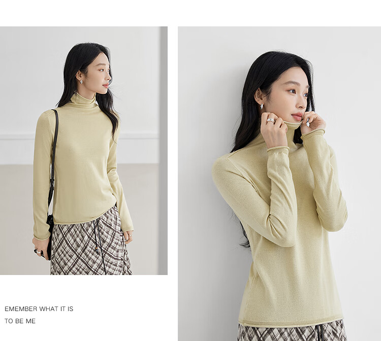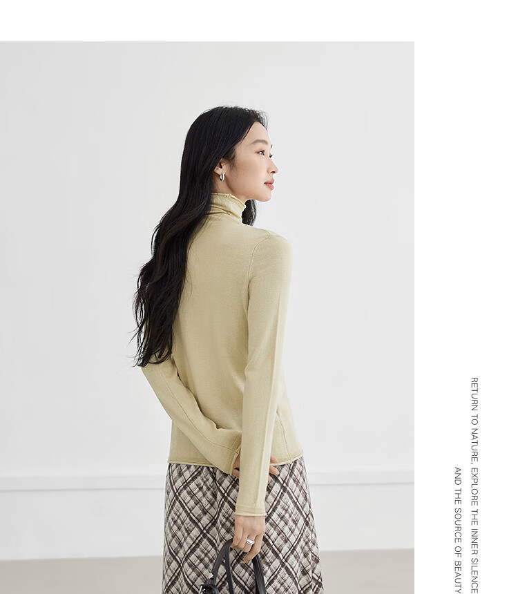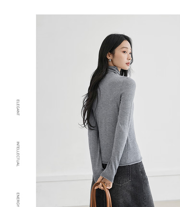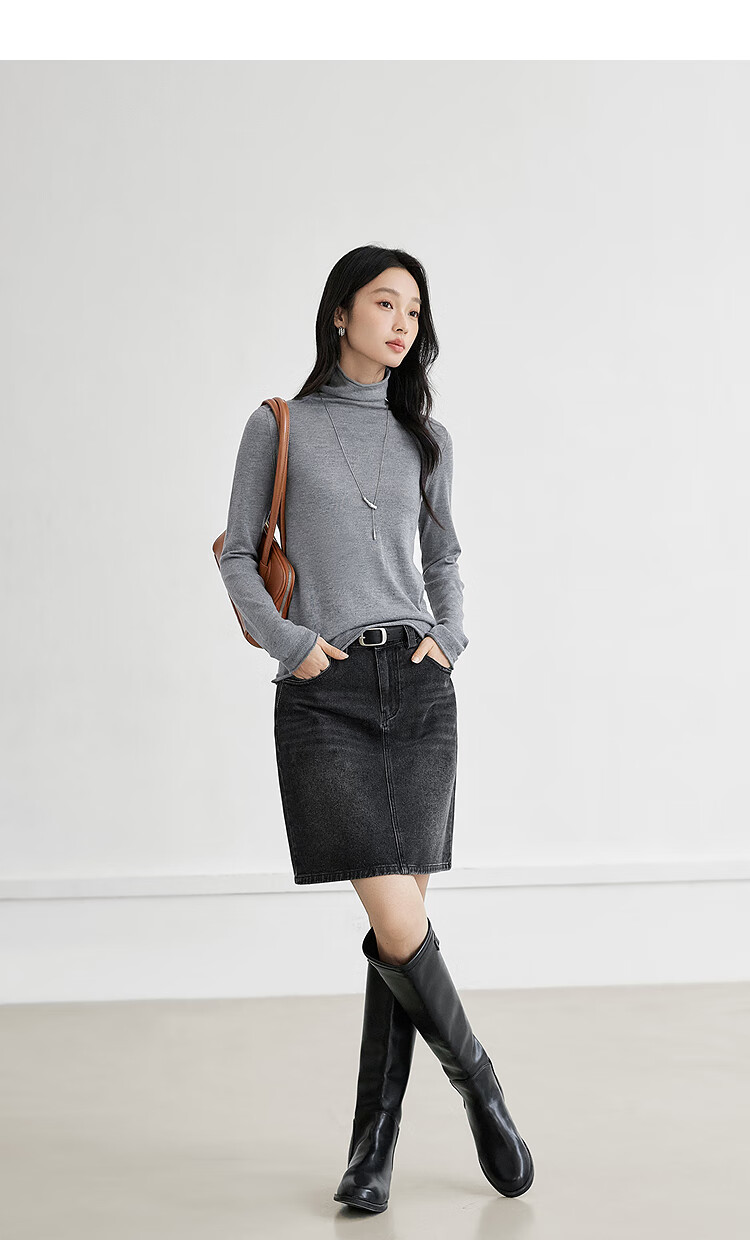 Dialogue (DUIBAI) cashmere + sheep wool solid color curled turtleneck sweater for women 2025 winter new knitted bottoming shirt, quiet black S
