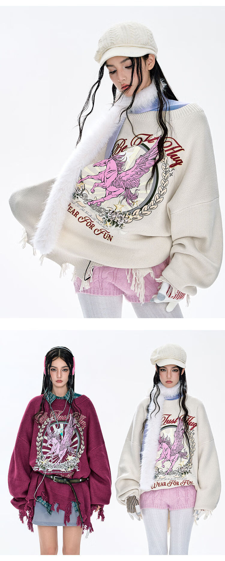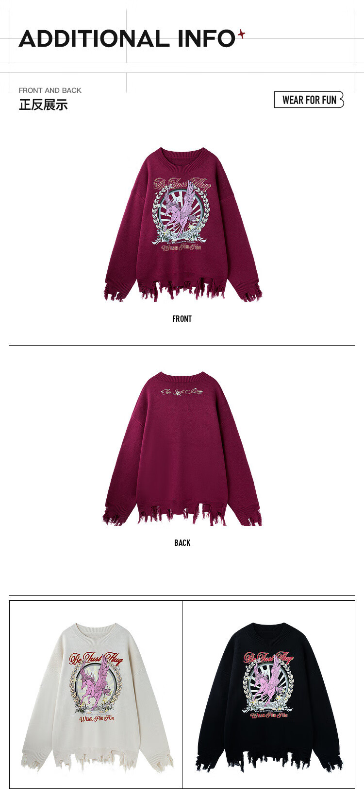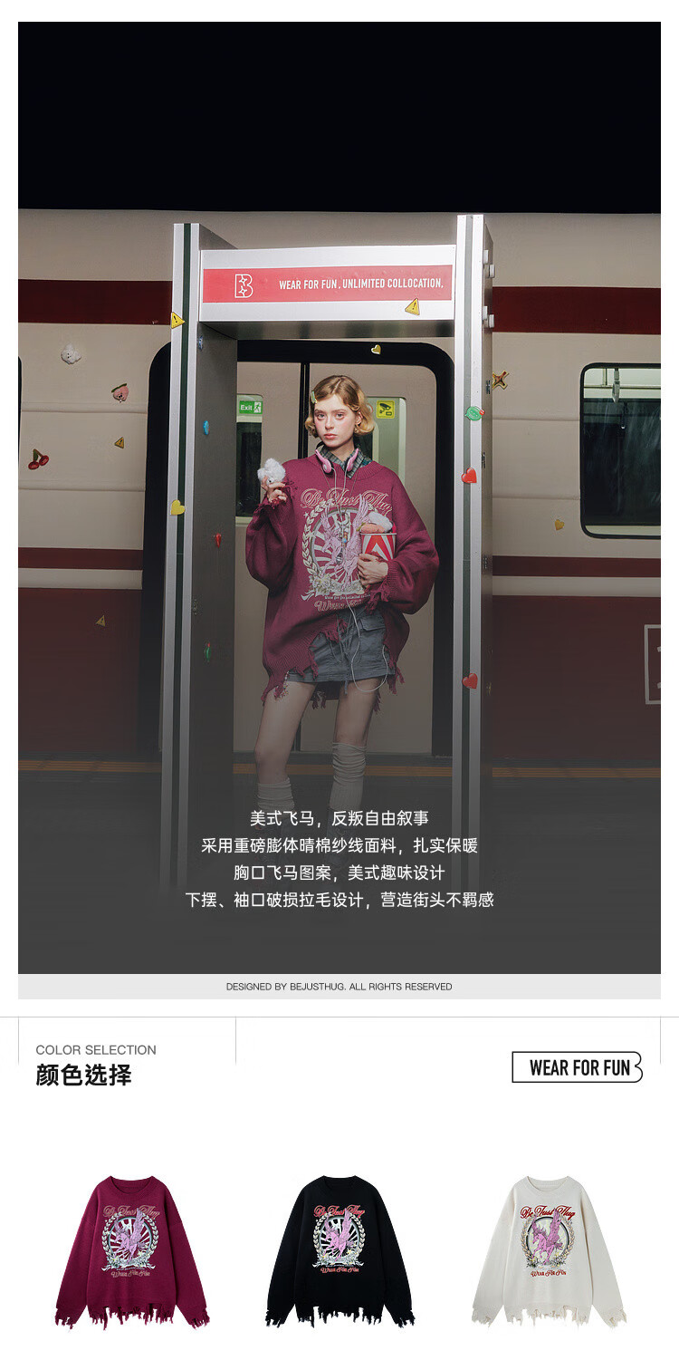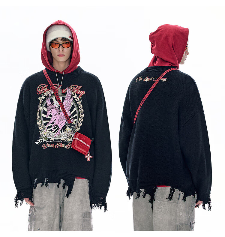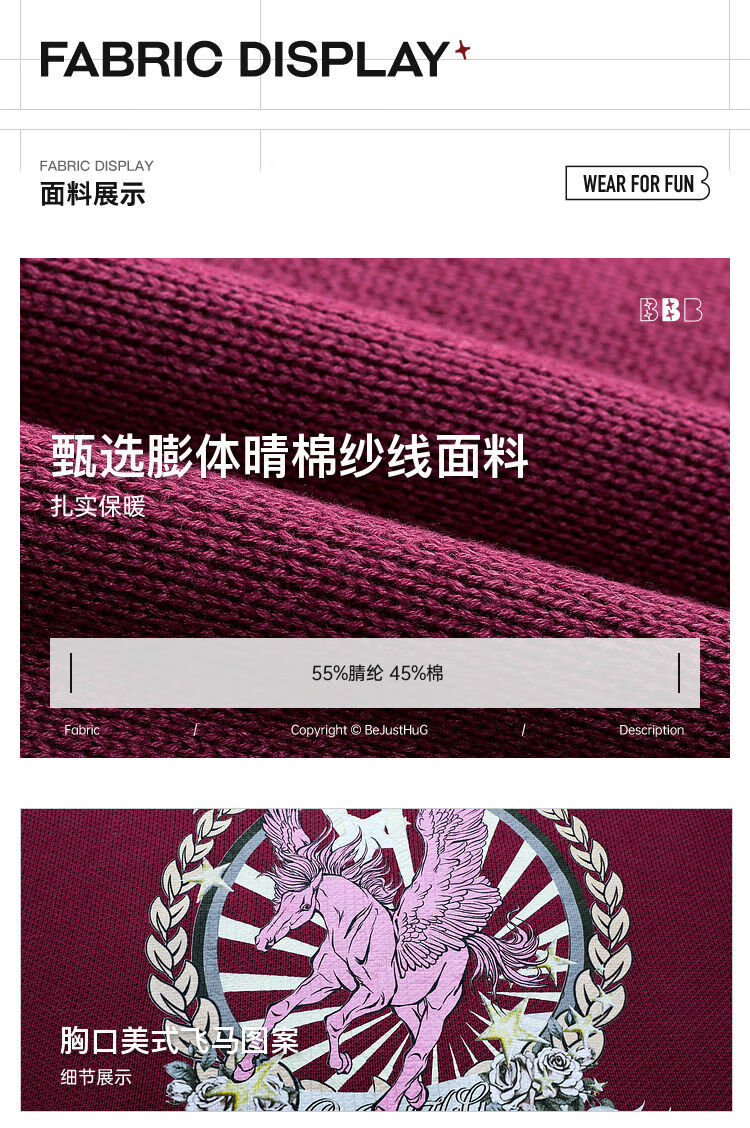 BJHG Reckless Printed Couple Sweater Women's Autumn and Winter 2025 New Heavy Fashion Brand Retro Round Neck Sweater Men's Zhu Ranhong M
