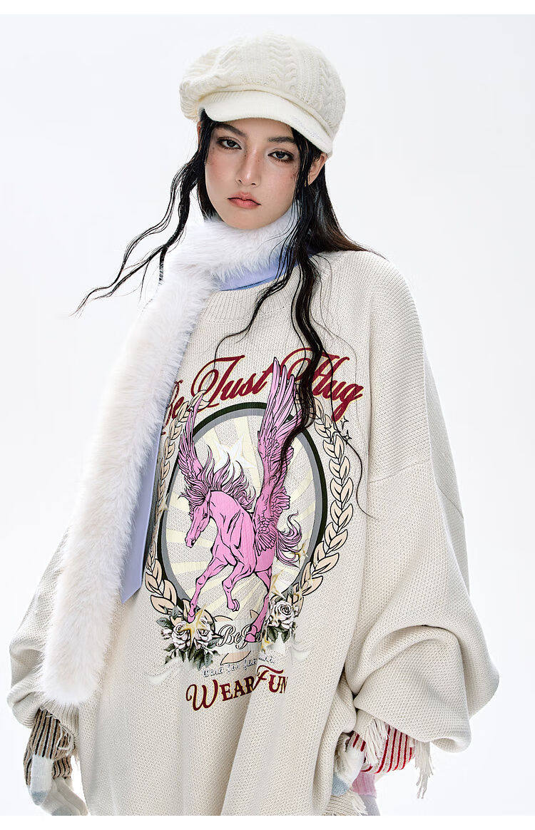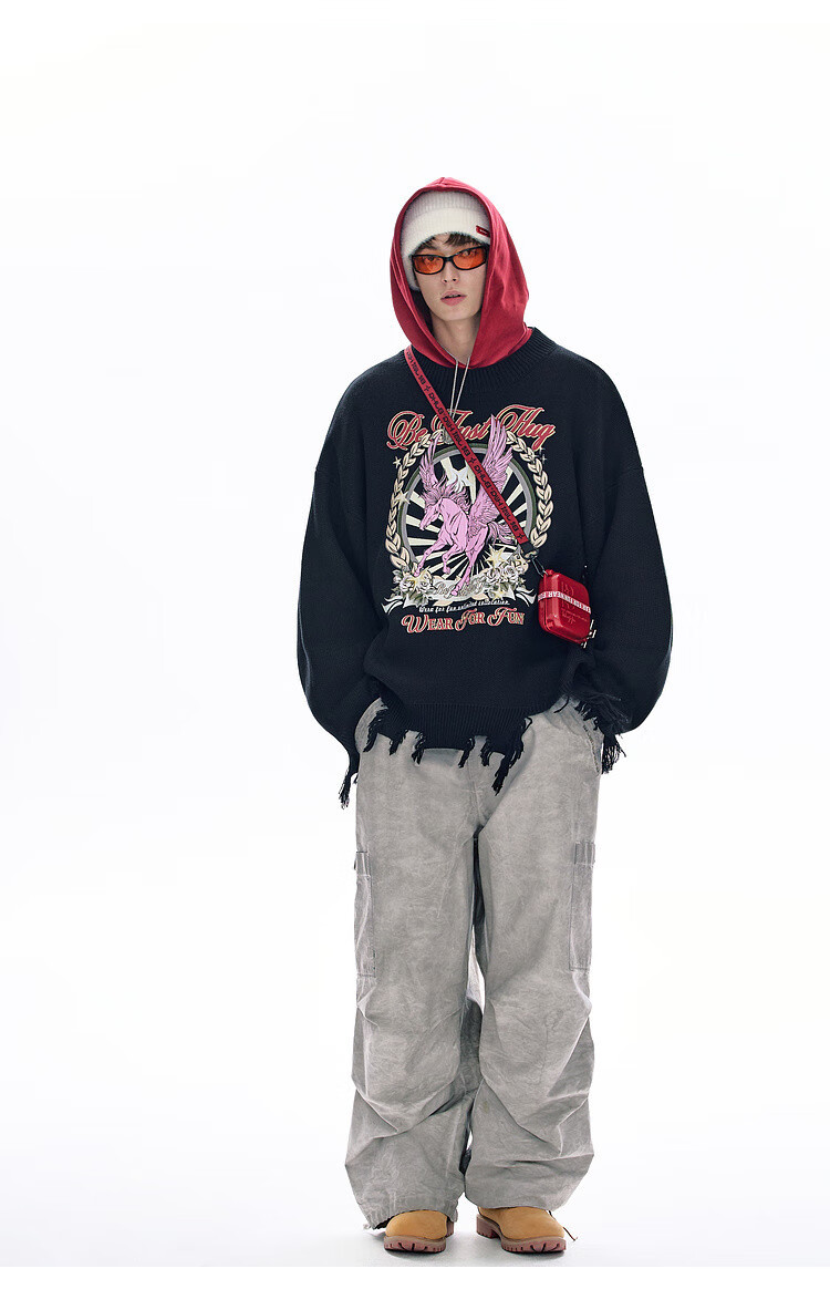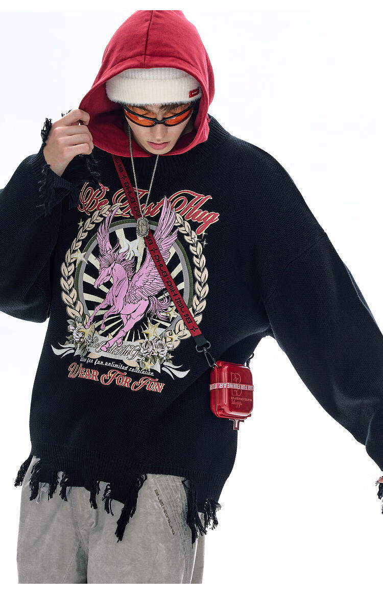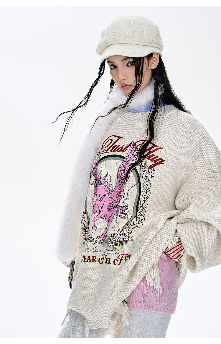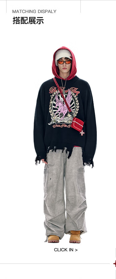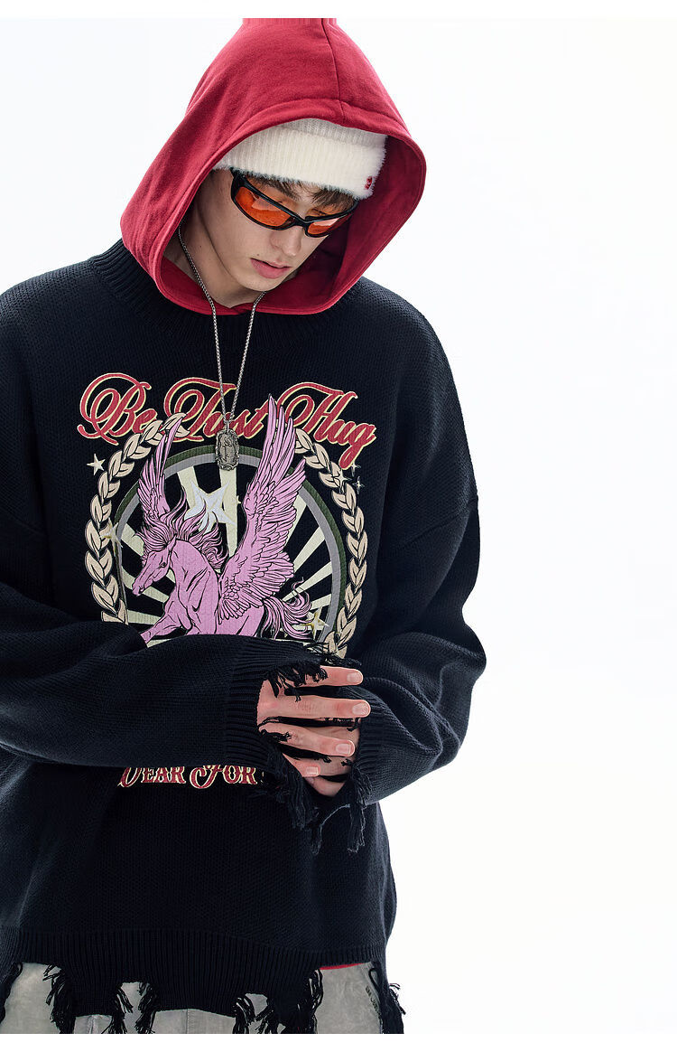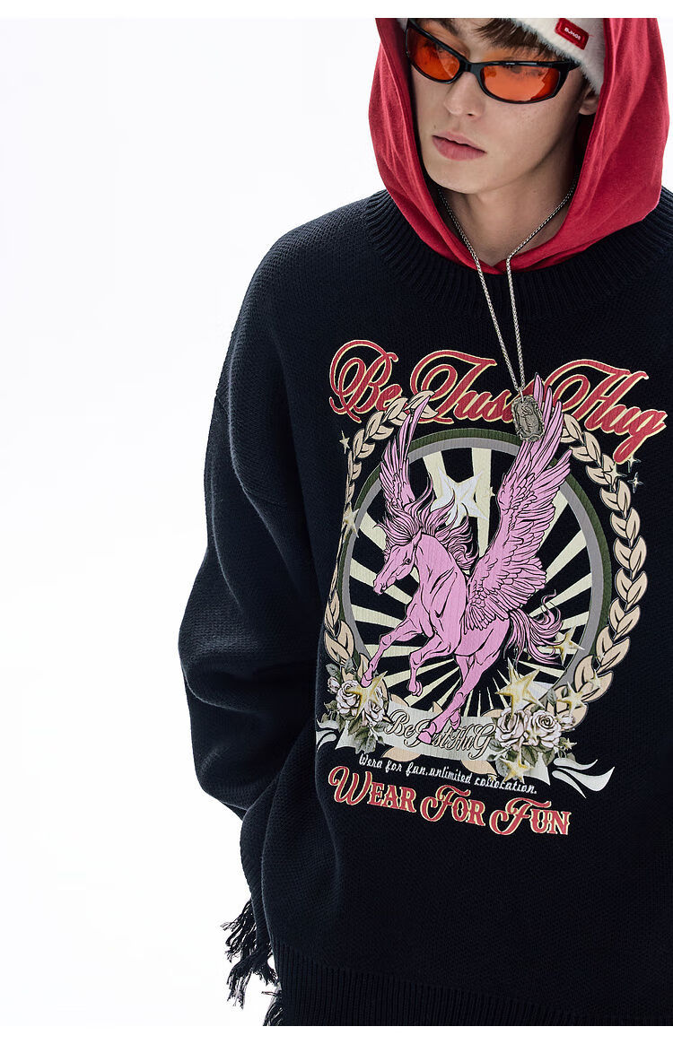 BJHG Reckless Printed Couple Sweater Women's Autumn and Winter 2025 New Heavy Fashion Brand Retro Round Neck Sweater Men's Zhu Ranhong M