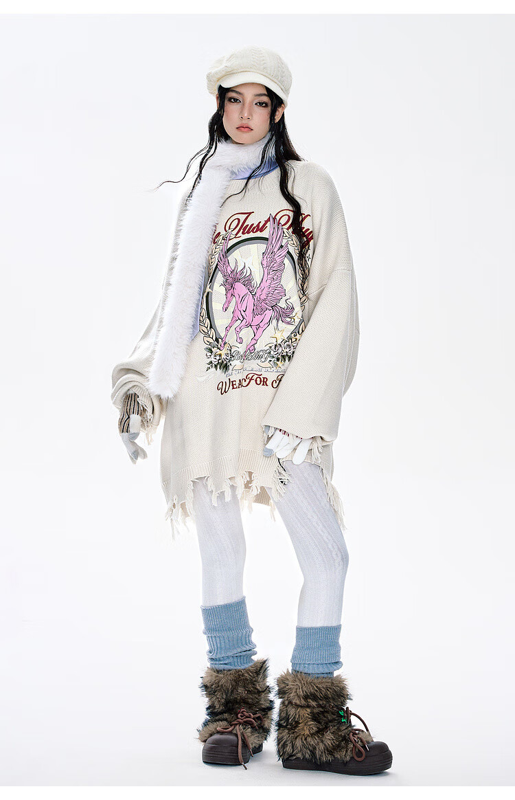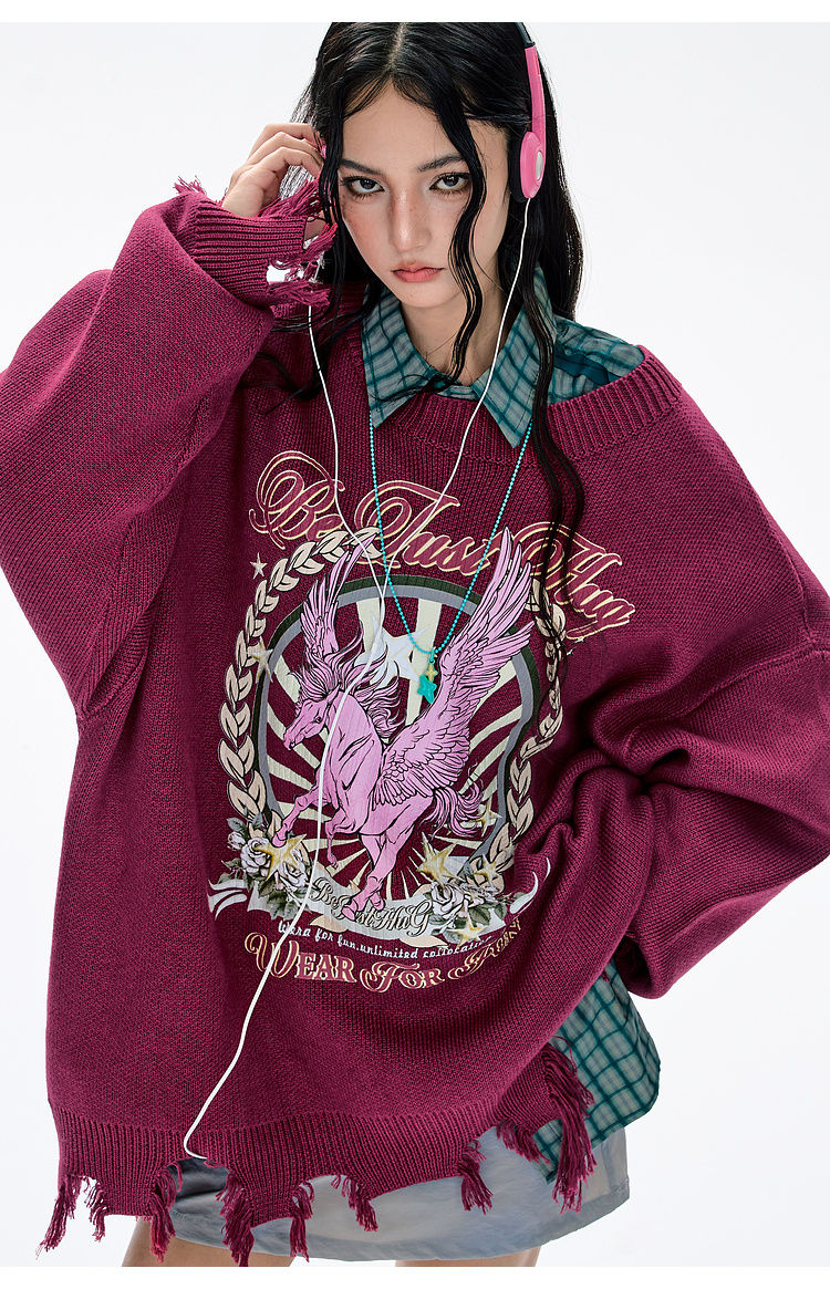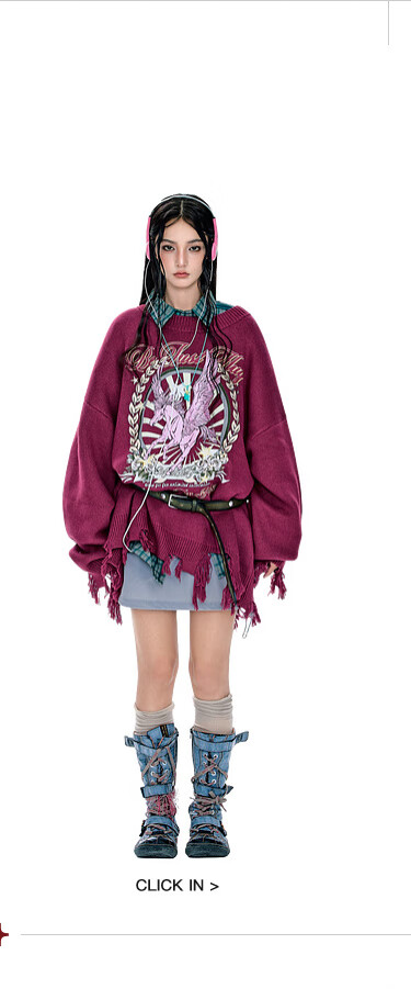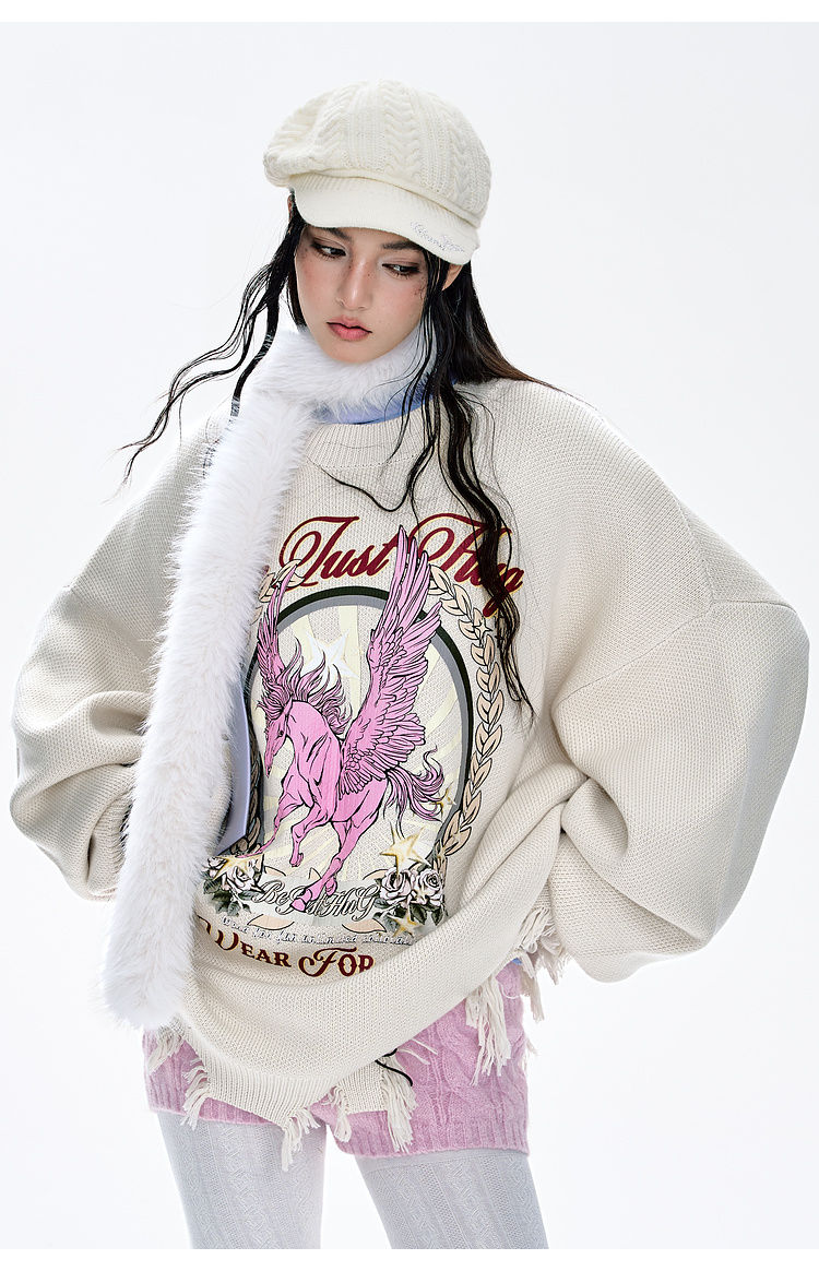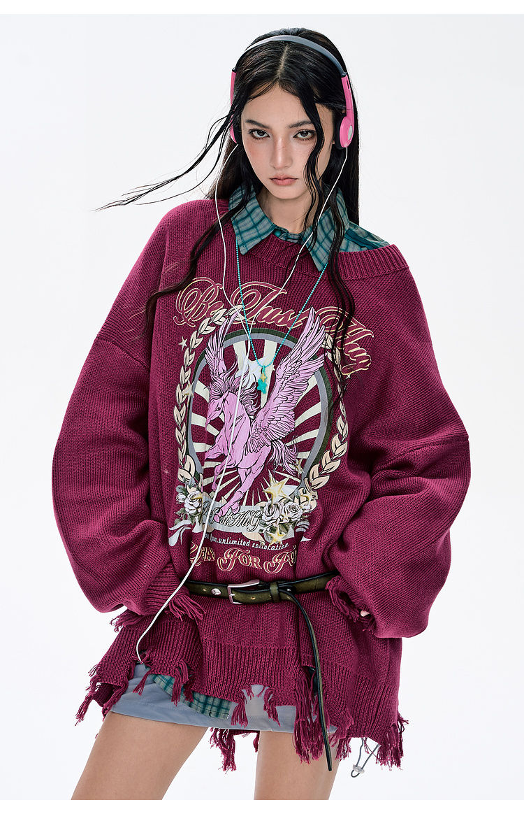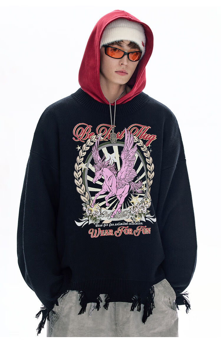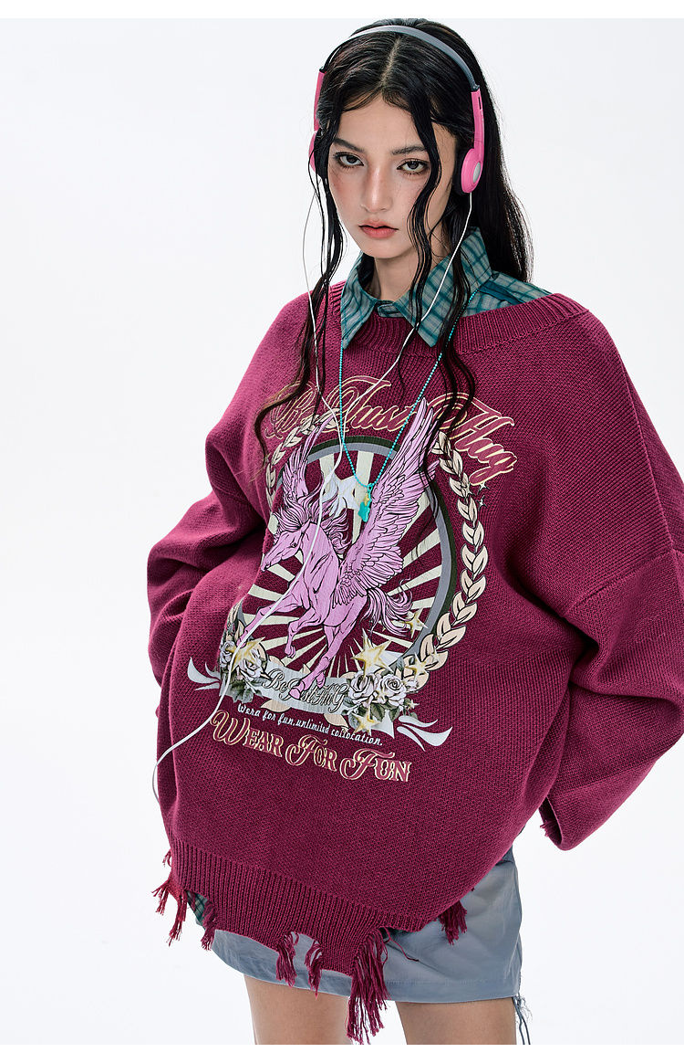 BJHG Reckless Printed Couple Sweater Women's Autumn and Winter 2025 New Heavy Fashion Brand Retro Round Neck Sweater Men's Zhu Ranhong M