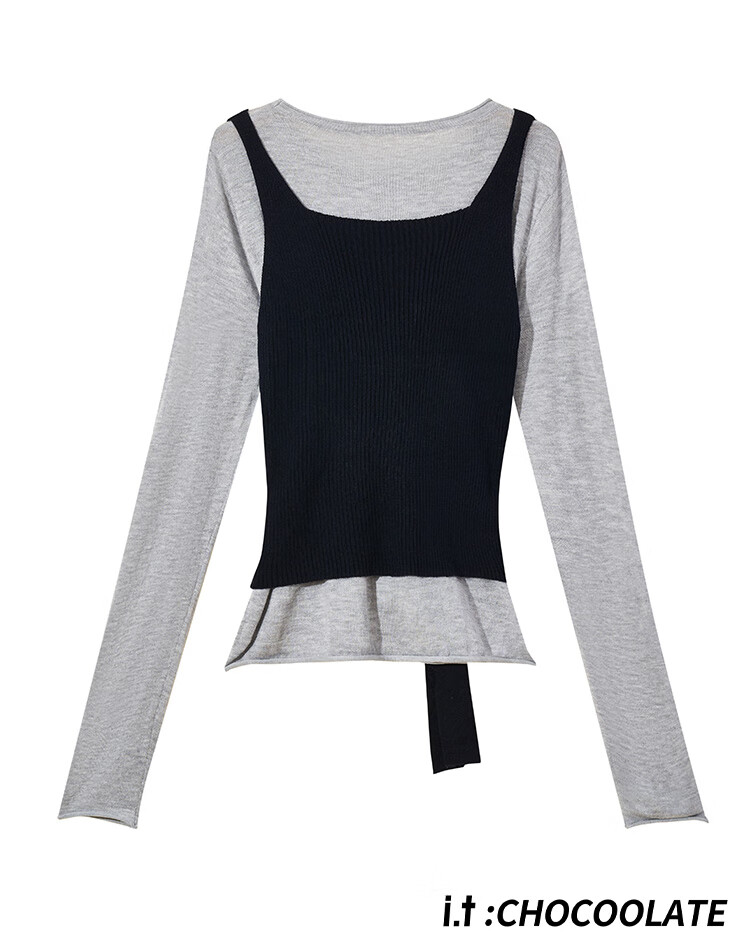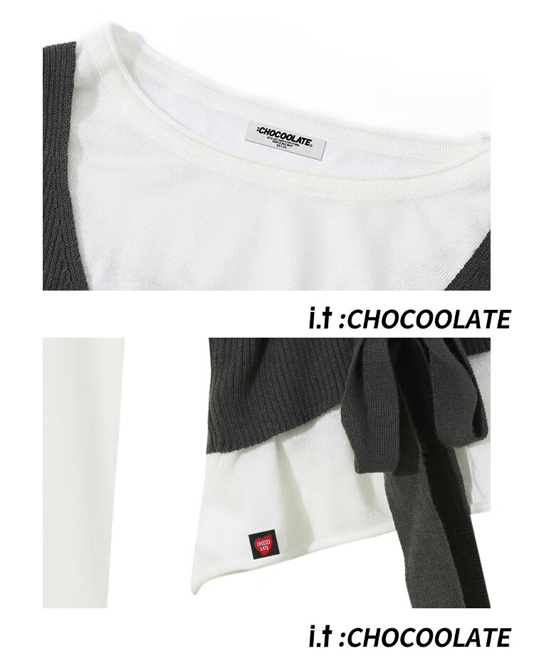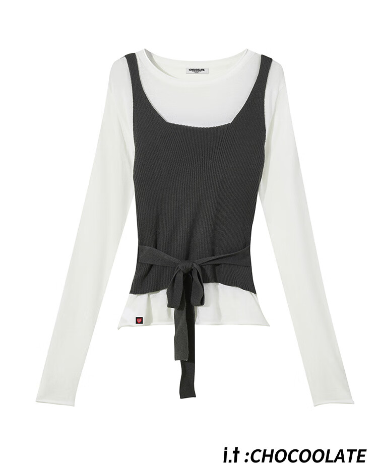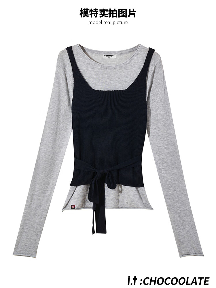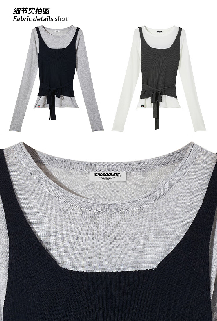 CHOCOOLATE it women's pure cotton sweater women's design knitted two-piece set for women 2025 autumn and winter strap waist chic top beige color two-piece set one size