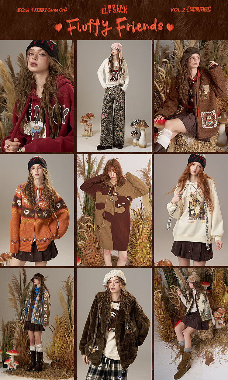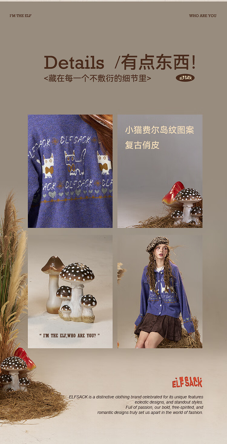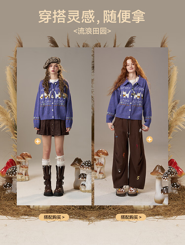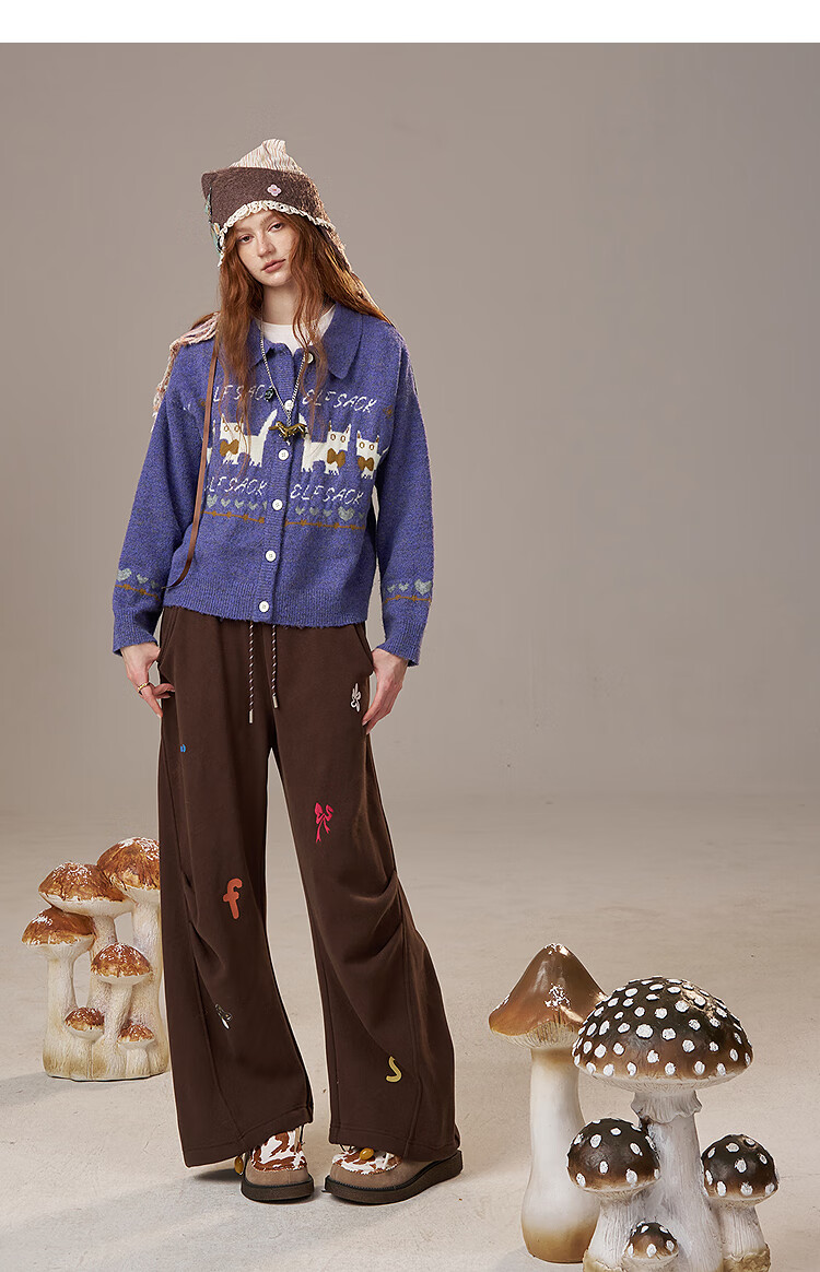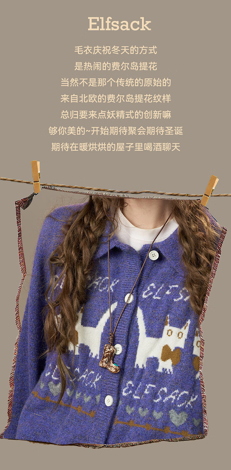 Leprechaun's Pocket Kitty Fair Isle Jacquard Cardigan Sweater Women's 2025 Autumn and Winter New Retro Lapel Mohair Retro Purple L