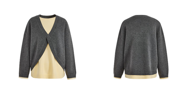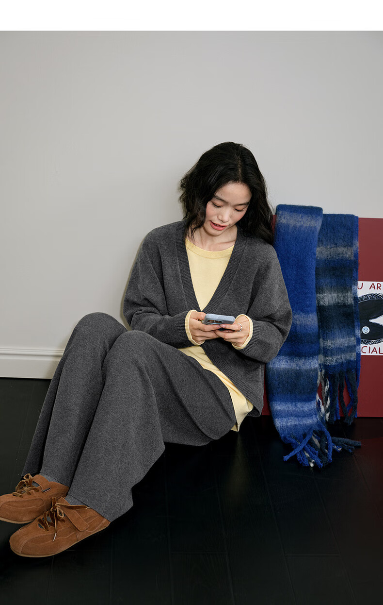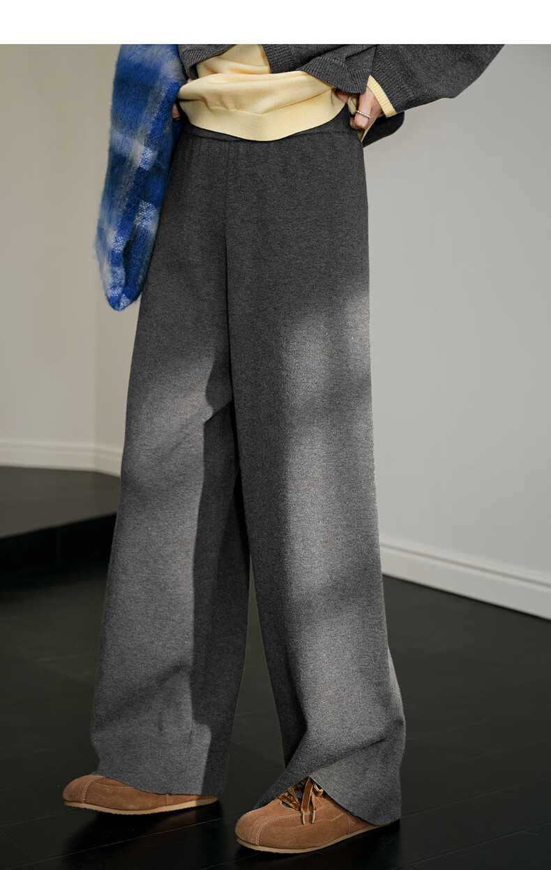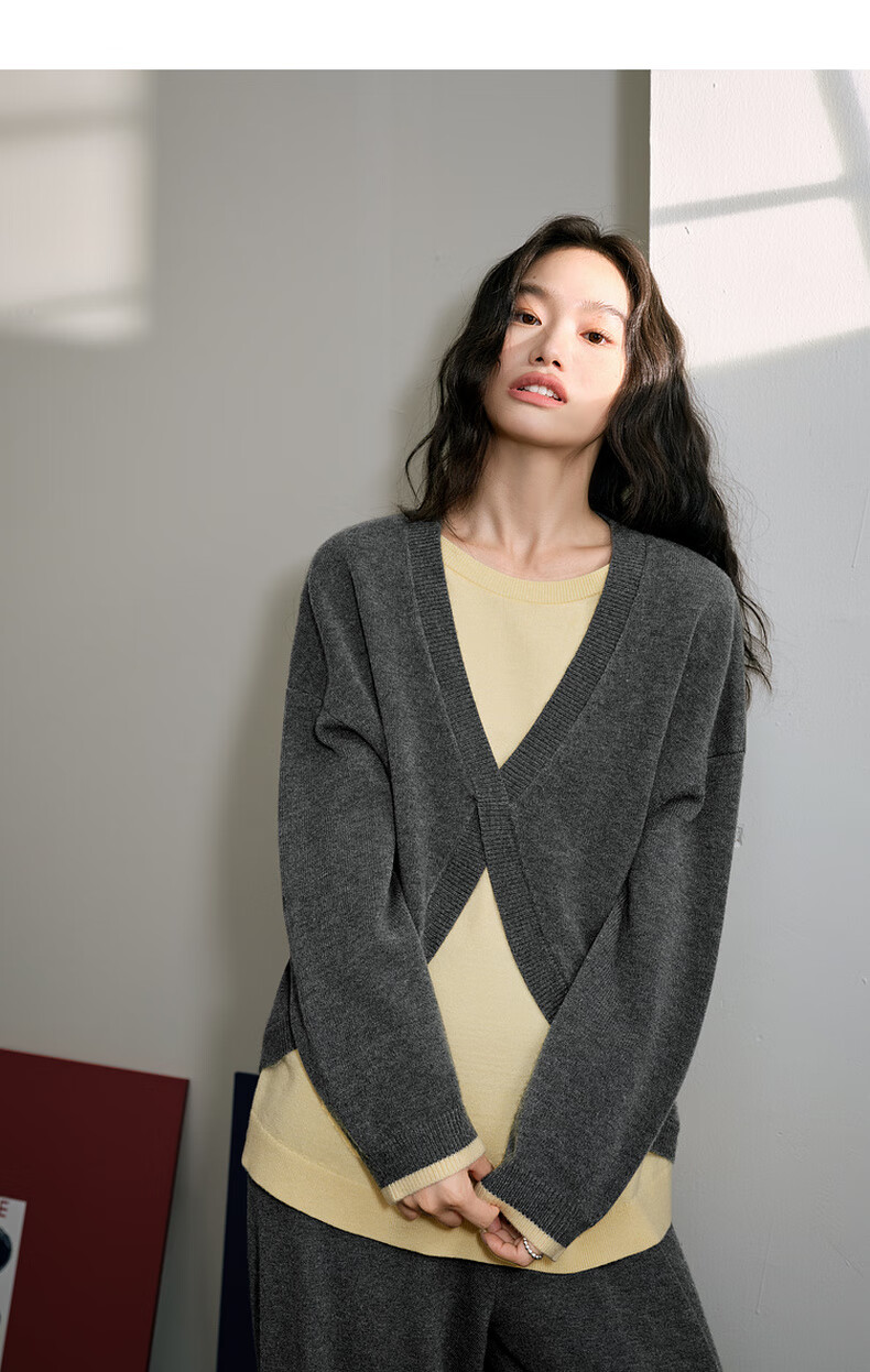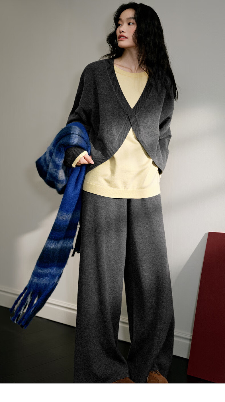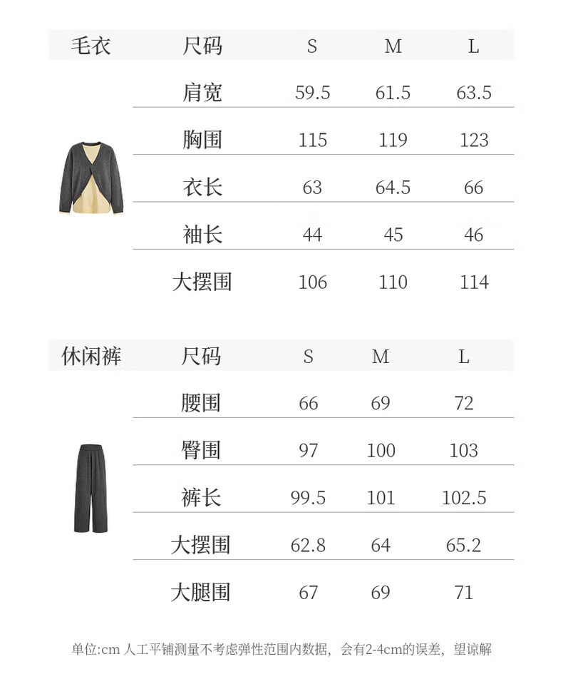 Wide color fake two piece sweater casual pants two piece suit 2025 autumn and winter new women's top sweater long pants gray sweater 0048 S
