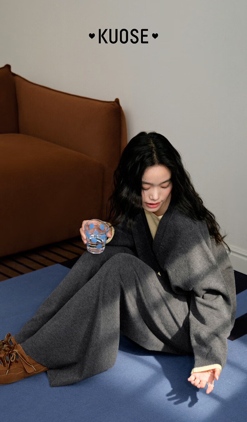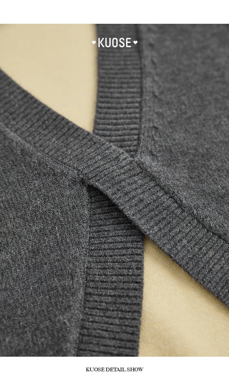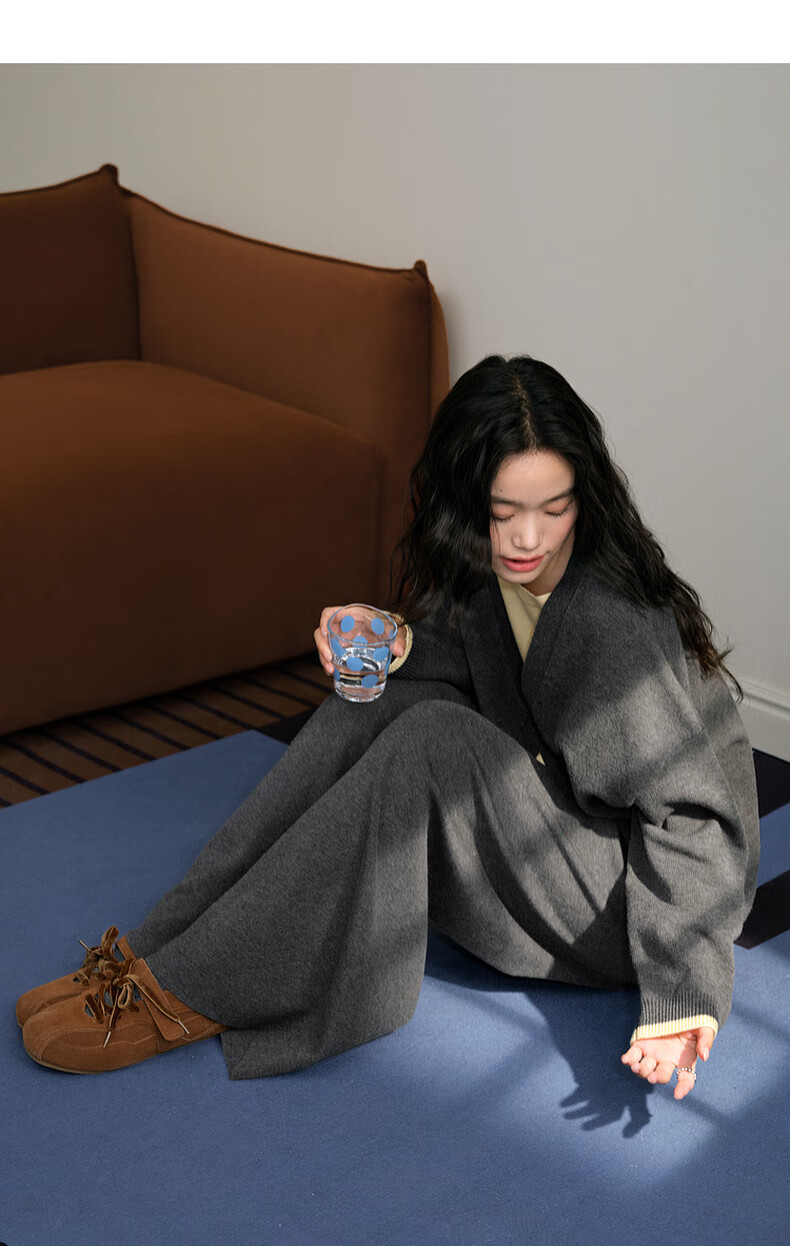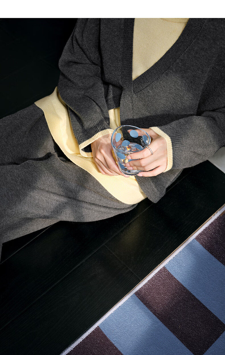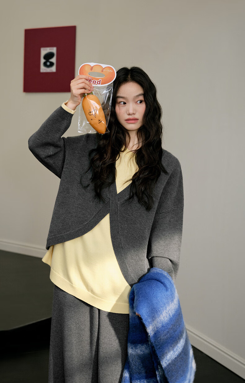 Wide color fake two piece sweater casual pants two piece suit 2025 autumn and winter new women's top sweater long pants gray sweater 0048 S