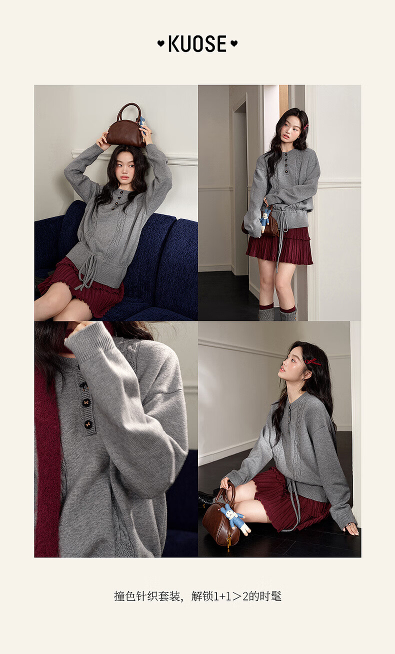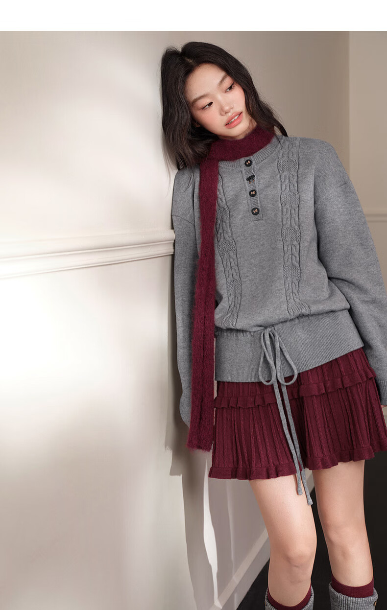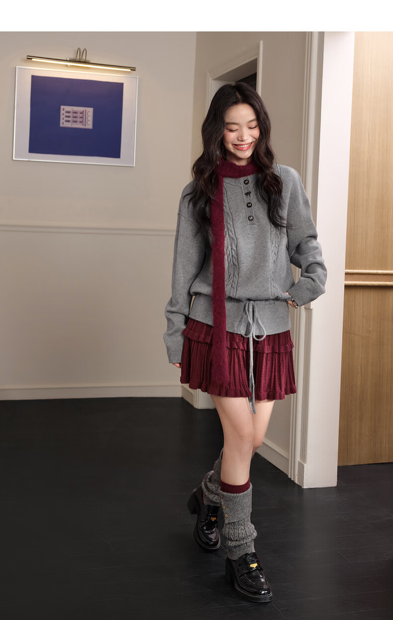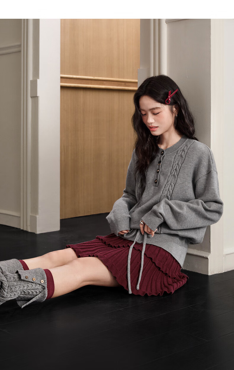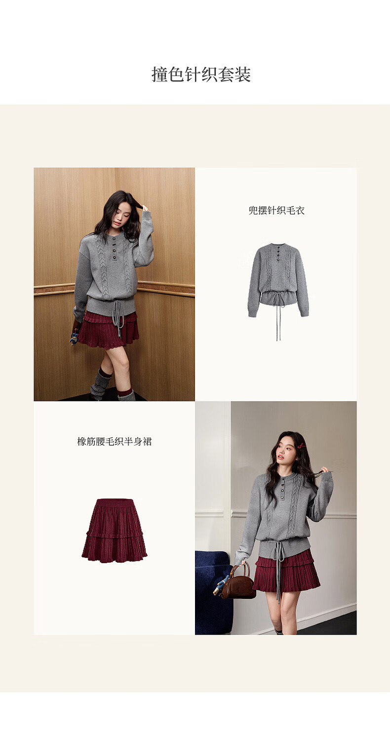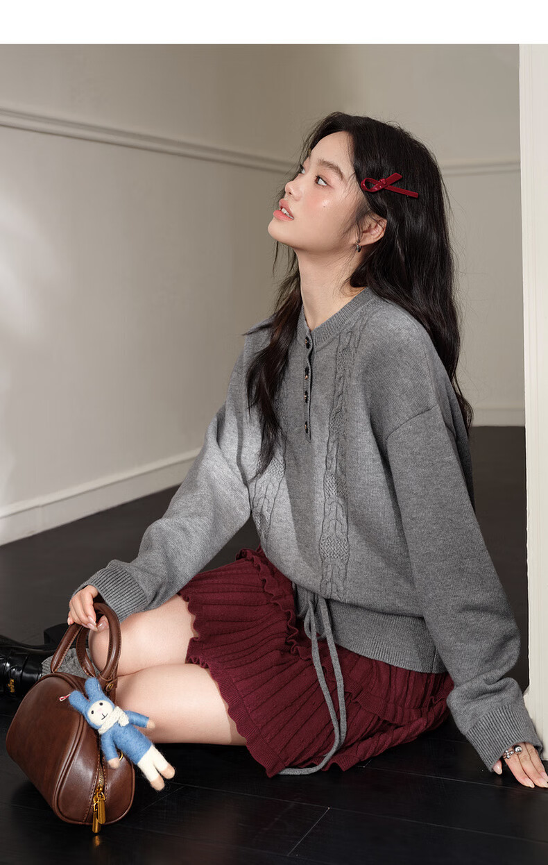 Wide color temperament sweater and skirt two-piece suit new 25 autumn and winter wear women's sweater short skirt gray red gray sweater 0042 S