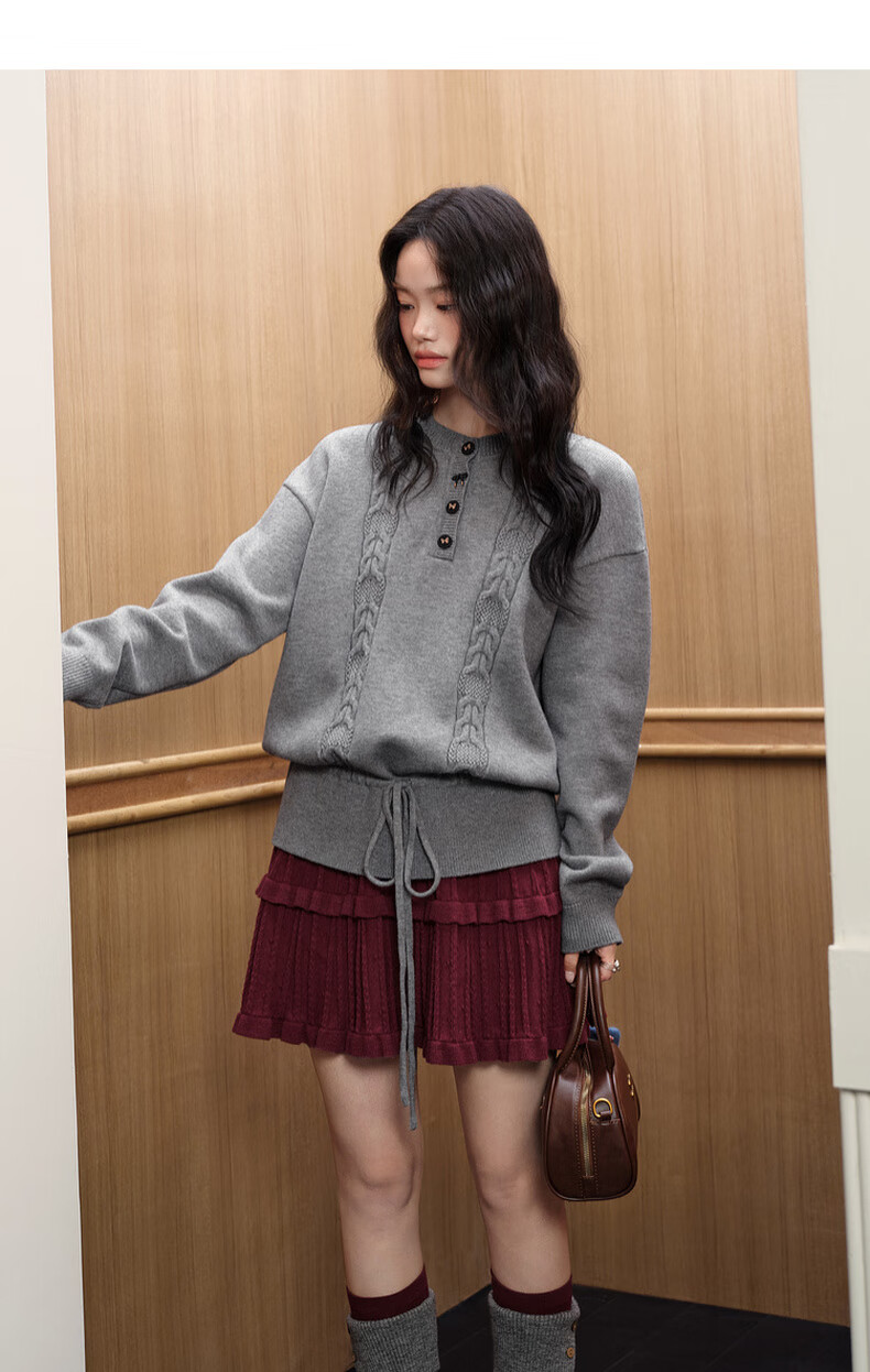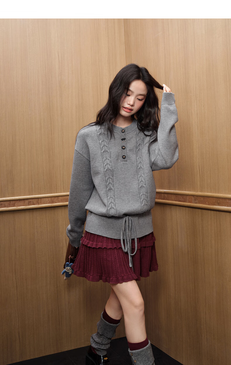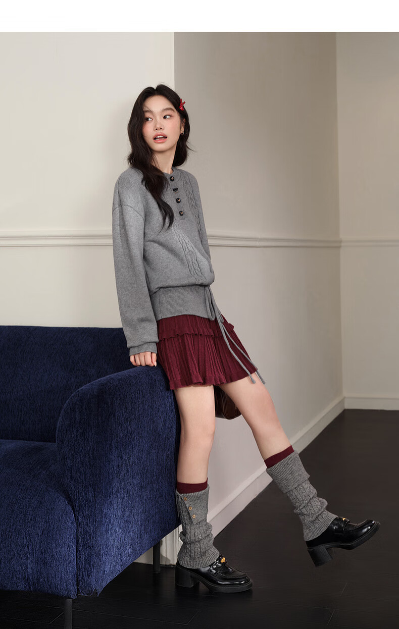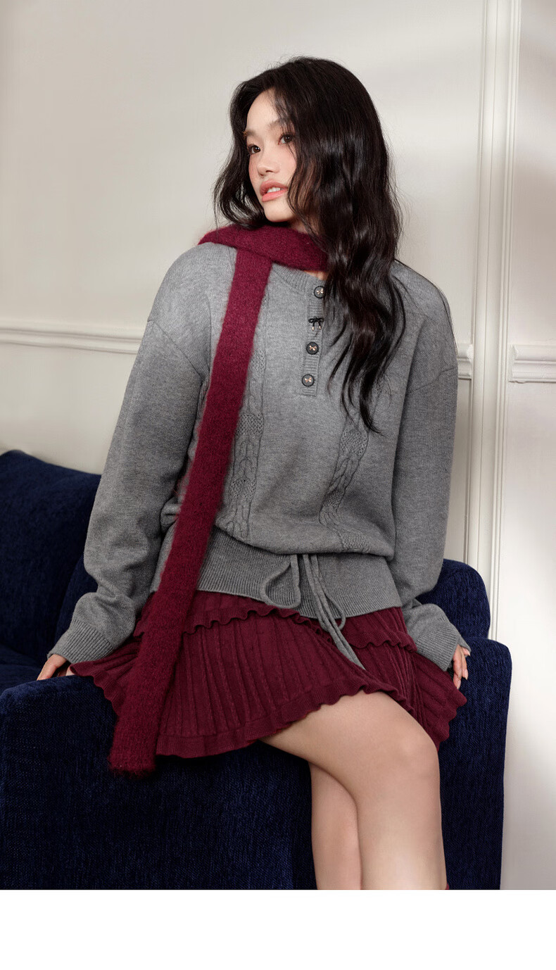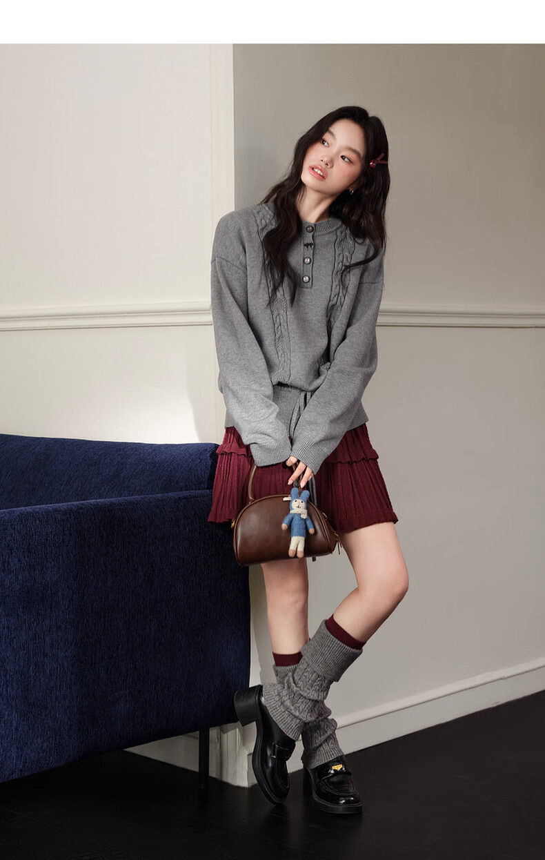 Wide color temperament sweater and skirt two-piece suit new 25 autumn and winter wear women's sweater short skirt gray red gray sweater 0042 S