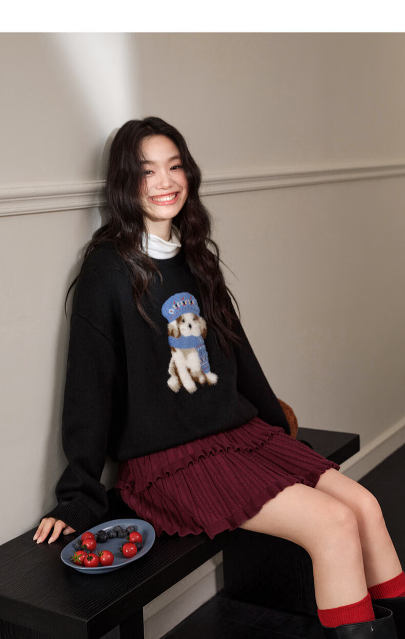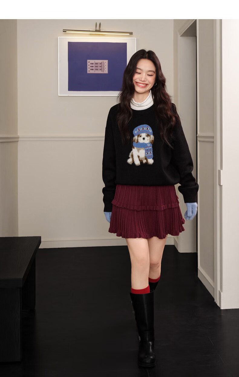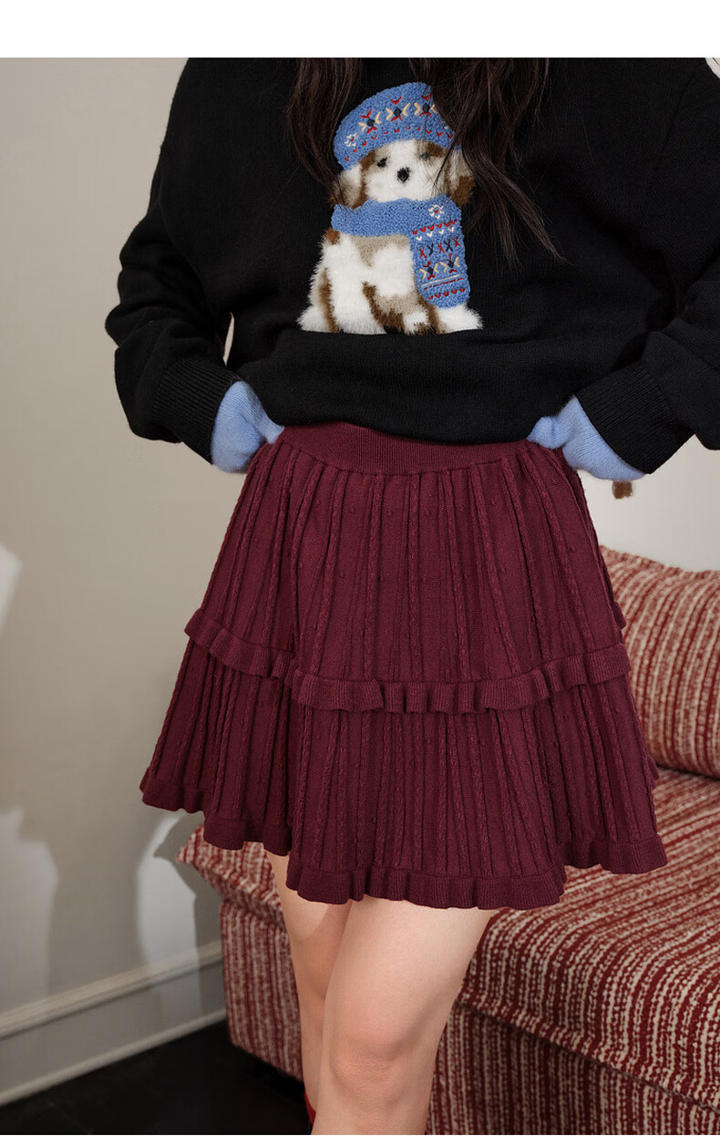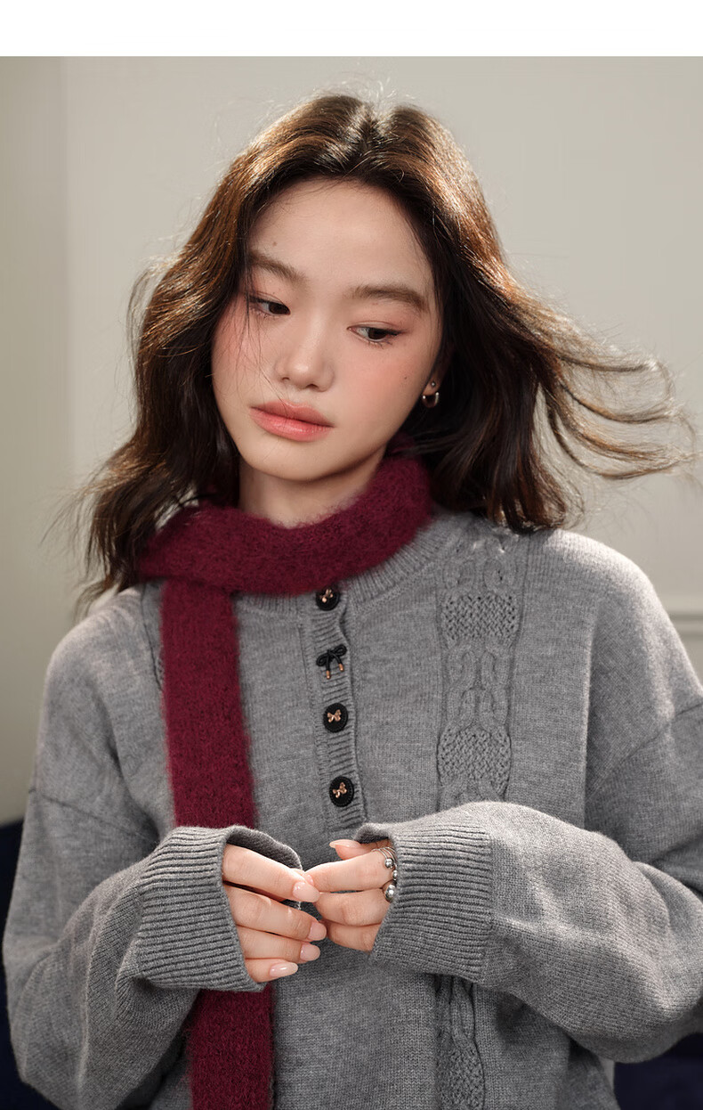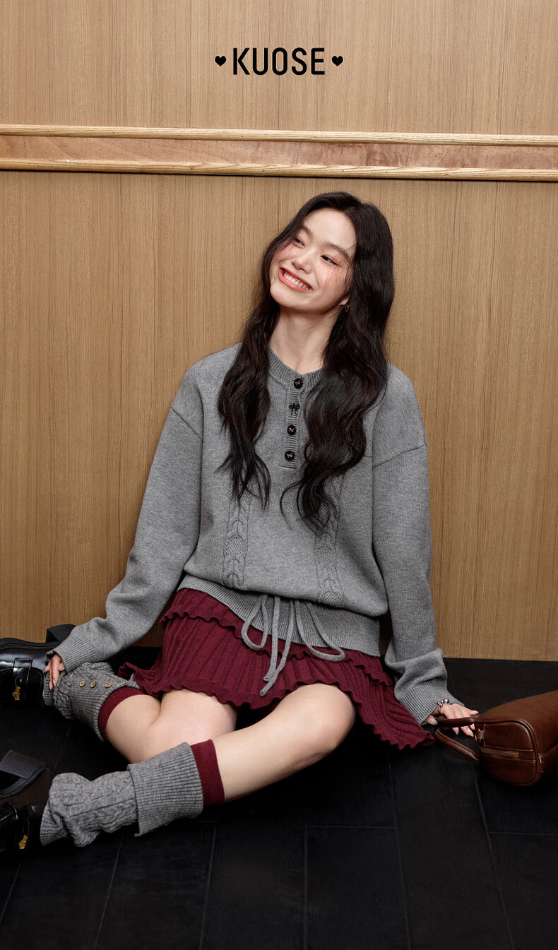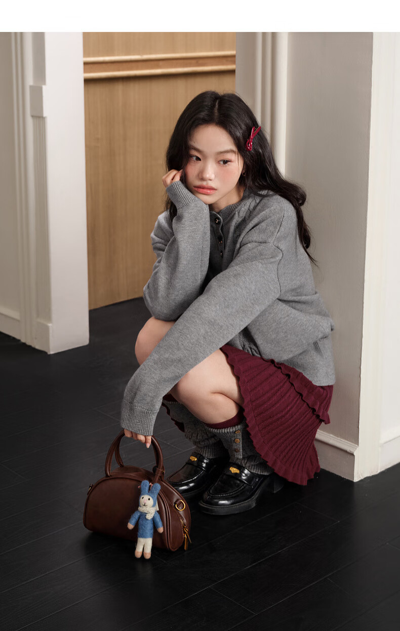 Wide color temperament sweater and skirt two-piece suit new 25 autumn and winter wear women's sweater short skirt gray red gray sweater 0042 S