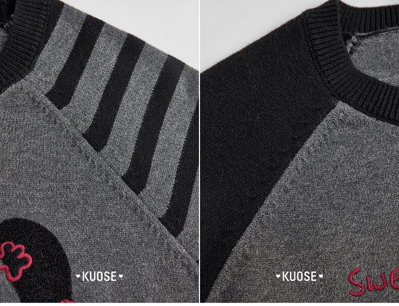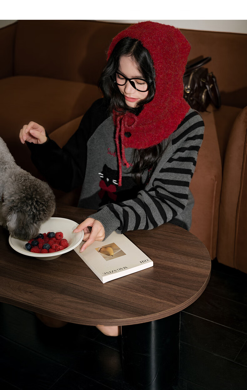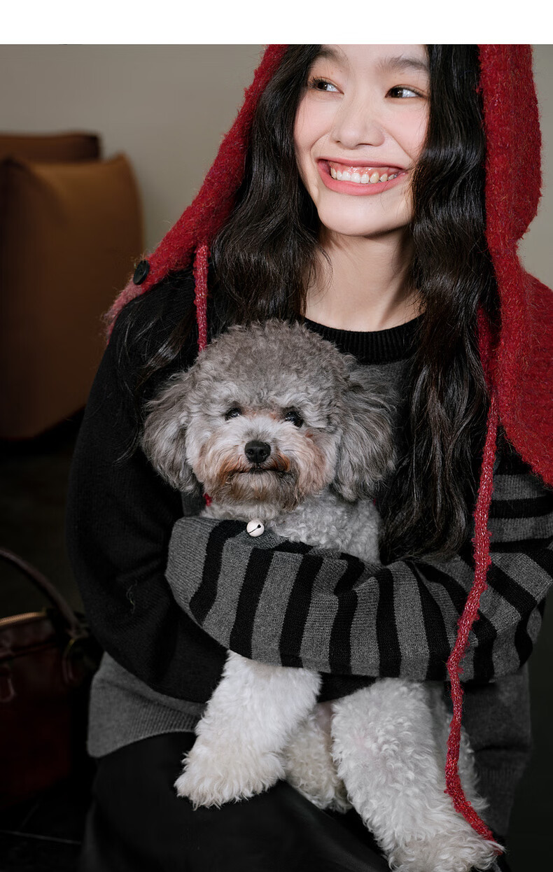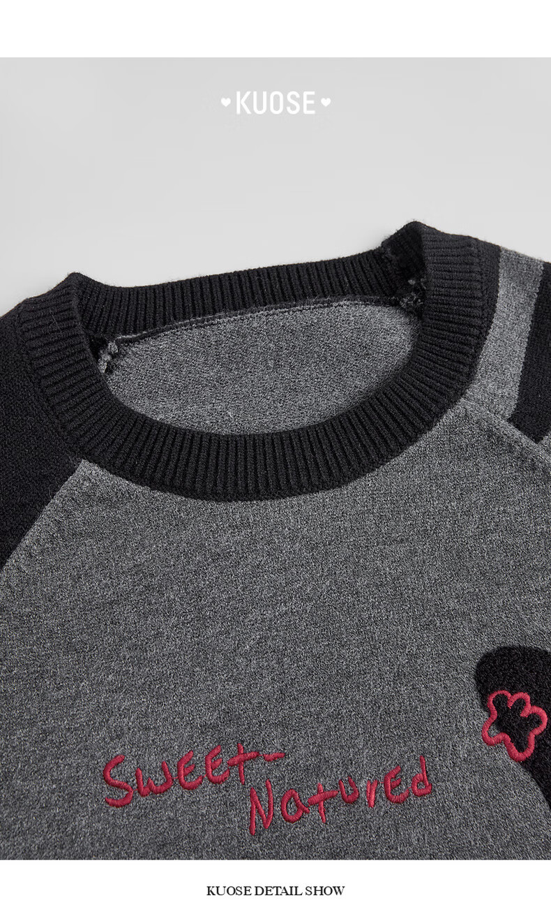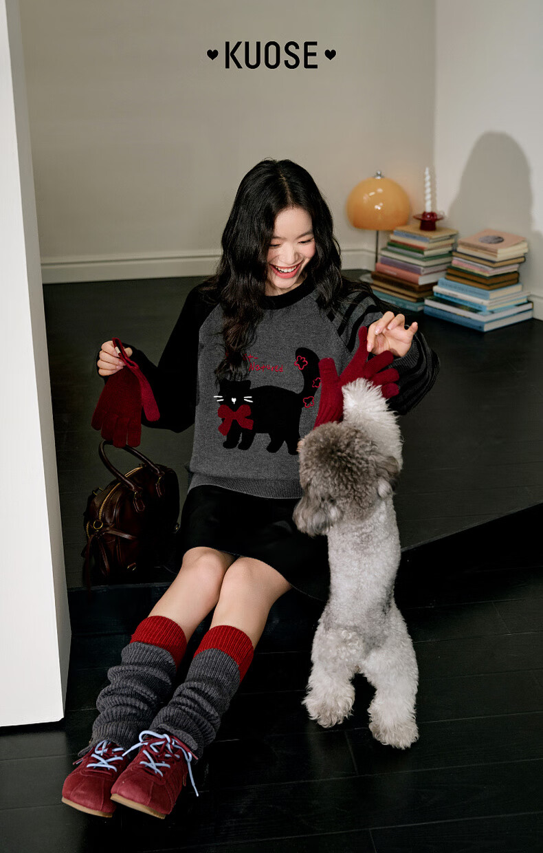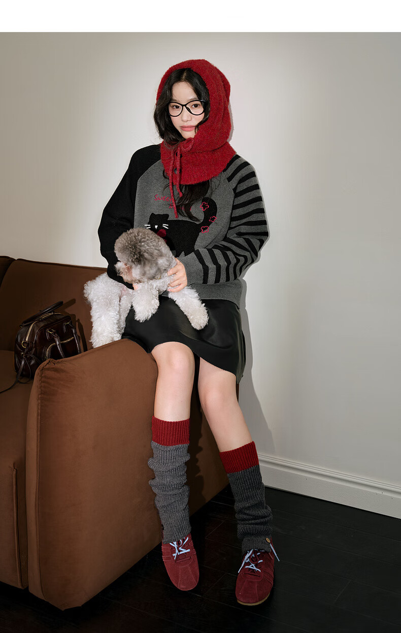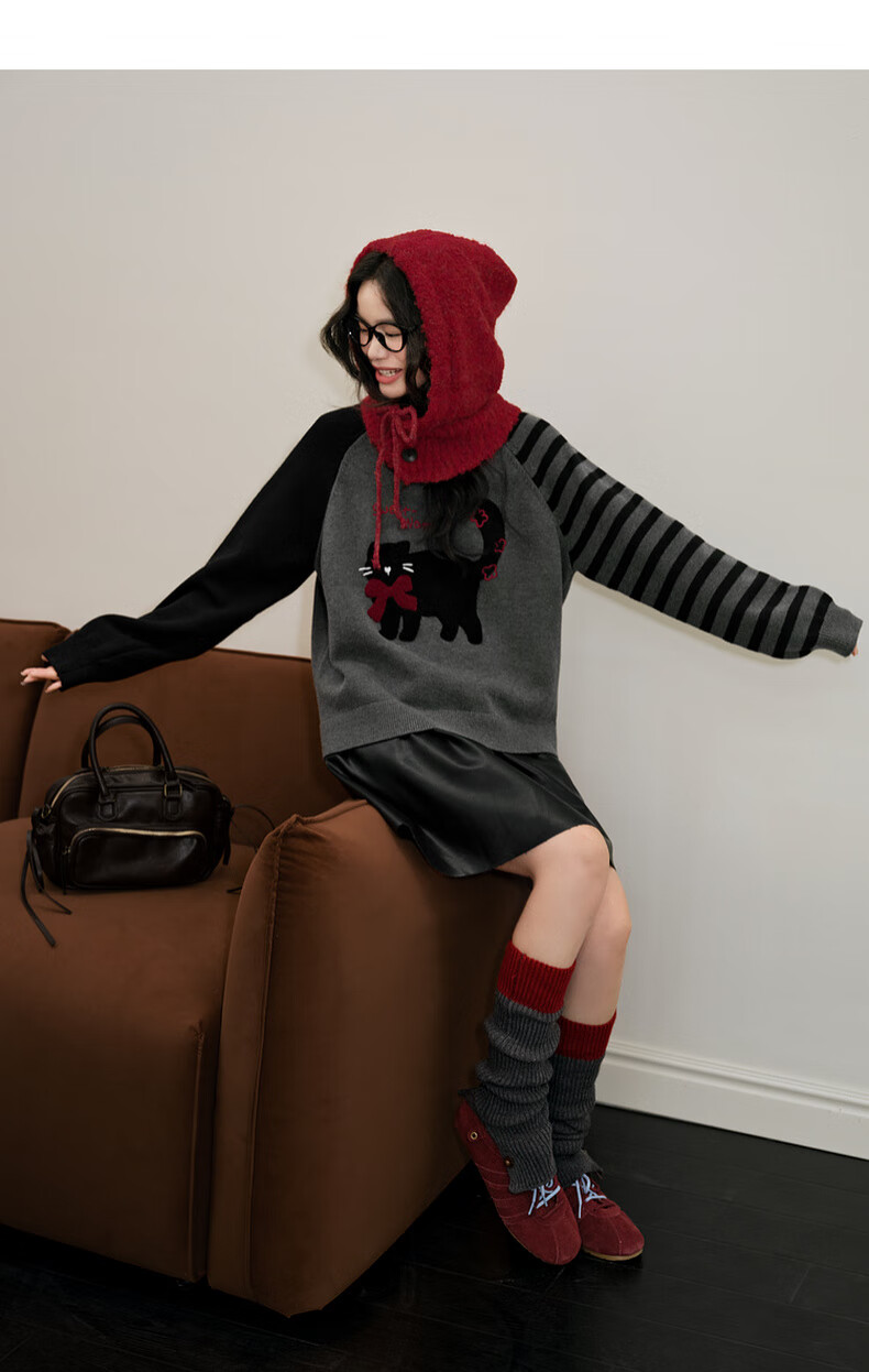 Wide gray design striped long-sleeved sweater women's 2025 autumn and winter new embroidered three-dimensional kitten top Gray Released on November 25 S