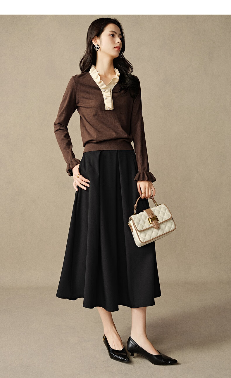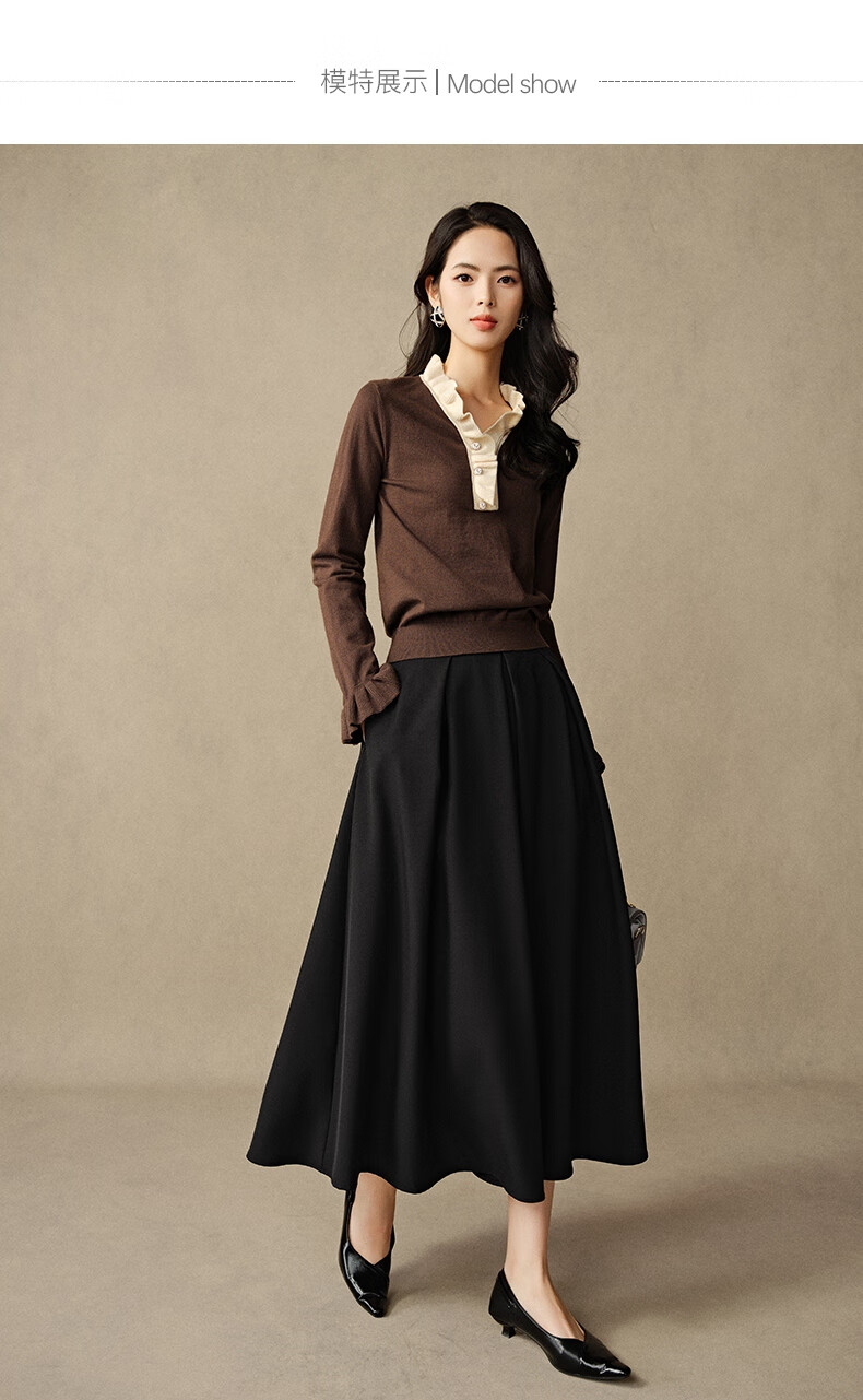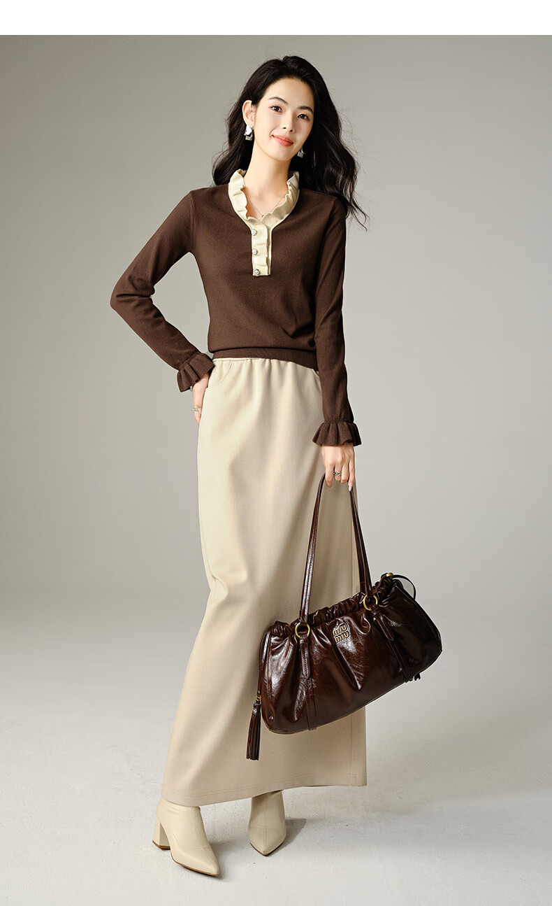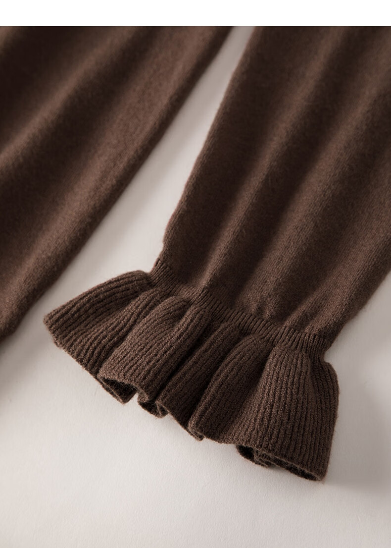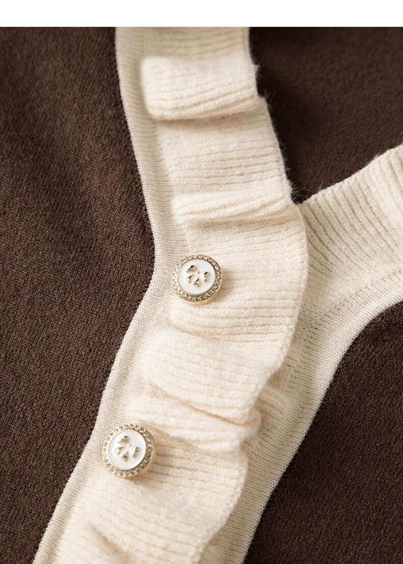 Late White New Product 2025 Autumn Fashion Simple Casual Sweater Temperament V-neck Lace Elegant Knitted Sweater Women Brown S