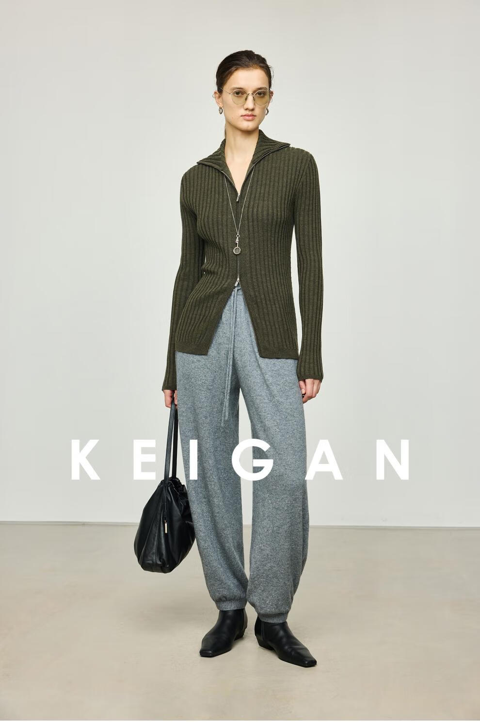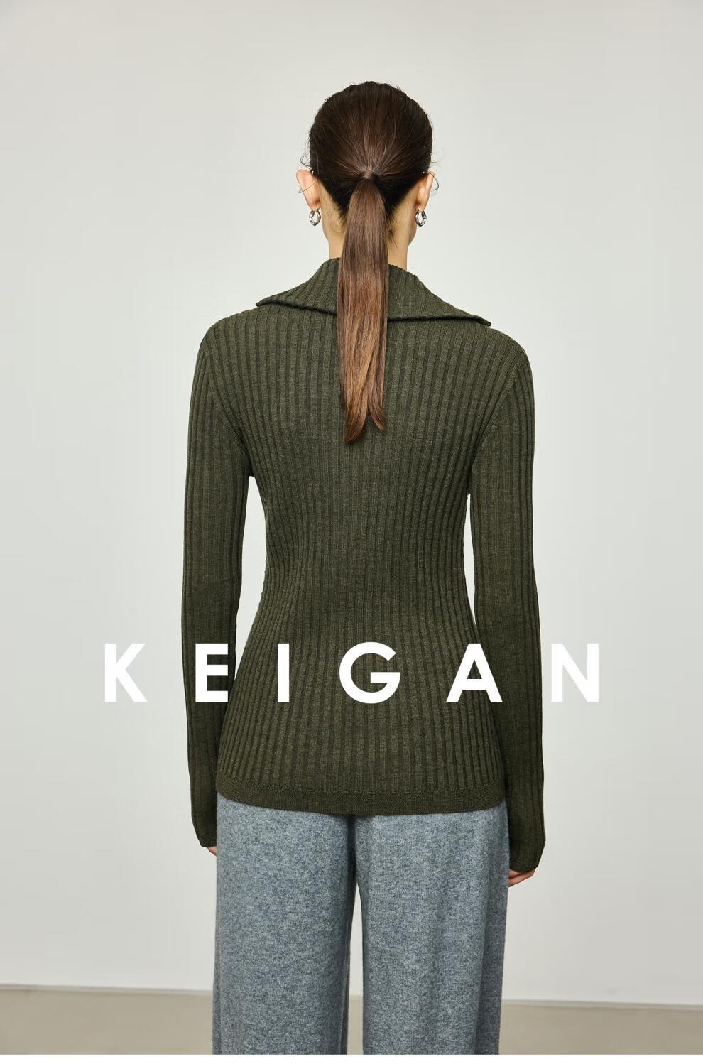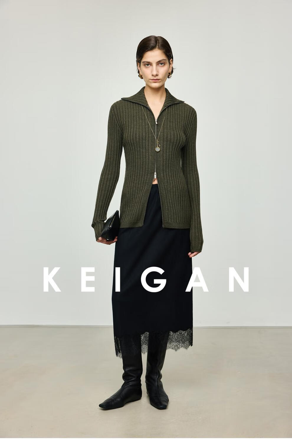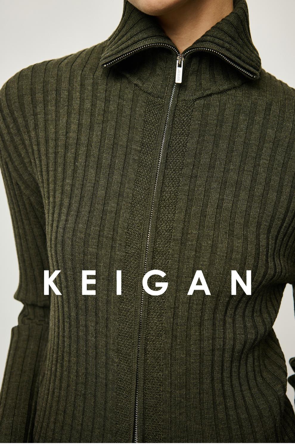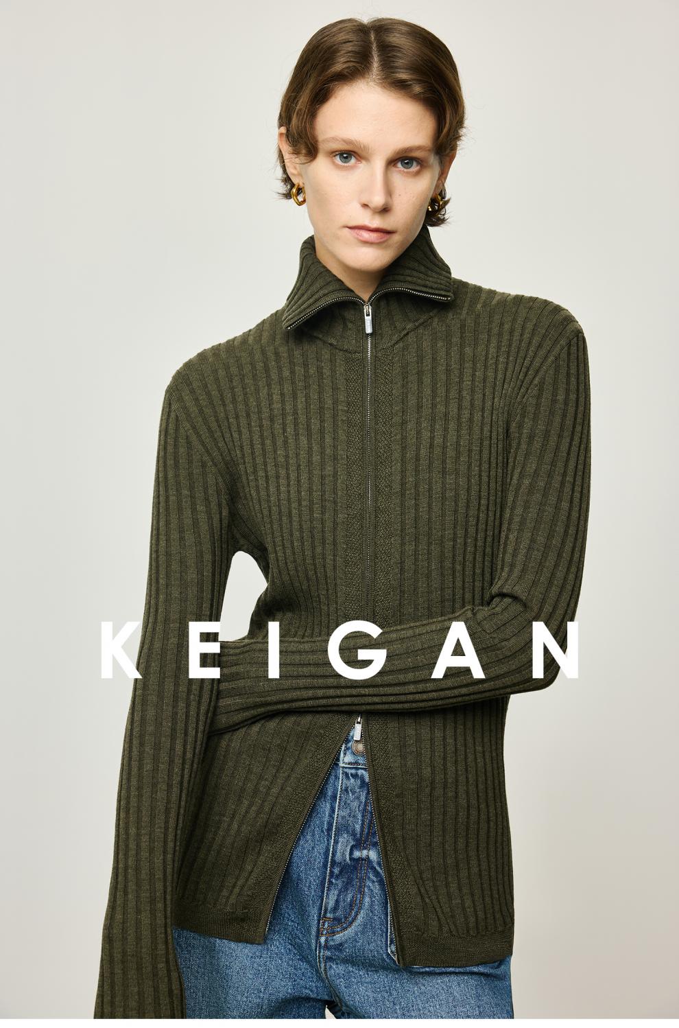 KEIGAN studio/black label imported & German BIELLA washable wool layered double zipper bottoming cardigan seaweed green S 34 (delivery within 25 days of booking)