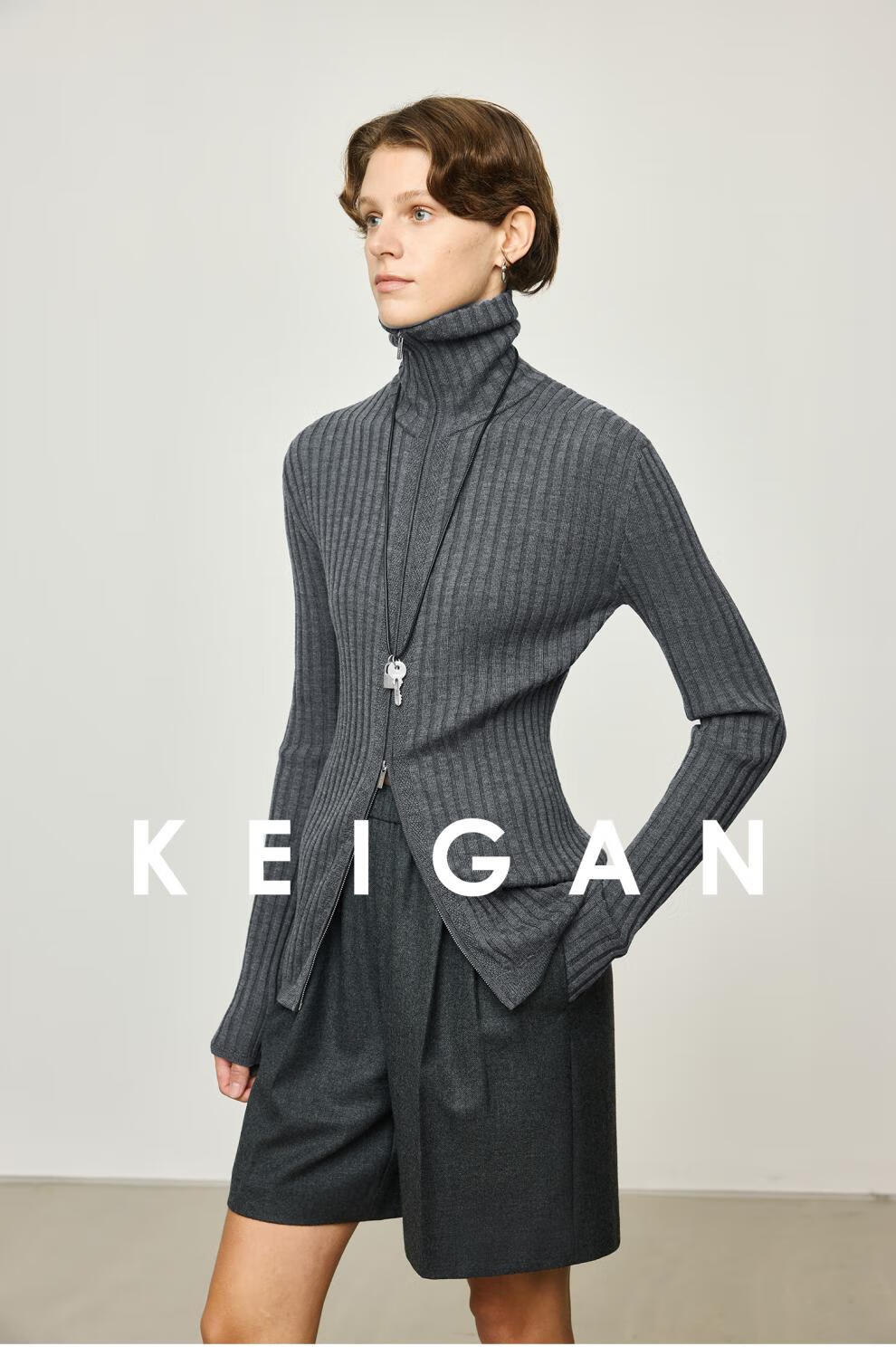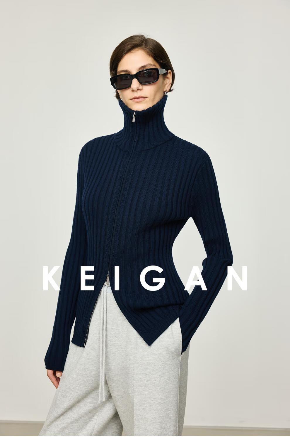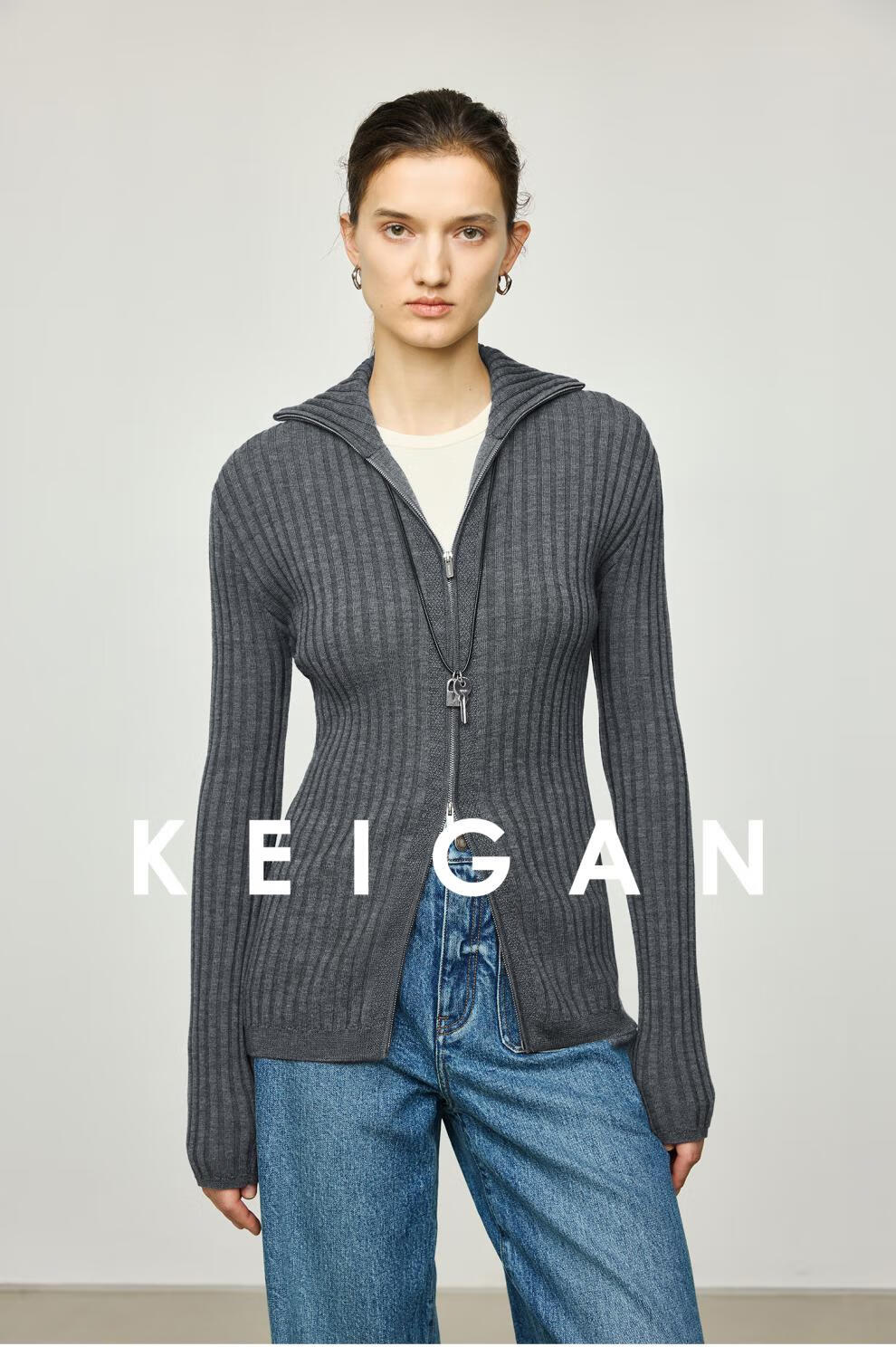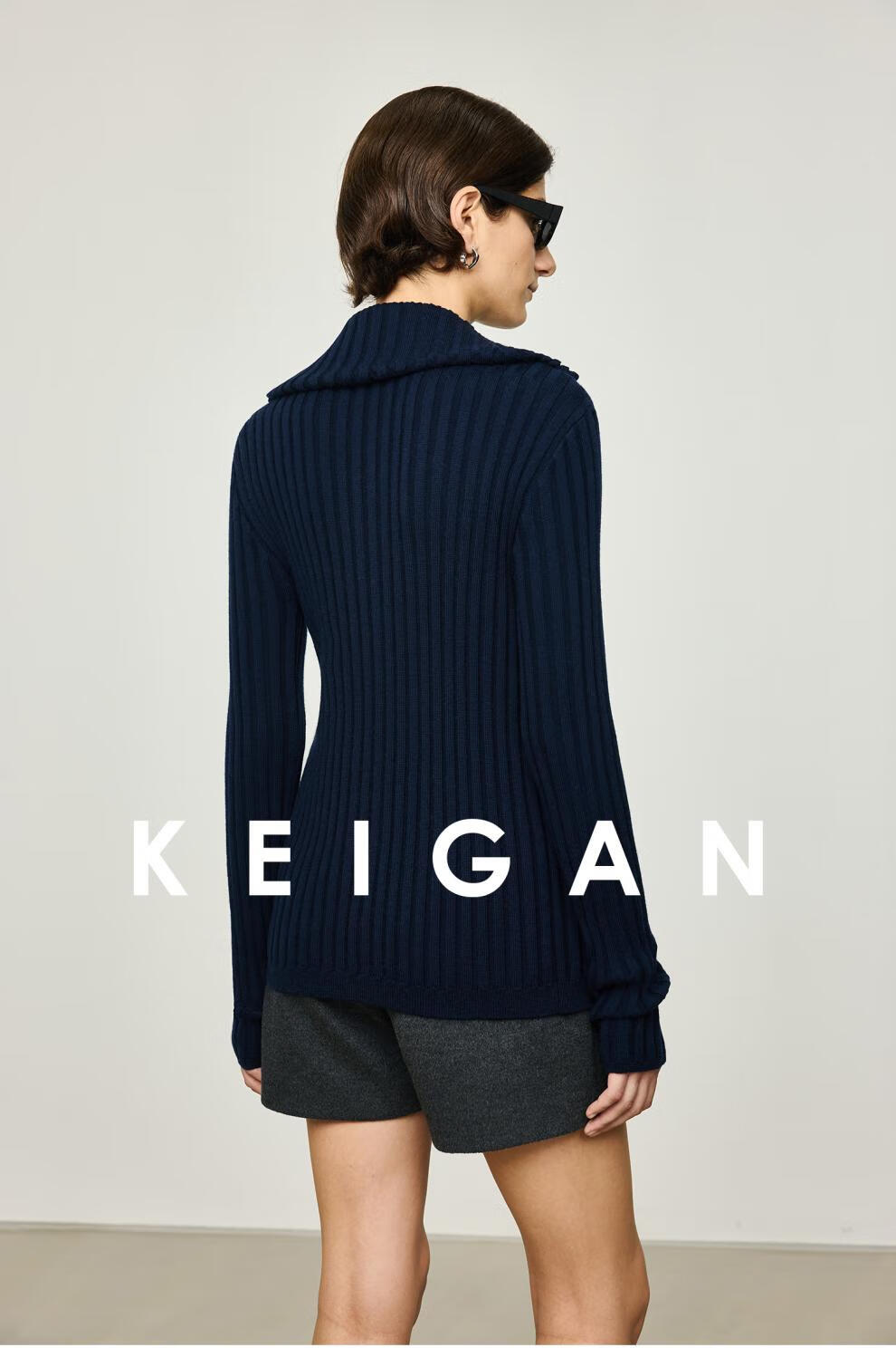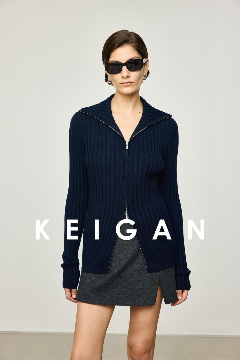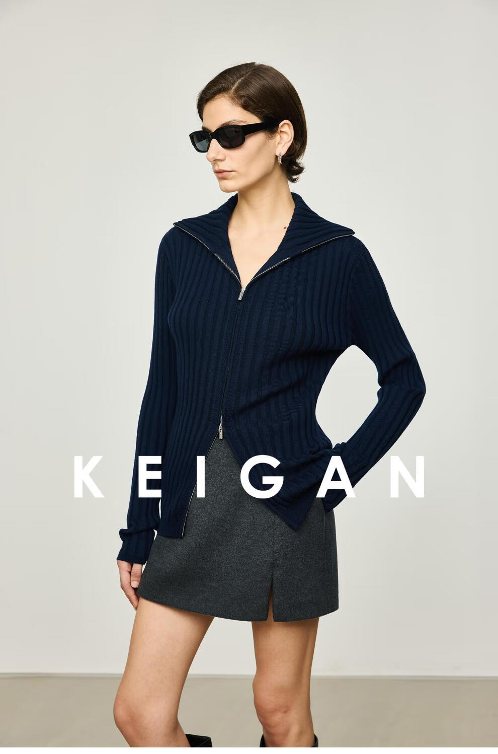KEIGAN studio/black label imported & German BIELLA washable wool layered double zipper bottoming cardigan seaweed green S 34 (delivery within 25 days of booking)