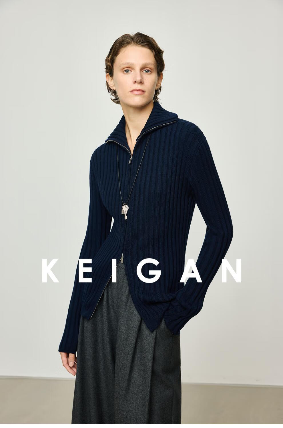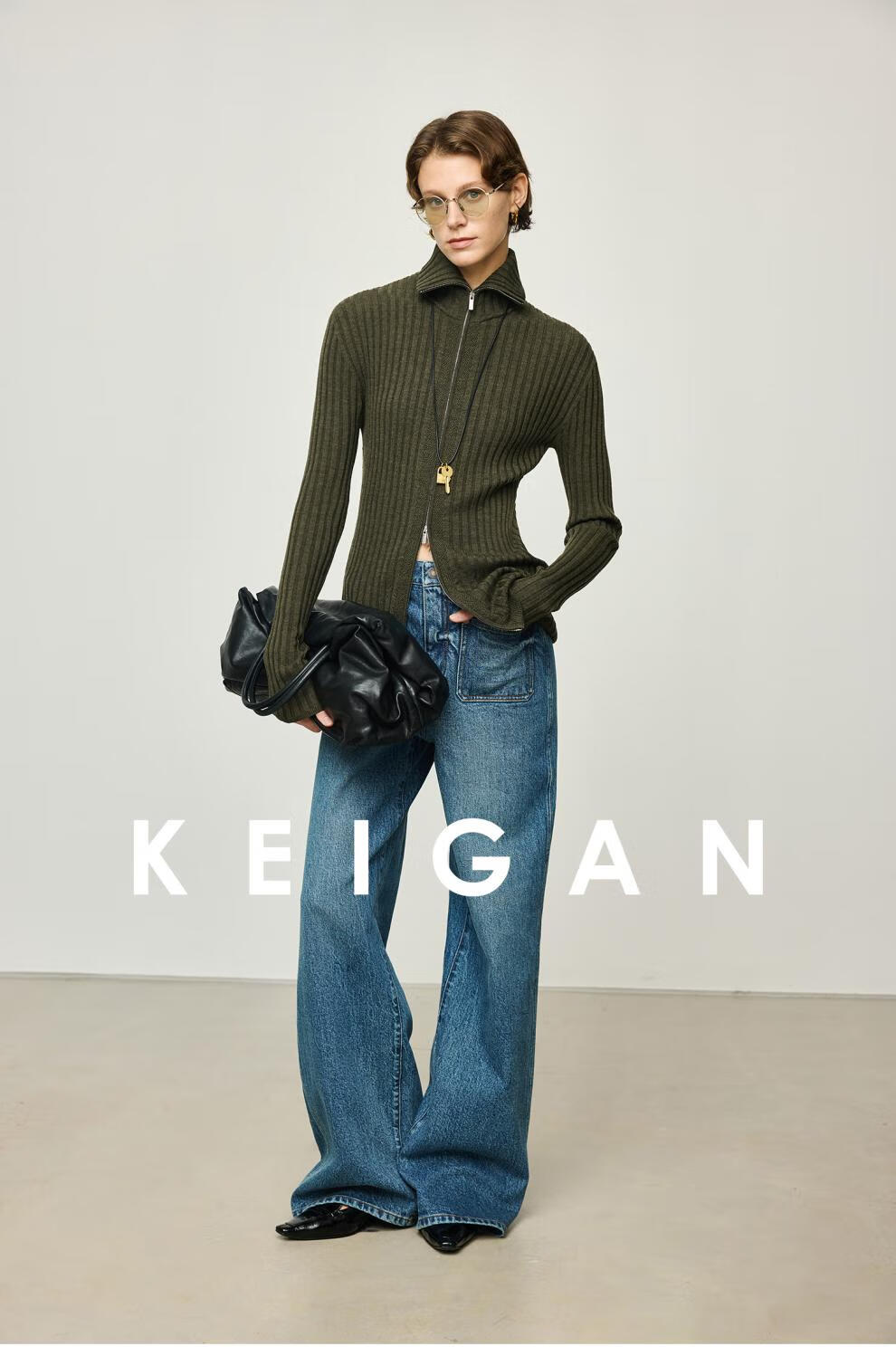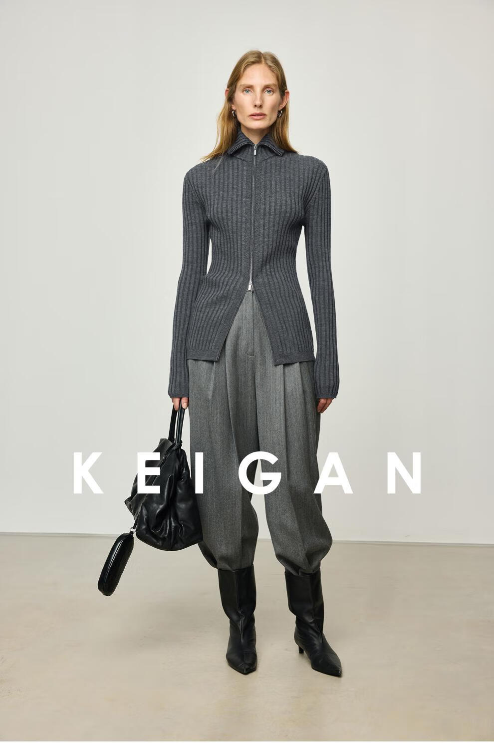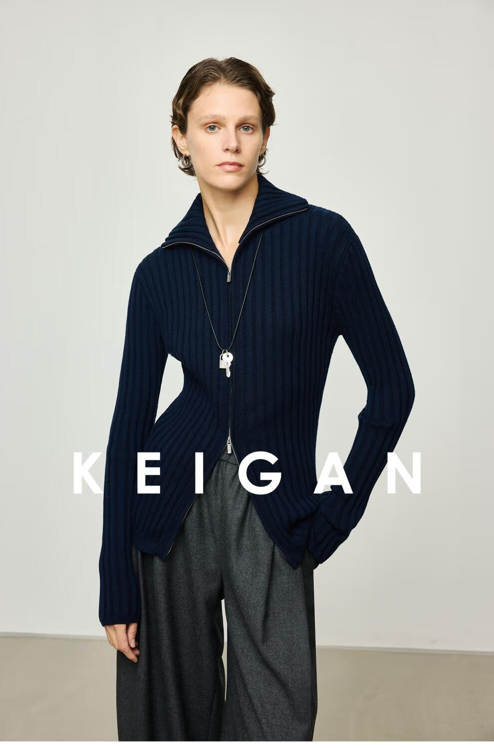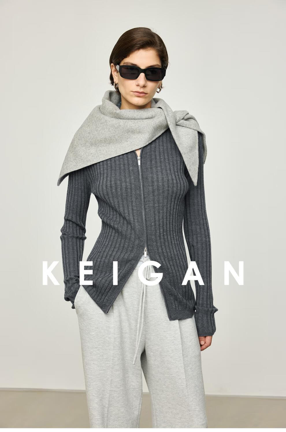KEIGAN studio/black label imported & German BIELLA washable wool layered double zipper bottoming cardigan seaweed green S 34 (delivery within 25 days of booking)