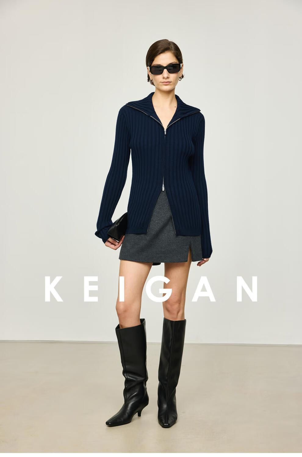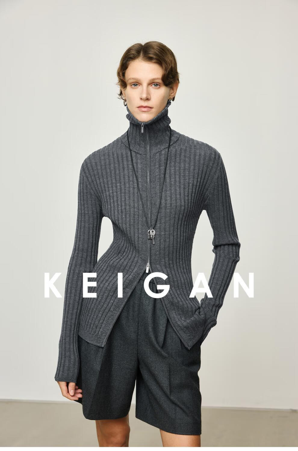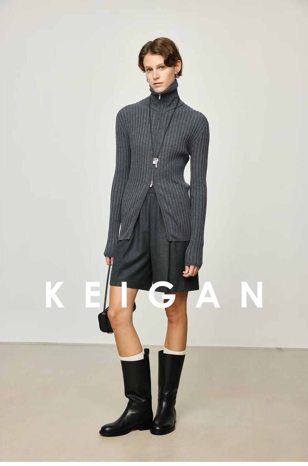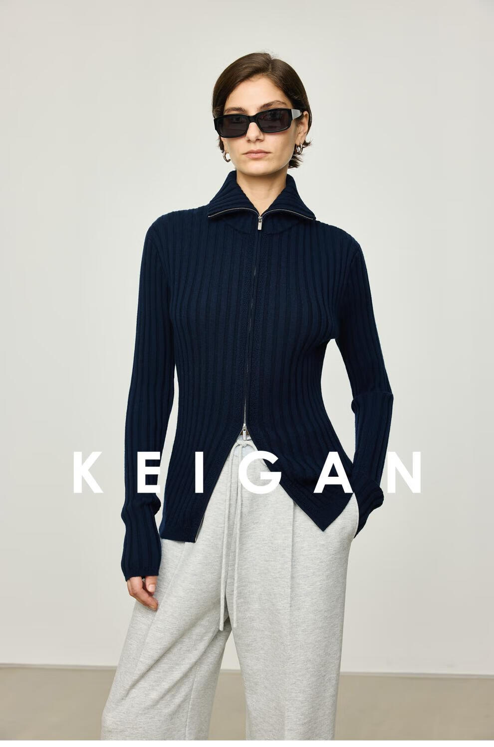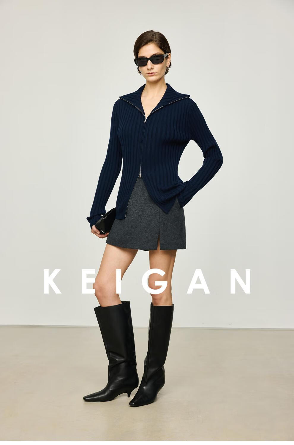 KEIGAN studio/black label imported & German BIELLA washable wool layered double zipper bottoming cardigan seaweed green S 34 (delivery within 25 days of booking)