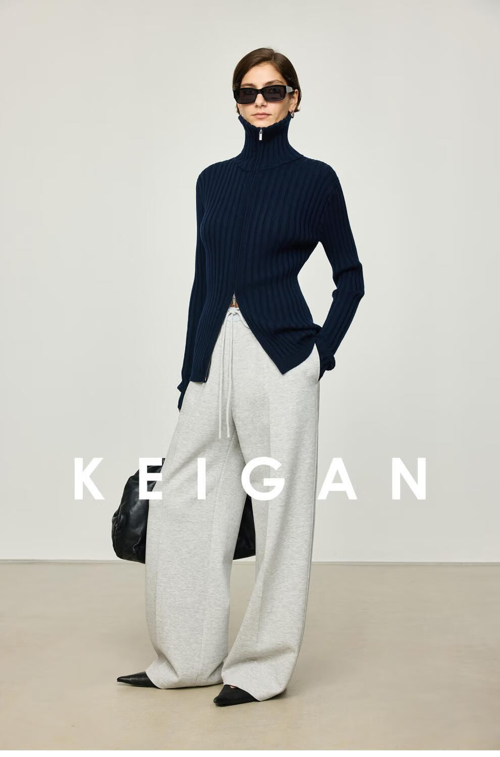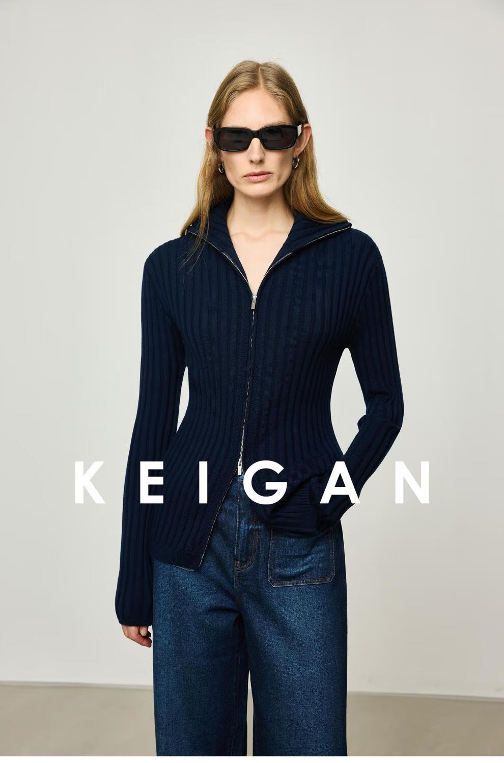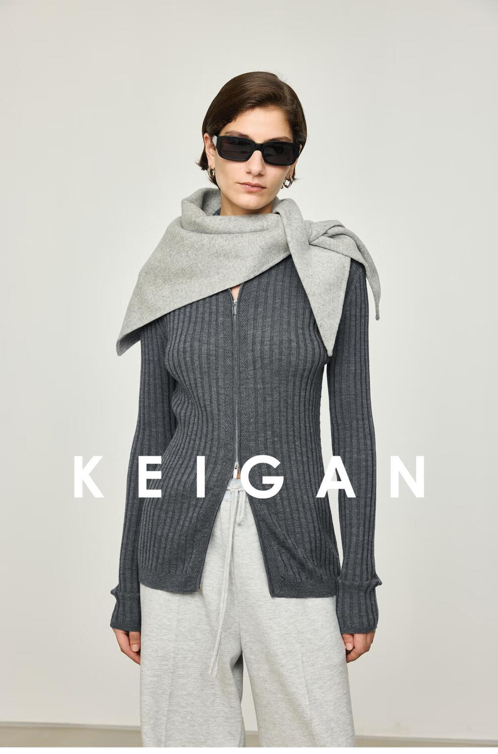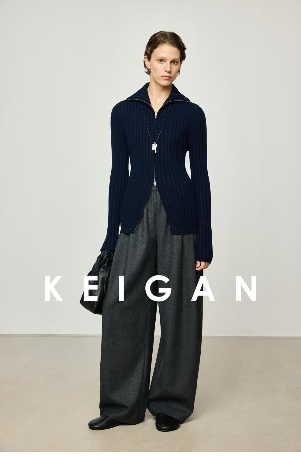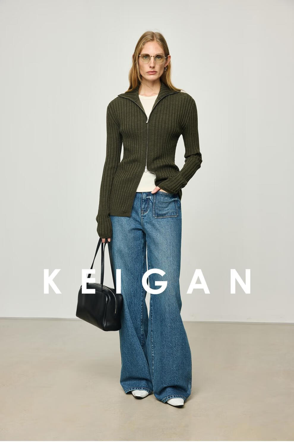 KEIGAN studio/black label imported & German BIELLA washable wool layered double zipper bottoming cardigan seaweed green S 34 (delivery within 25 days of booking)