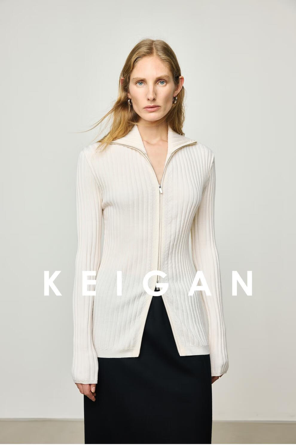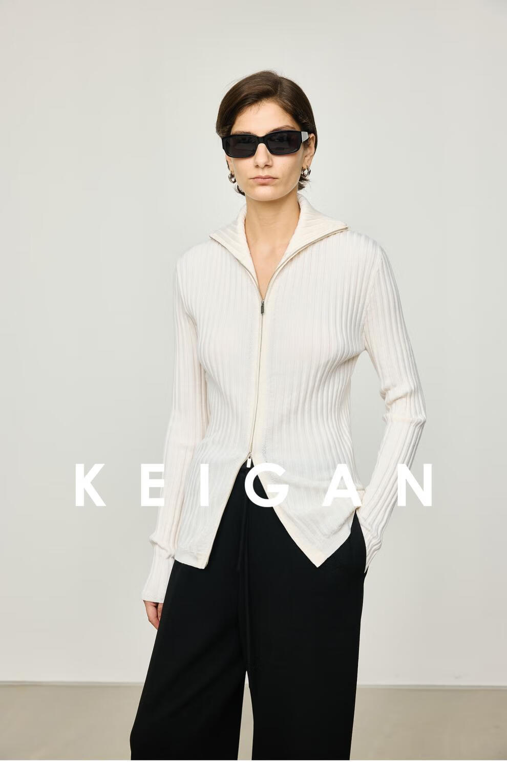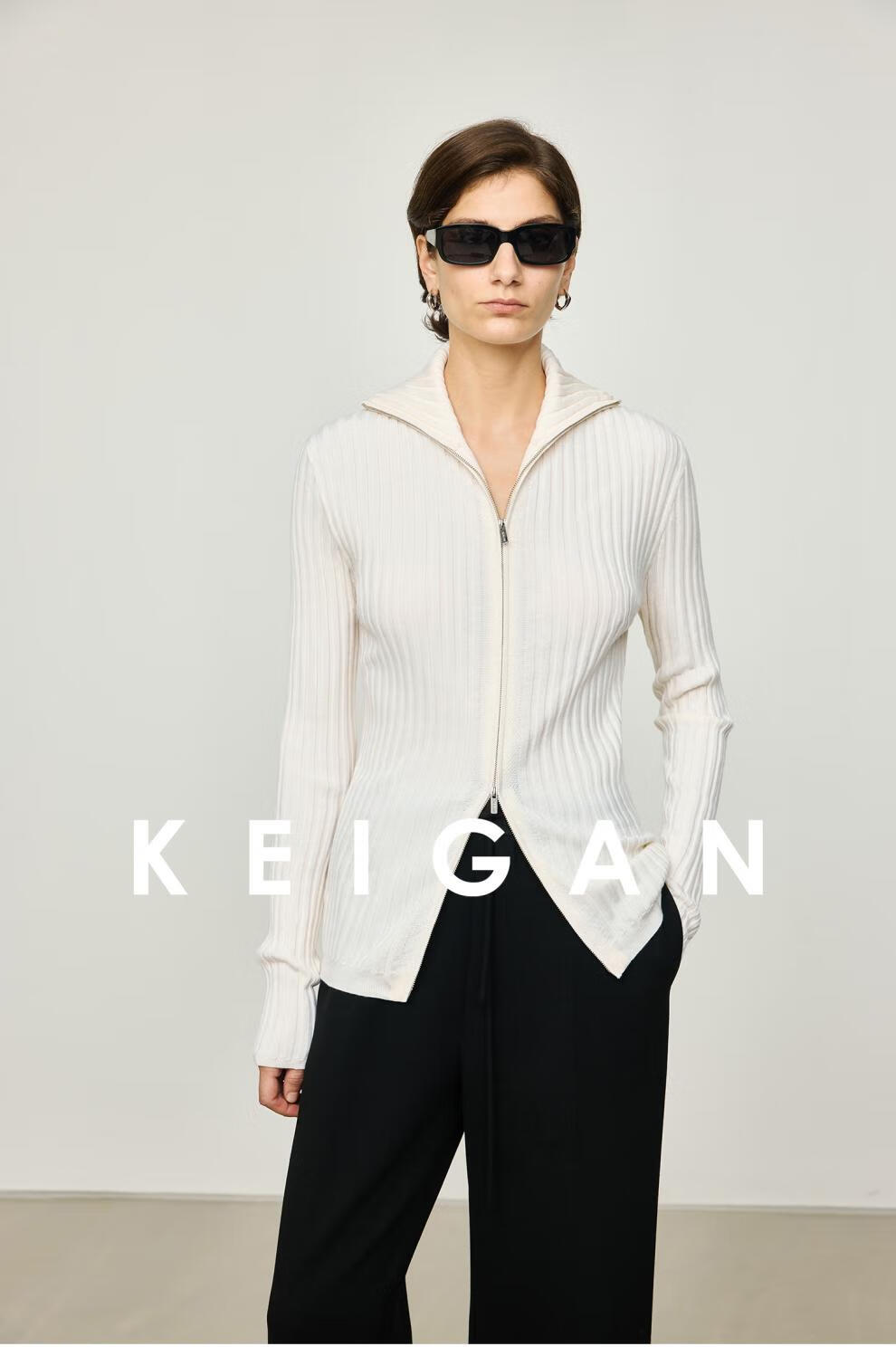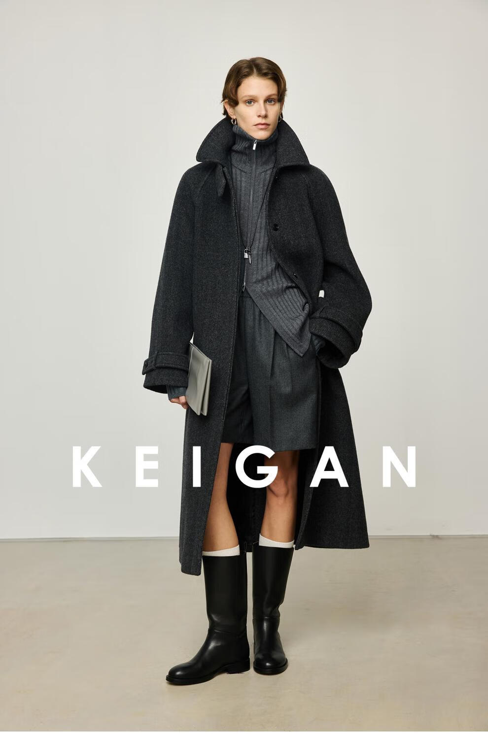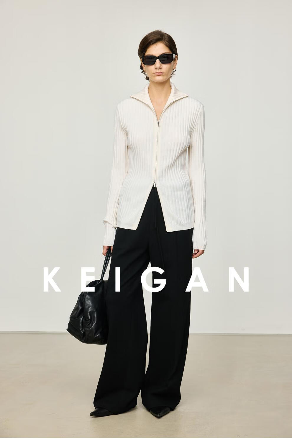 KEIGAN studio/black label imported & German BIELLA washable wool layered double zipper bottoming cardigan seaweed green S 34 (delivery within 25 days of booking)